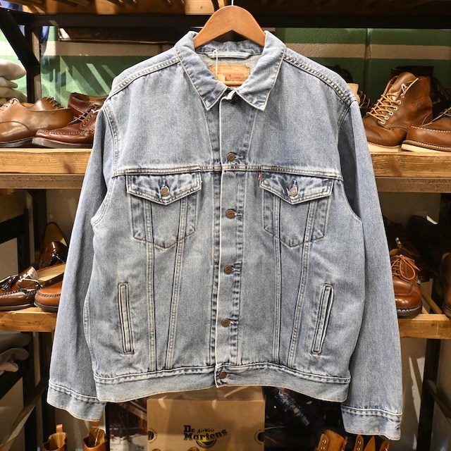 【商品名】 Levi’s 80-90’s USA製 70506-0216 Denim Tracker Jacket 【商品説明】 Levi’sを代表するトラッカージャケットの中でも、高い人気を誇る「70506」品番のデニムジャケット。 70505の系譜を受け継ぎつつ、実用性を高めた4thタイプのモデルで、80〜90年代頃のUSA製個体です。 淡くフェードしたブルーデニムの色味と、アタリ・縦落ちによる立体的な表情が魅力。 ヴィンテージらしい雰囲気を持ちながら、日常使いしやすいバランスの取れた一着です。 サイズは46Rのビッグサイズ。 身幅にゆとりがあり、オーバーサイズでの着用にも適したシルエット。 フーディーやスウェットの上からもストレスなく羽織ることができます。 胸元にはLevi’sの赤タブが付き、ブランドを象徴するディテールも備えています。 王道のLevi’sデニムジャケットでありながら、サイズ感で差がつく希少性のある個体です。 【サイズ】 表記:46R (実寸 着丈約58.5cm 肩幅約49cm 身幅約59cm 袖丈約62.5cm) 【素材】 コットン100% 【カラー】 ブルー / インディゴ 【生産国】 USA製 【コンディション】 USED特有の色落ち、アタリ、スレが見られますが、 着用に支障のある大きなダメージはありません。 ヴィンテージデニムとして良好なコンディションです。 [ご購入時の注意事項] こちらの商品は実店舗でも同時販売しておりますので、お時間差によりご注文頂いたお品をご用意できない場合がございます。あらかじめご了承くださいますようお願い申し上げます。 お使いのディスプレイの違いや撮影方法により、実物のお色味が若干写真と異なる場合がございます。 サイズについては実寸サイズを目安にご検討ください。 (実寸サイズには商品の個体差による若干の誤差がございます) [返品 交換について] USED商品となりますので、お客様の都合(サイズが合わなかった、思っていたのと違った)などの理由による返品や交換は原則受け付けておりません。 万が一ご購入の前に、ご不明な点や気になる事がございましたらお気軽に問い合わせフォームよりご連絡下さい。 [発送について] ヤマト運輸またはクリックポスト(商品サイズによる)にて、ご注文日から2日以内に発送させて頂きます。