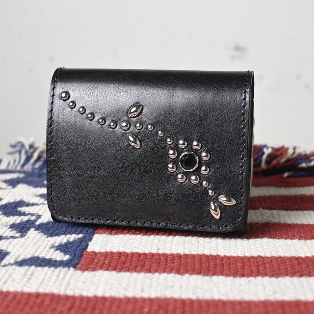 WLSD-001-ST7 栃木レザー スタッズ 財布 コンパクトウォレット 日本製 , ブラック