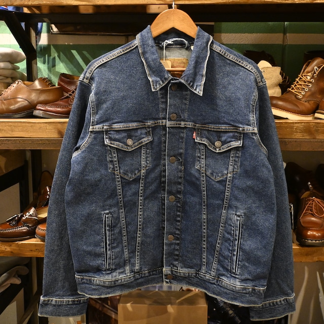 【商品名】 Levi’s 2021年 Bangladesh製 Denim Tracker Jacket 【商品説明】 Levi’sの定番モデルであるトラッカージャケット。 こちらは2021年製、バングラデシュ製の比較的新しい個体です。 ヴィンテージの3rdタイプをベースにしたデザインで、 現代的なフィットに調整されたシルエットが特徴。 身幅に適度なゆとりがあり、短すぎない着丈のため、 スウェットやパーカーの上からも羽織りやすいバランスです。 色落ちは控えめでクリーンな印象。 ヴィンテージデニムとは異なり、 現行Levi’sならではの都会的で洗練された雰囲気を持つ一着です。 胸ポケットにはLevi’sの赤タブが付き、 ブランドを象徴するディテールも備えています。 古着スタイルの中に取り入れやすい、 “現行×古着”のバランスを楽しめるデニムジャケットです。 【サイズ】 表記:L (実寸 着丈約63cm 肩幅約52cm 身幅約63cm 袖丈約64cm) ※着丈=襟下から裾まで ※肩幅=肩の縫い目から縫い目まで ※身幅=脇下から脇下まで ※袖丈=肩の縫い目から袖先まで 【素材】 コットン98% ポリウレタン2% ストレッチデニム 【カラー】 ブルー / インディゴ 【生産国】 バングラデシュ製(MADE IN BANGLADESH) 【コンディション】 USED品のため、若干の使用感がございますが、 目立つダメージはなく、全体的に良好なコンディションです。 [ご購入時の注意事項] こちらの商品は実店舗でも同時販売しておりますので、お時間差によりご注文頂いたお品をご用意できない場合がございます。あらかじめご了承くださいますようお願い申し上げます。 お使いのディスプレイの違いや撮影方法により、実物のお色味が若干写真と異なる場合がございます。 サイズについては実寸サイズを目安にご検討ください。 (実寸サイズには商品の個体差による若干の誤差がございます) [返品 交換について] USED商品となりますので、お客様の都合(サイズが合わなかった、思っていたのと違った)などの理由による返品や交換は原則受け付けておりません。 万が一ご購入の前に、ご不明な点や気になる事がございましたらお気軽に問い合わせフォームよりご連絡下さい。 [発送について] ヤマト運輸またはクリックポスト(商品サイズによる)にて、ご注文日から2日以内に発送させて頂きます。