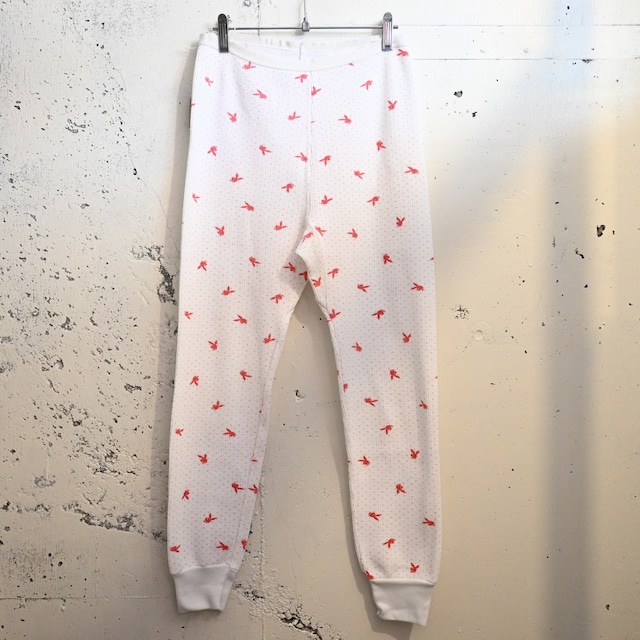 [ L ] PLAY BOY 80‐90s USA製 Logo Print pattern Thermal Pants , White