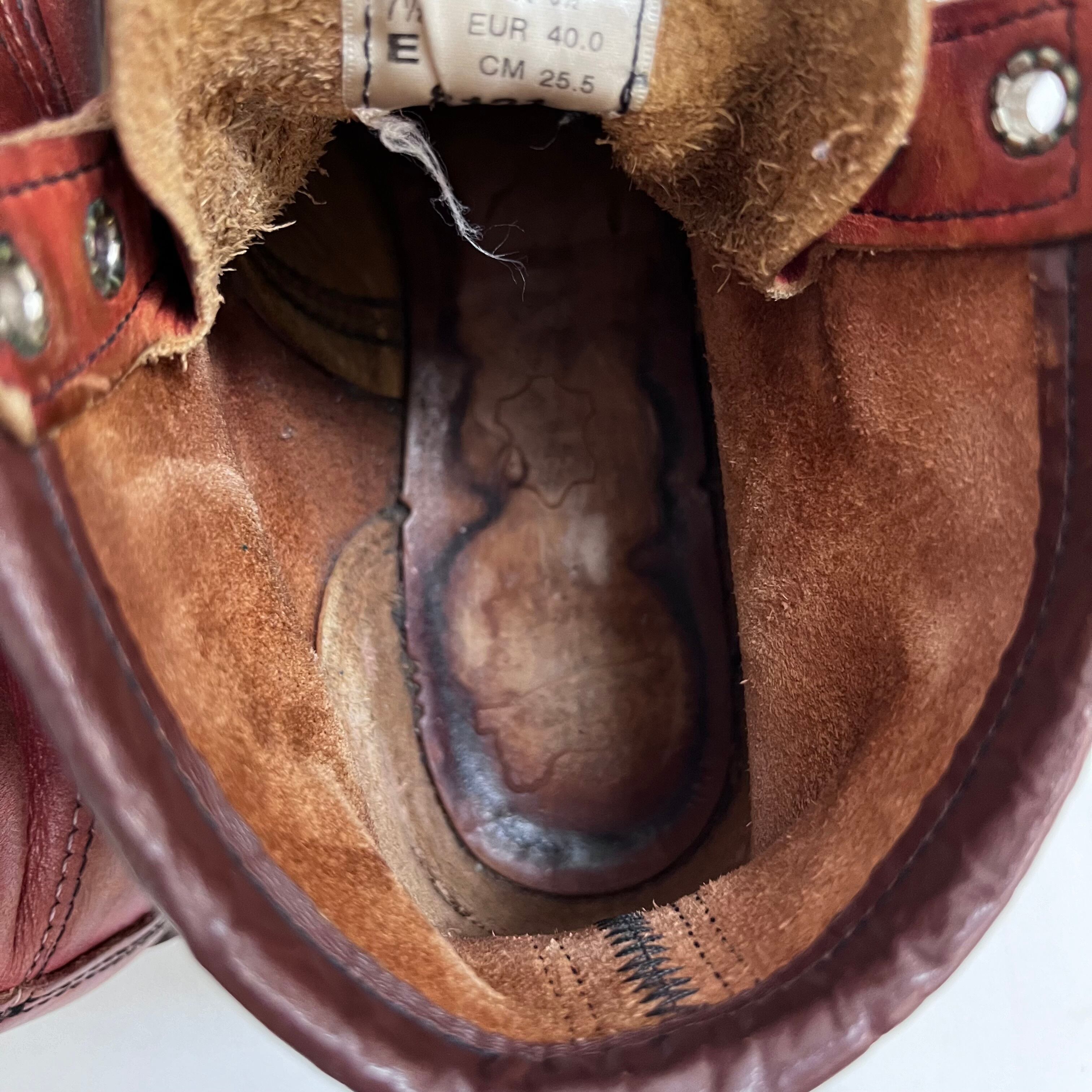 【 コンディション 】D : 全体に汚れ傷等、アッパーにキズや色抜け、金具の錆、踵周りの変色