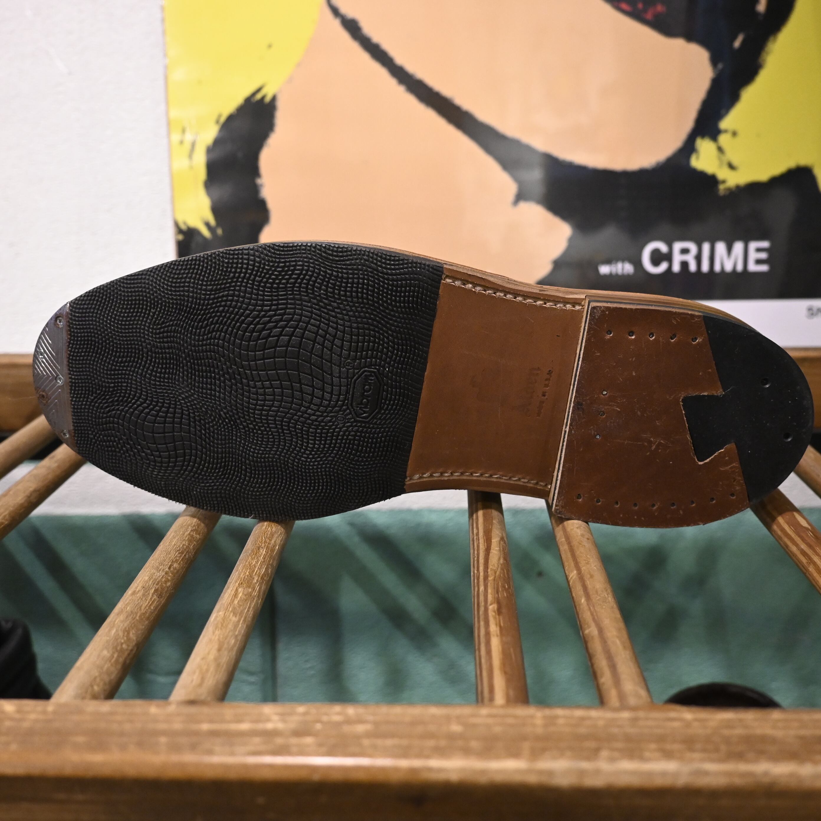 内側に「8 1/2 B/D」のサイズ表記あり、アウトソールには耐久性・滑りにくさに優れたラバー素材を部分的に採用。ドレススタイルからカジュアルなジャケパンスタイルまで、幅広いコーディネートに対応できる万能な1足です。