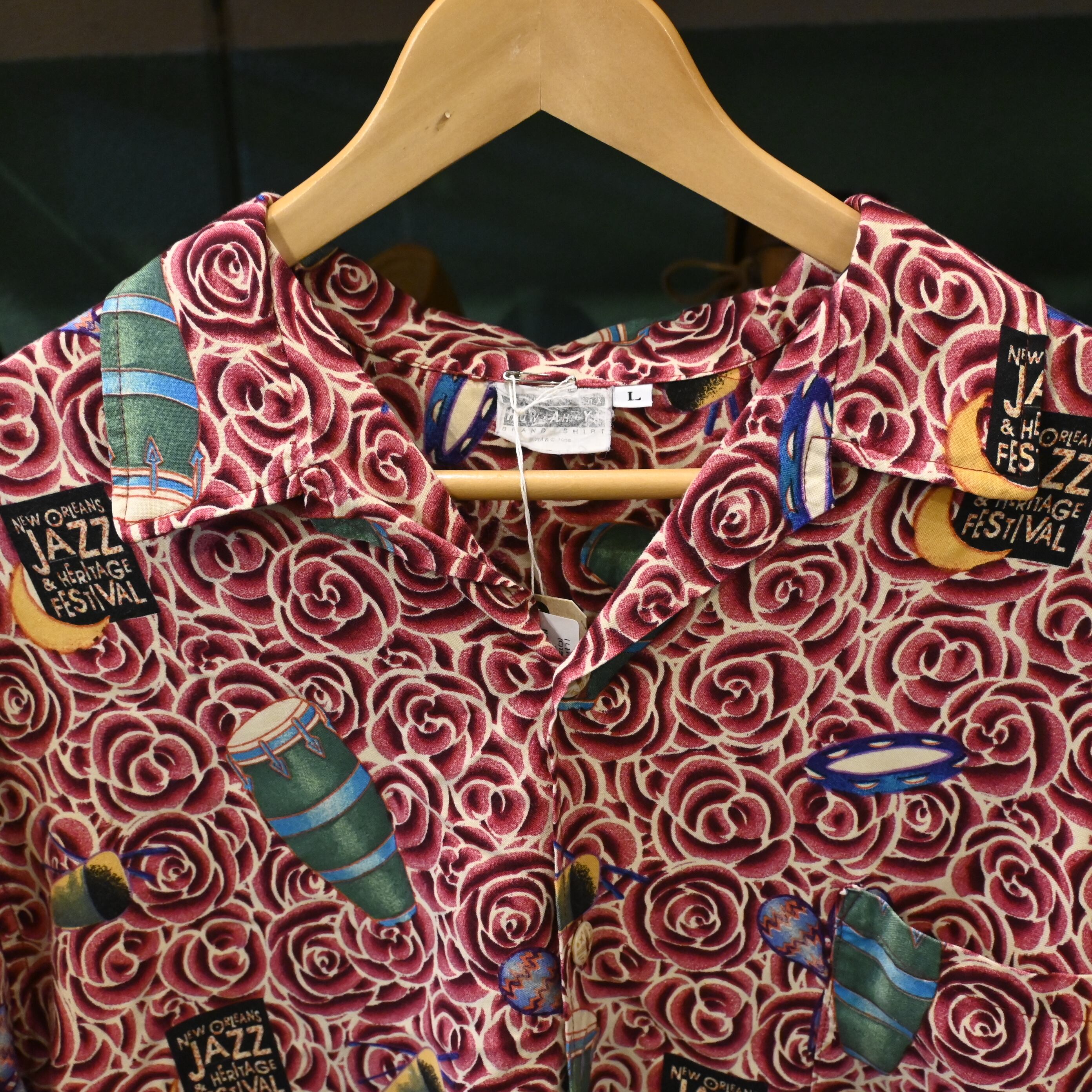 [ L ] HOW AH YA USA製 (C)1996 "JAZZ Festival Rose" Aloha Shirt