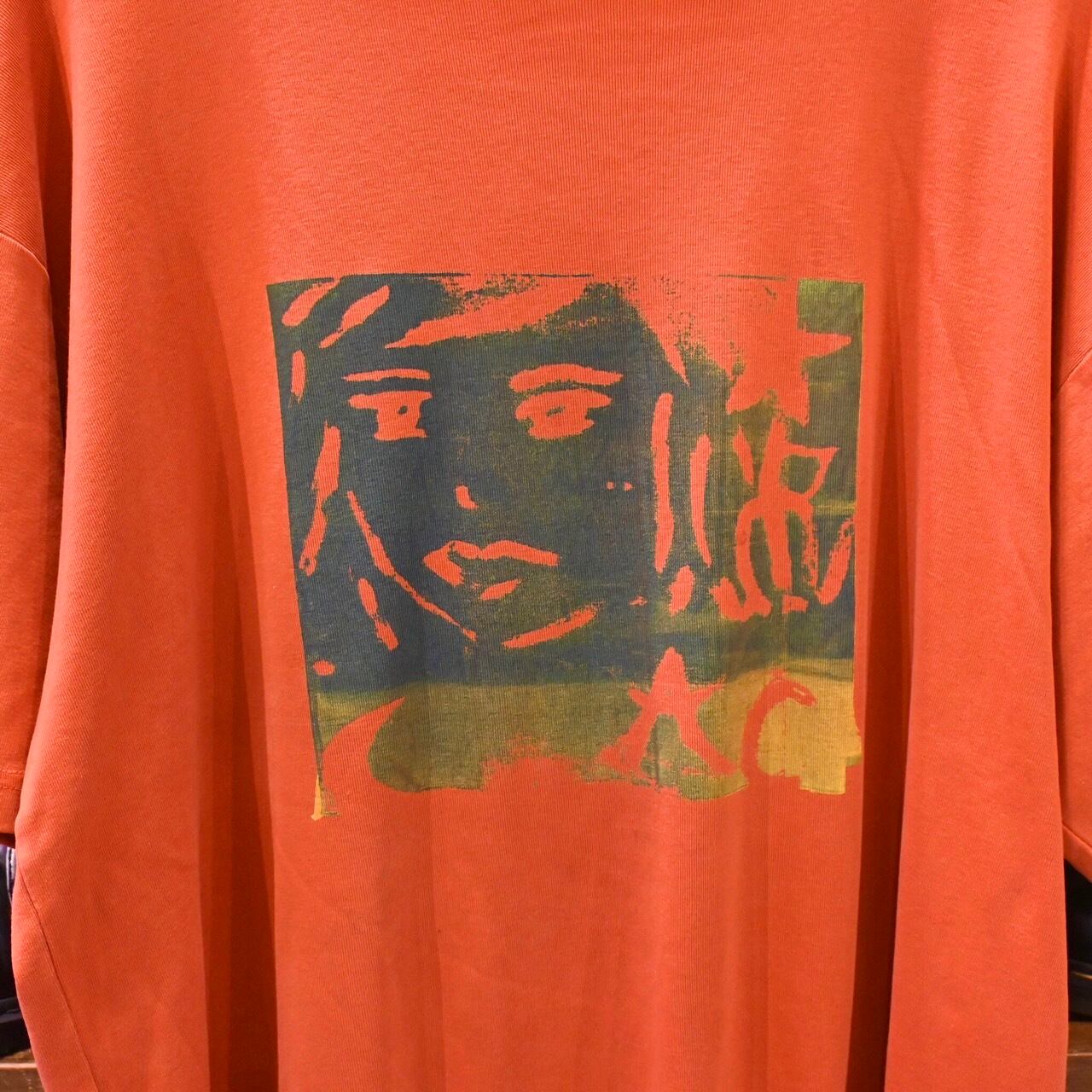 【アートプリントTシャツ/レンガ色×手描き風グラフィック/ビッグシルエット】