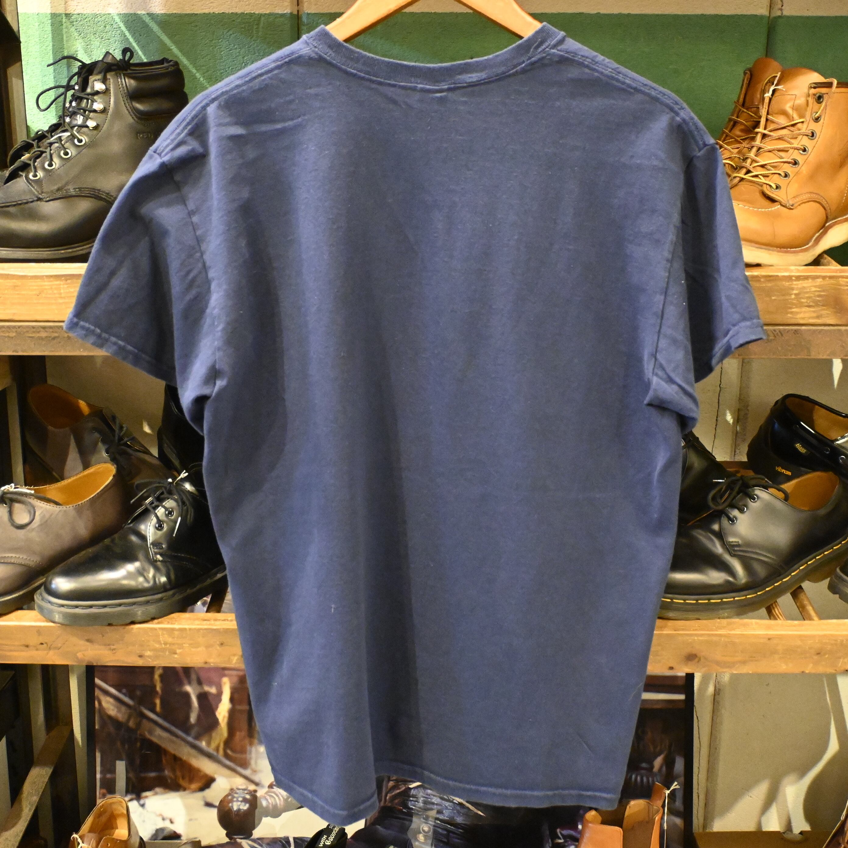 ボディは信頼のGILDAN製、厚手のヘビーコットンで古着らしい着用感も◎。シンプルなネイビーボディにイエローのグラフィックが映え、1枚でもレイヤードでも活躍してくれます。グランジ、パンク、90sカルチャー好きにおすすめのアイテムです。