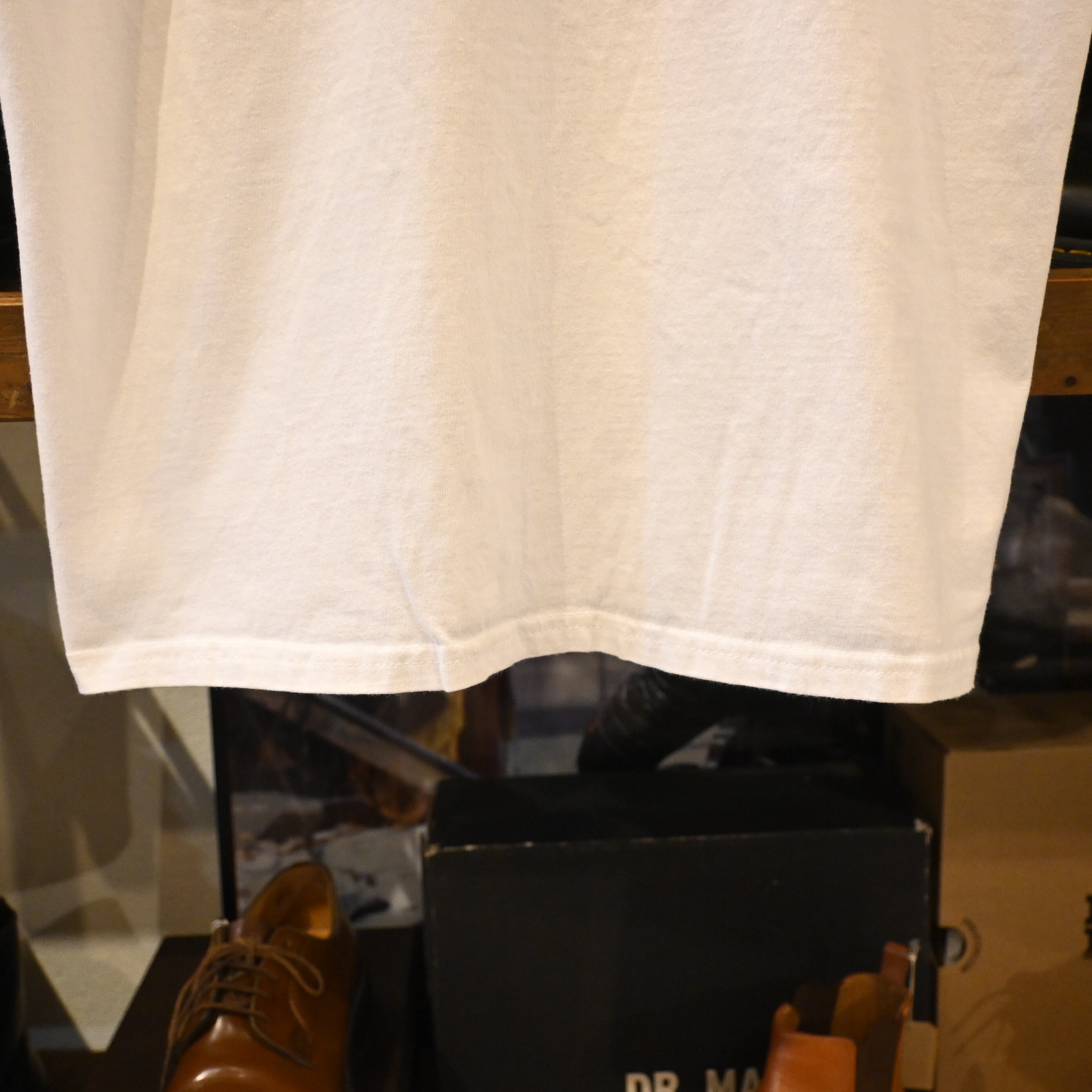ベーシックなホワイトボディに、ブラック×ブラウンのプリントカラーがクラシックな印象。アメカジ、バイカー、ヴィンテージスタイルにぴったりの一着です。