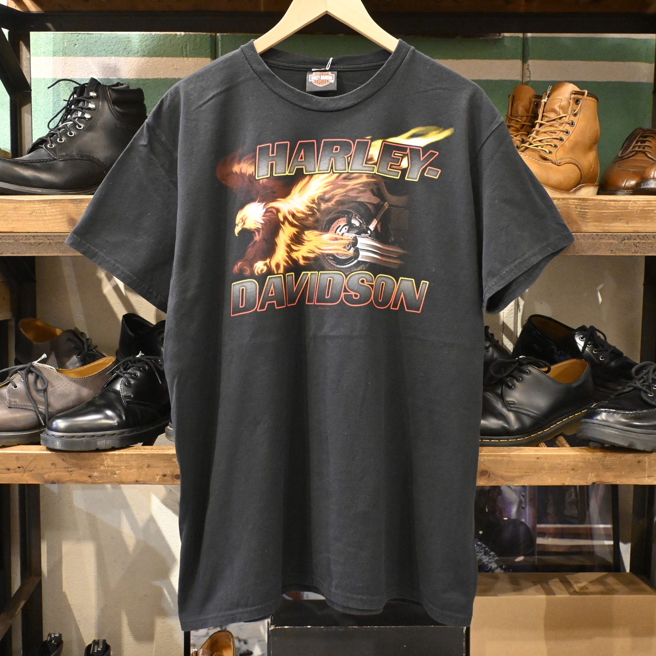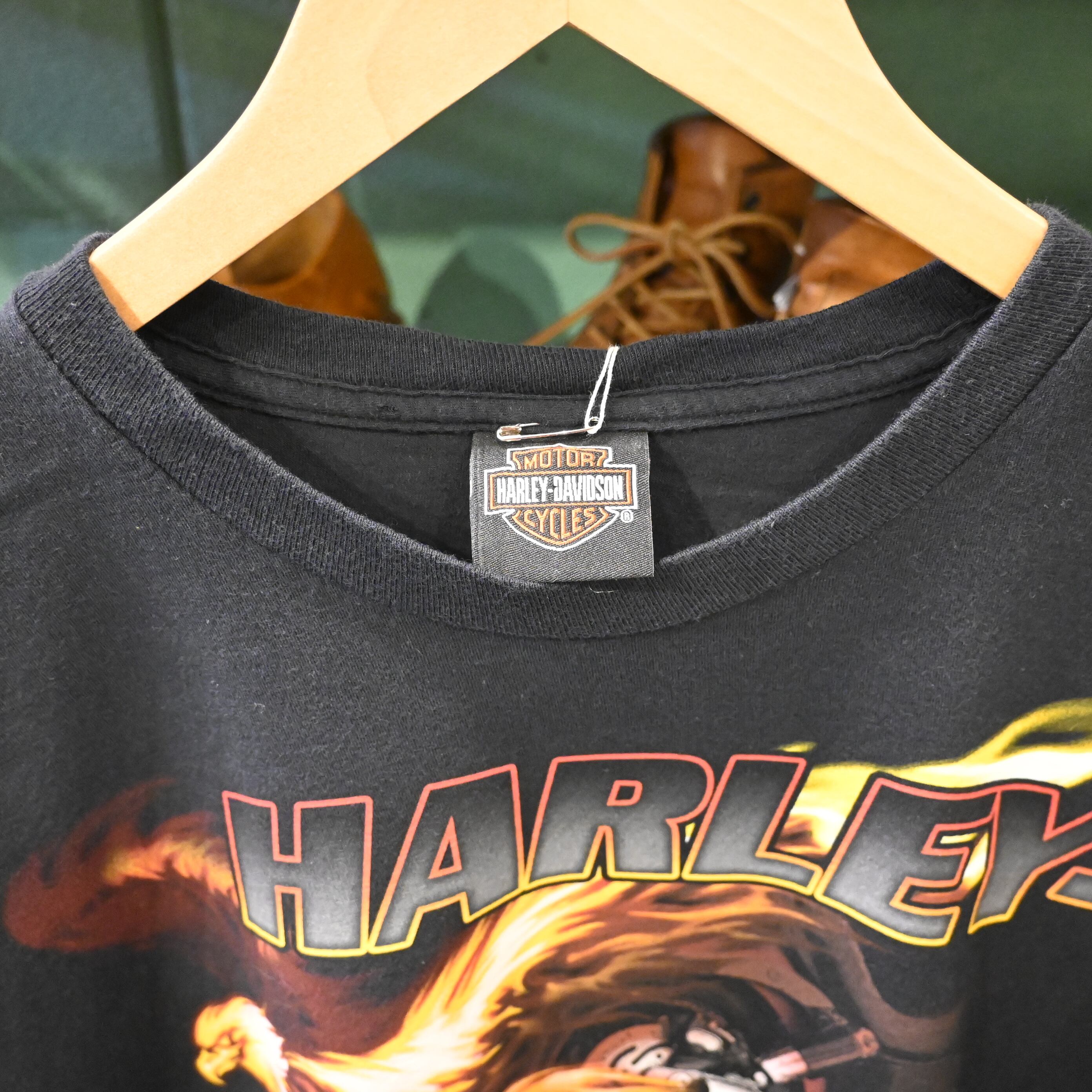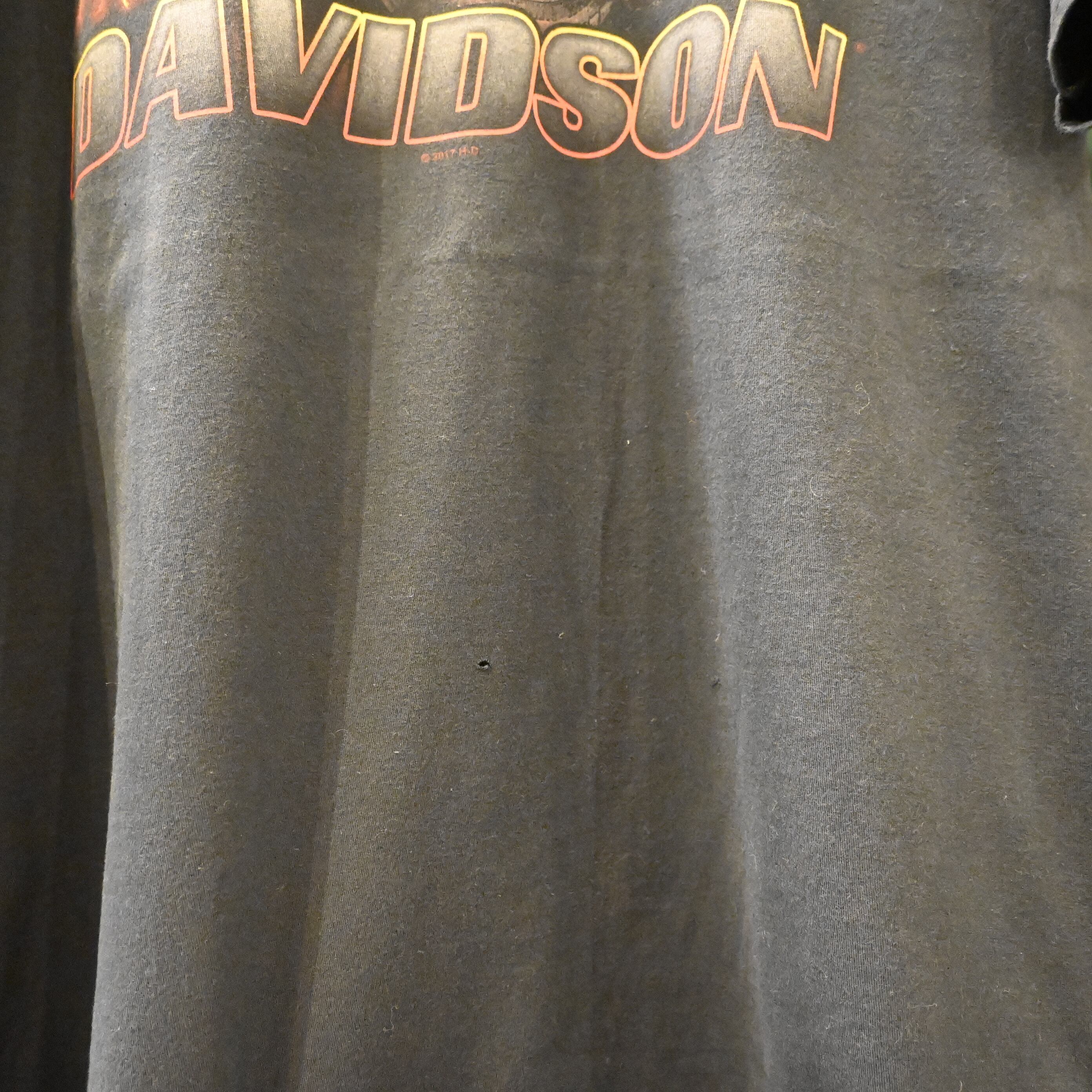 両面プリントながらもボディはオールブラックで引き締まった印象。タグは刺繍入りのHarley-Davidsonオフィシャル。ヴィンテージTシャツの中でも、重厚感とストーリー性を併せ持つ一着です。