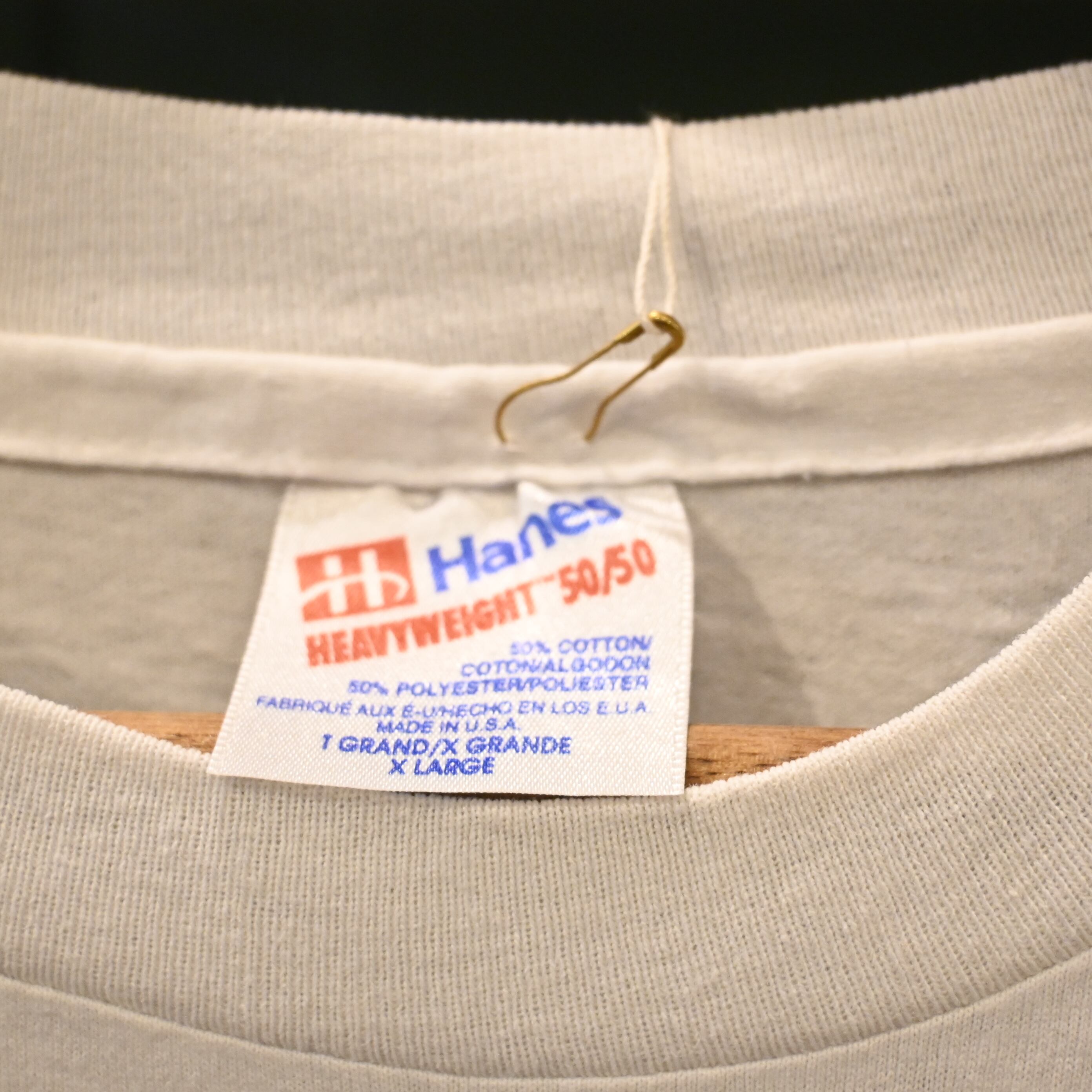 ボディはHanesのHEAVYWEIGHT 50/50。50%コットン×50%ポリエステルで、柔らかく軽やかな着心地です。USA製。