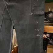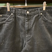 ブラックデニム特有のフェード感と、ペンキ跡や軽微な擦れがヴィンテージらしい1本。