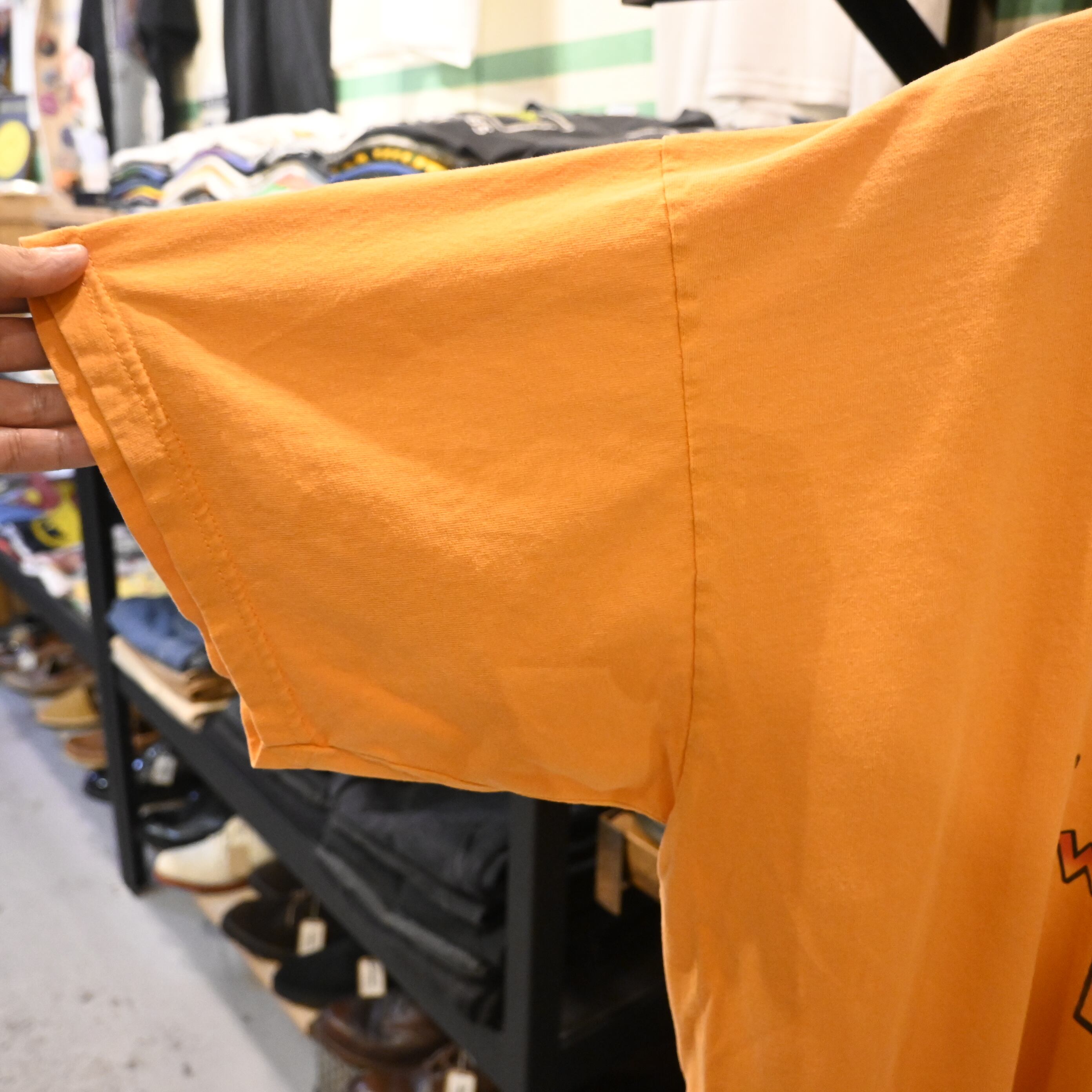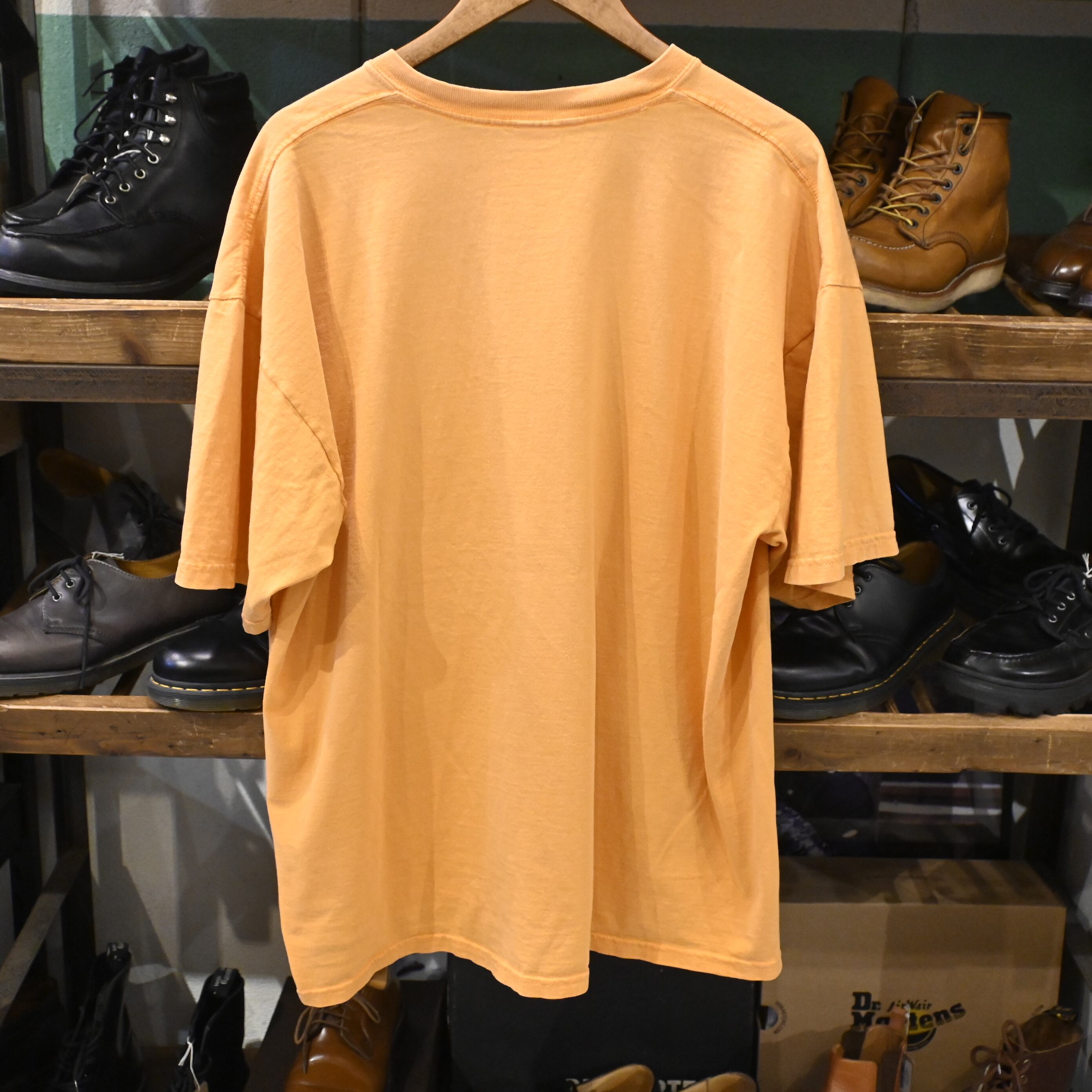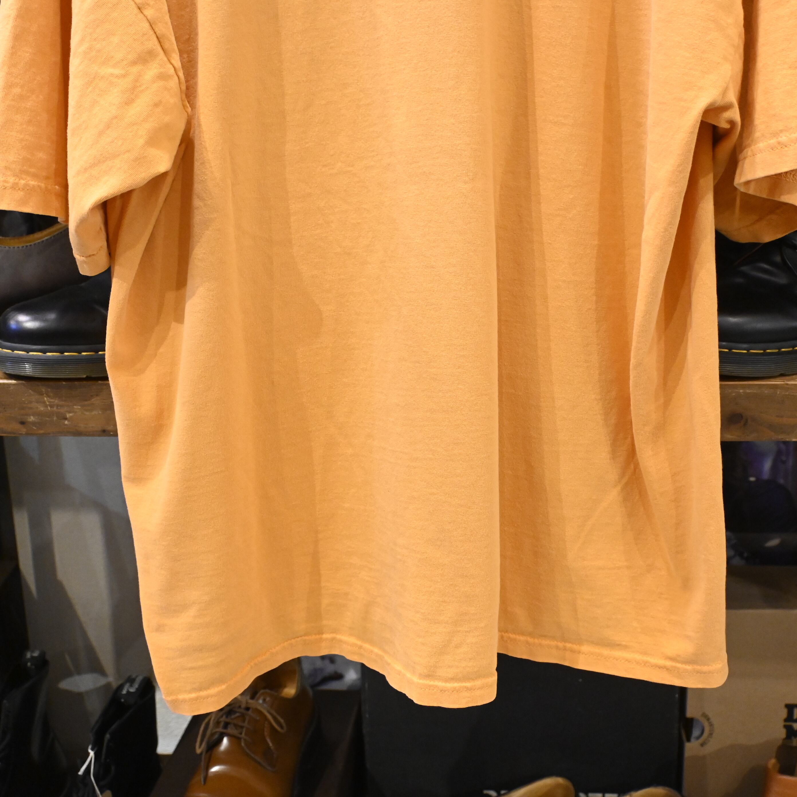 カラーはオレンジとベージュの中間のような絶妙な色味。ボディはGILDAN製のULTRA COTTONを使用し、厚みのあるしっかりした生地感です。サイズは2XLで、ワイドに着こなしたい方やビッグサイズ好きにもおすすめ。