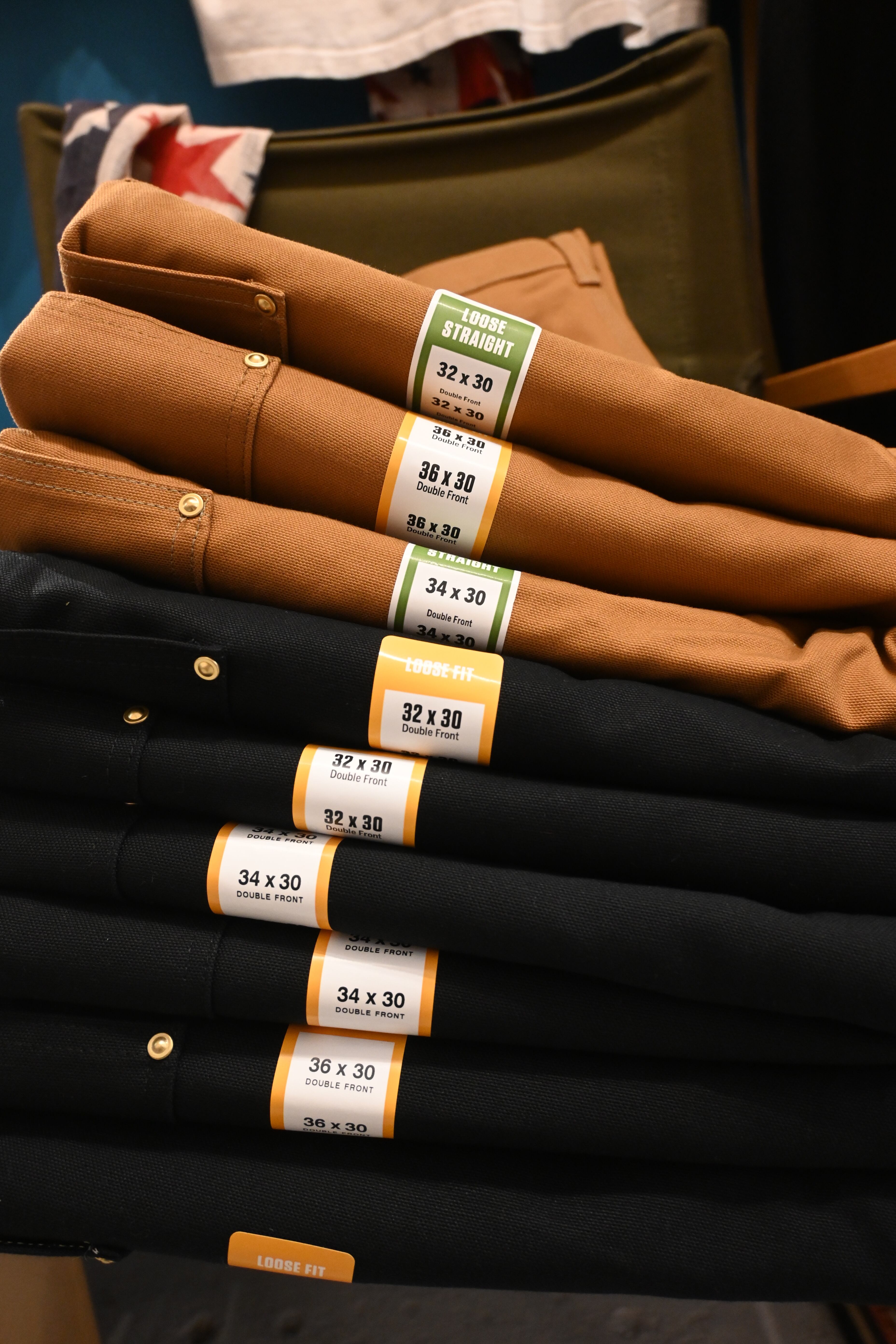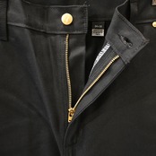 耐久性に優れたヘビーダック生地に加え、膝部分はダブルレイヤー構造。ツールポケットやハンマーループなど、ワークウェア本来の機能も健在です。ワイドストレートなシルエットで、ブーツとの合わせも抜群。