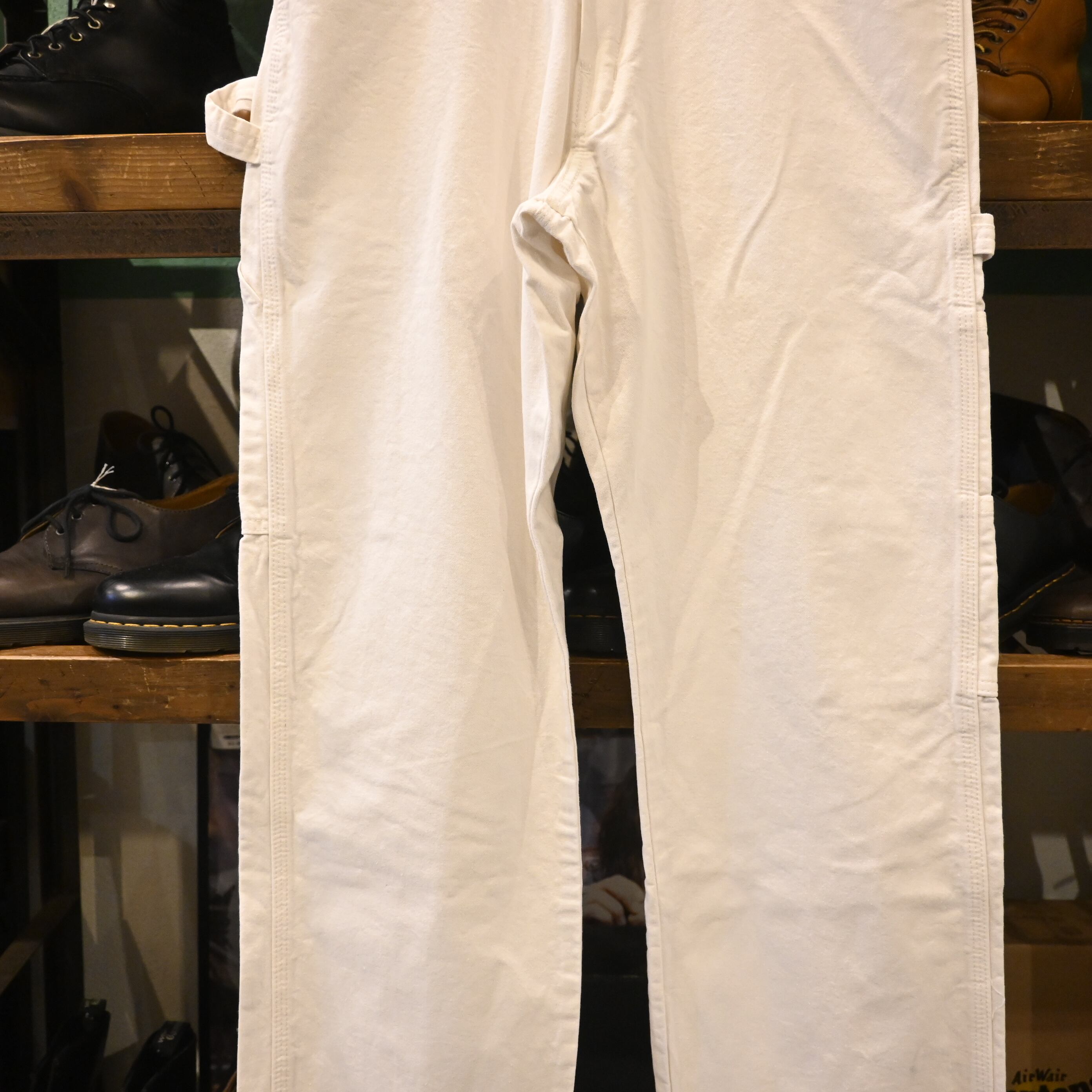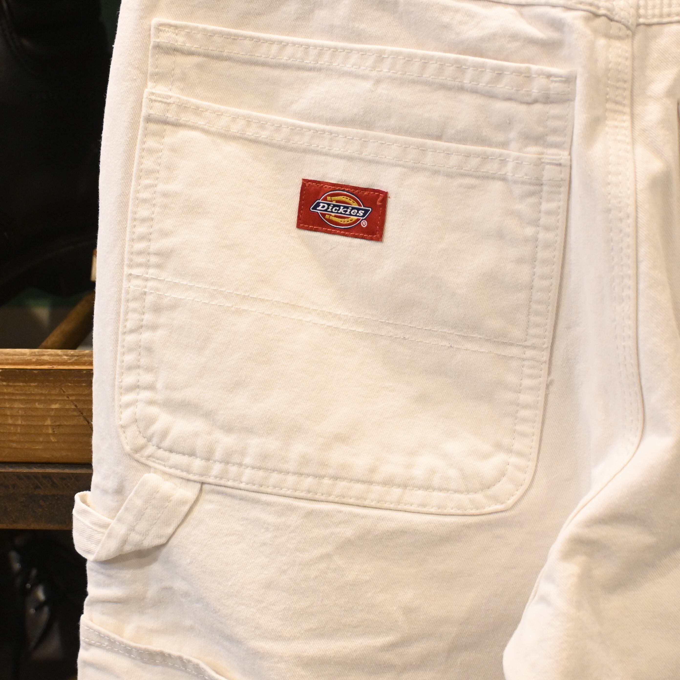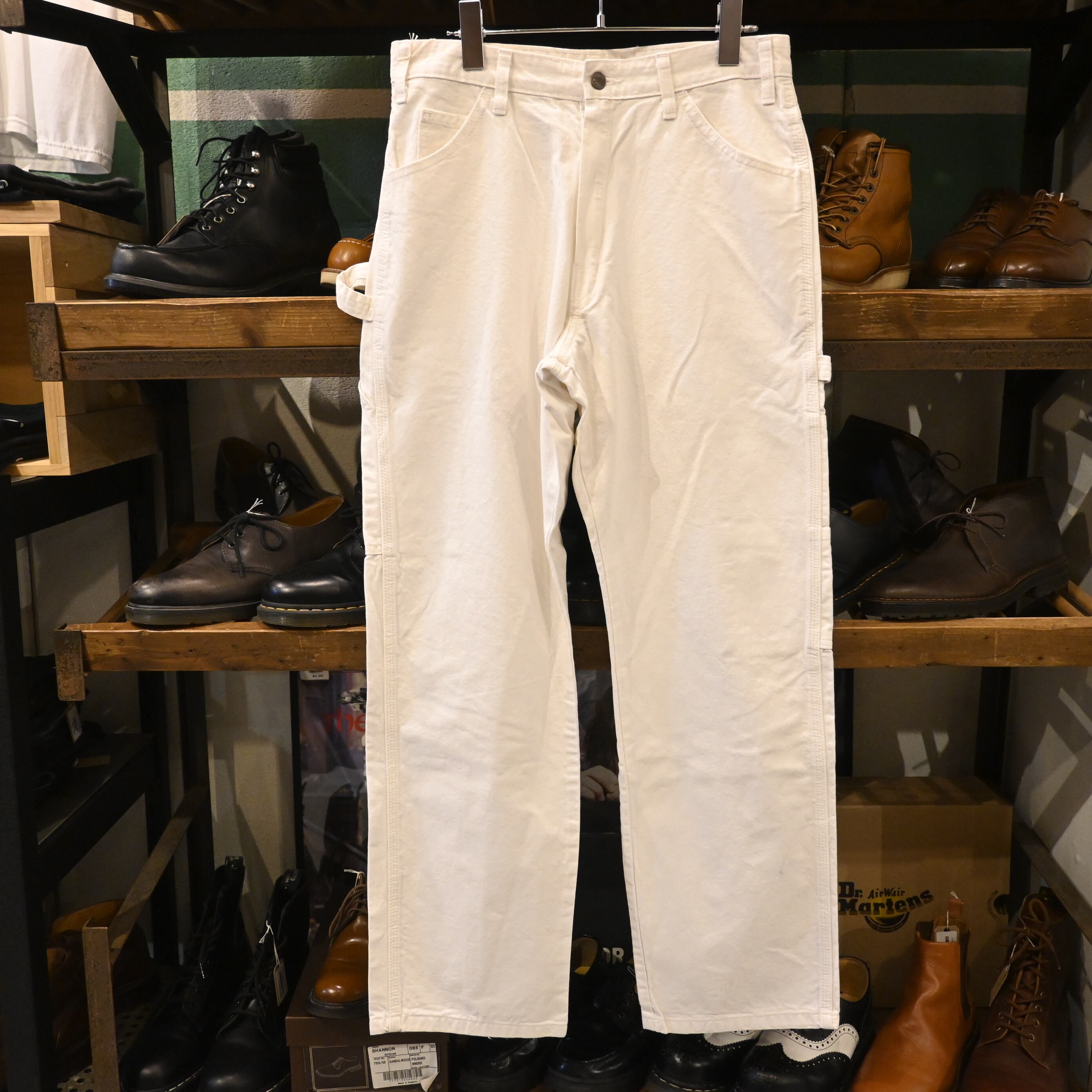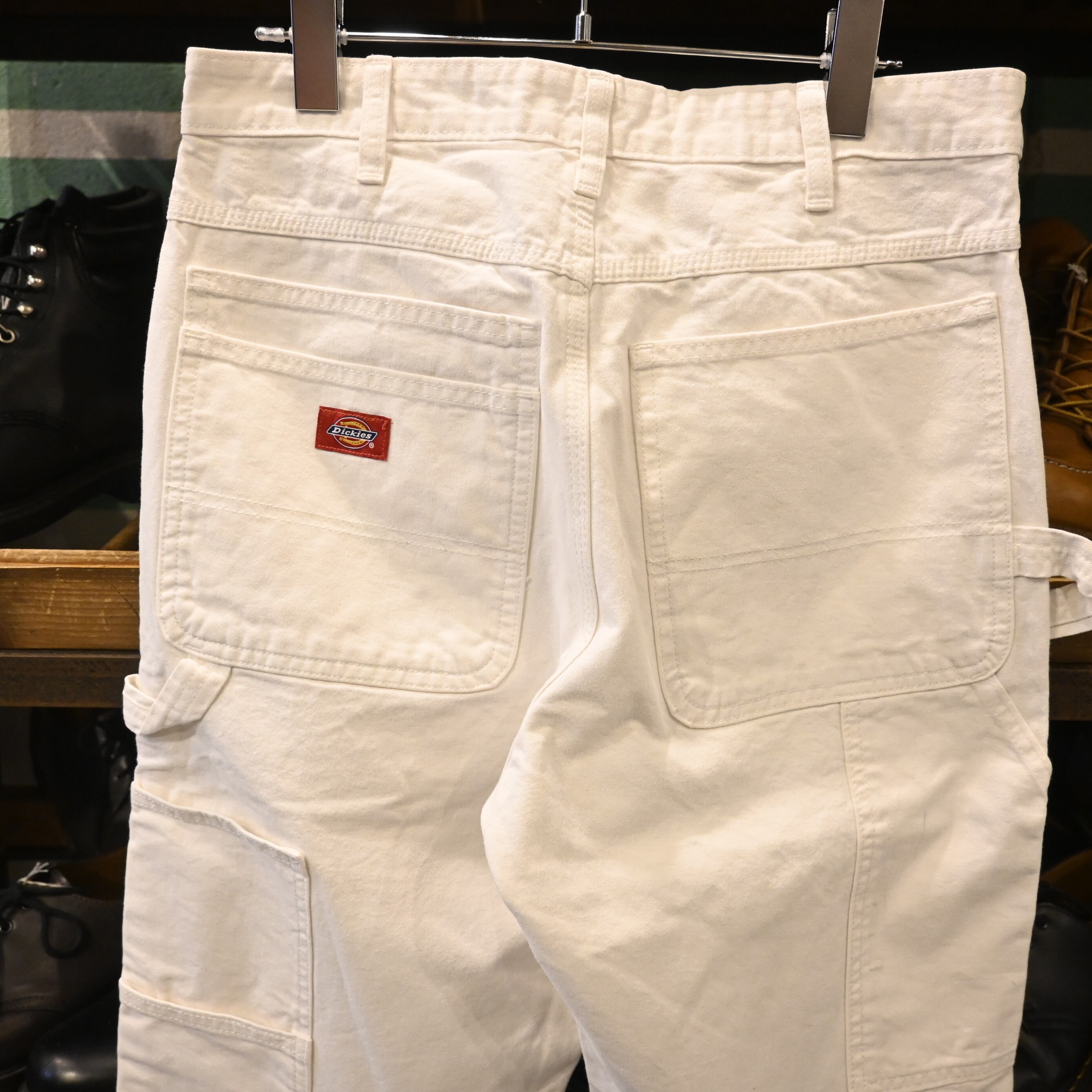 アメリカンワークウェアの代表格「Dickies(ディッキーズ)」のホワイトペインターパンツ。ツールポケットやハンマーループを備えた本格的なワーク仕様となっています。丈夫なコットン地に、ストレートに落ちるシルエットが特徴的。着込むほどに風合いが増していくのも魅力です。
