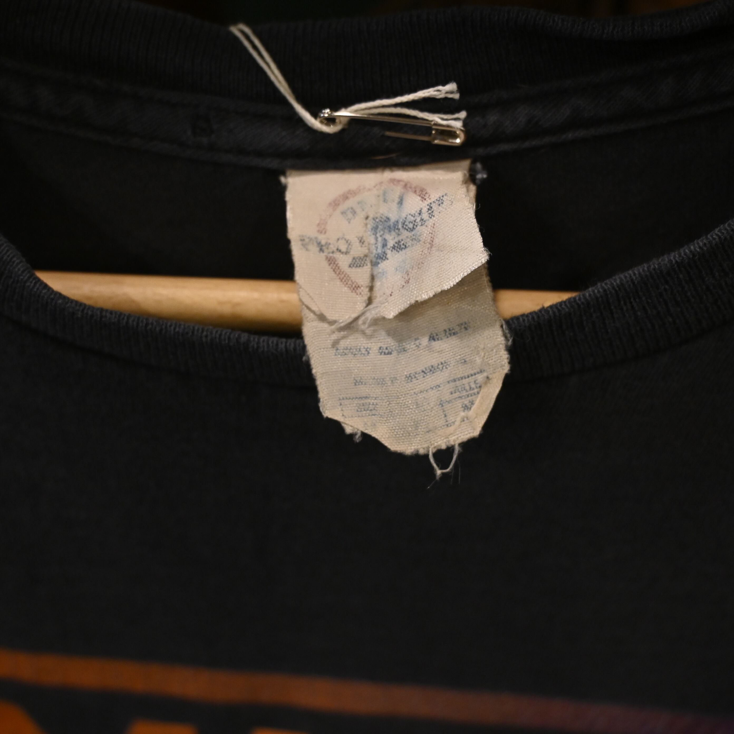 ブラックボディはフェード感があり、プリントには経年によるクラックが見られ、ヴィンテージならではの風合いを楽しめます。ロックTシャツコレクションや普段のコーディネートのアクセントにもおすすめです。