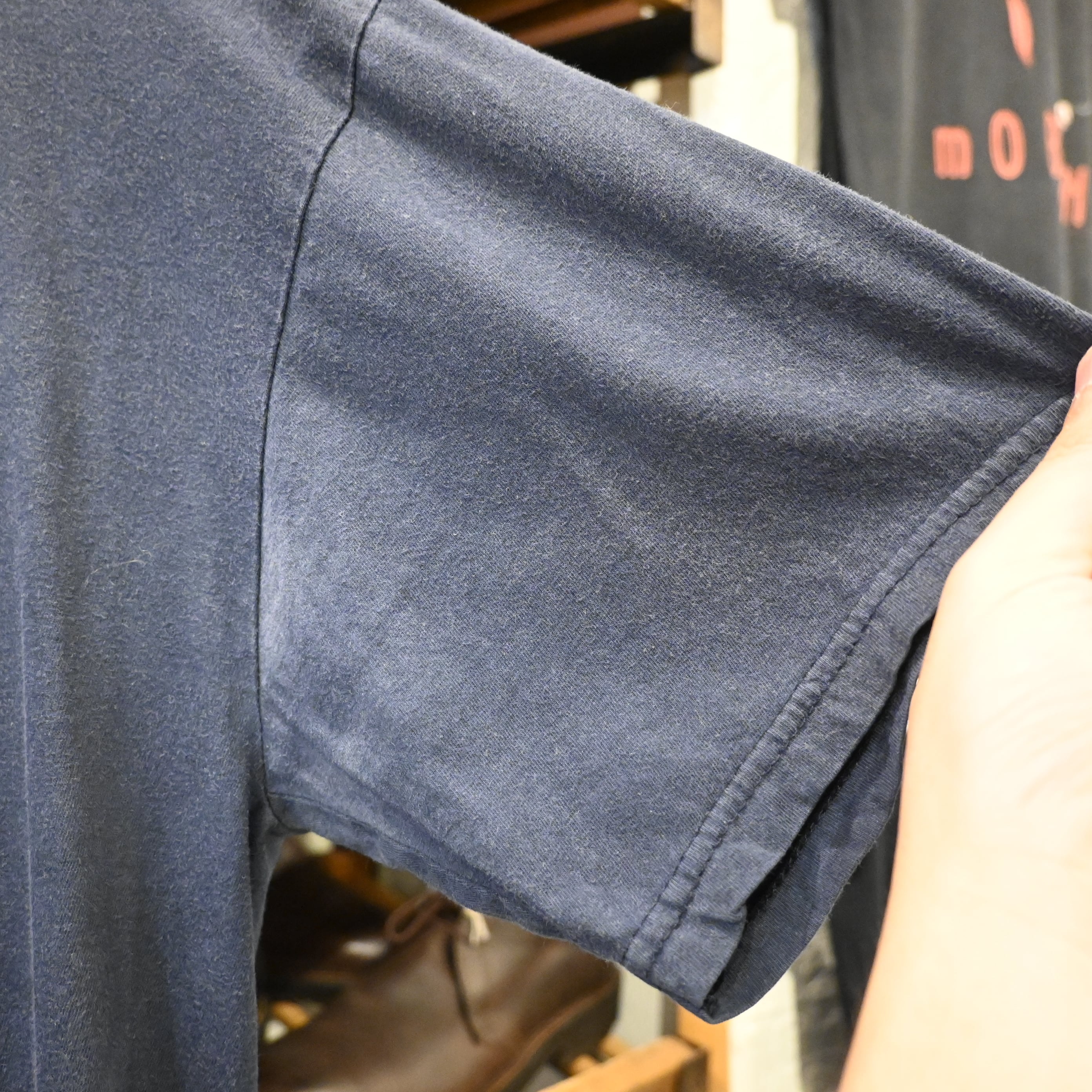 脇部分に制汗剤によるシミ、フロントに数か所ピンホールがあります。USEDならではの味わいとしてお楽しみください。