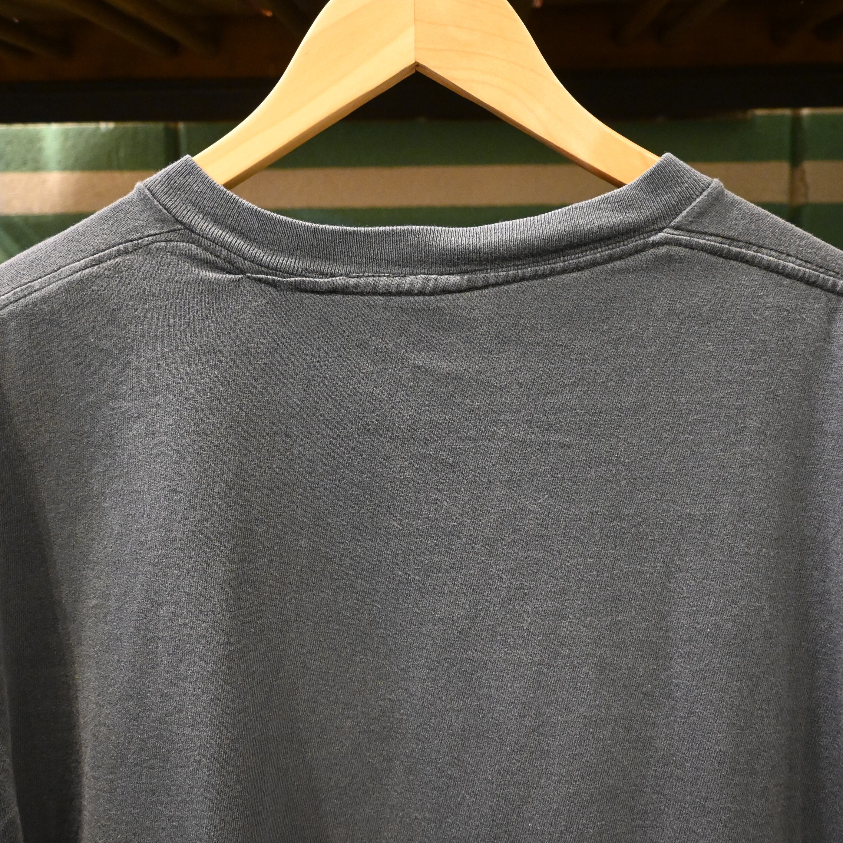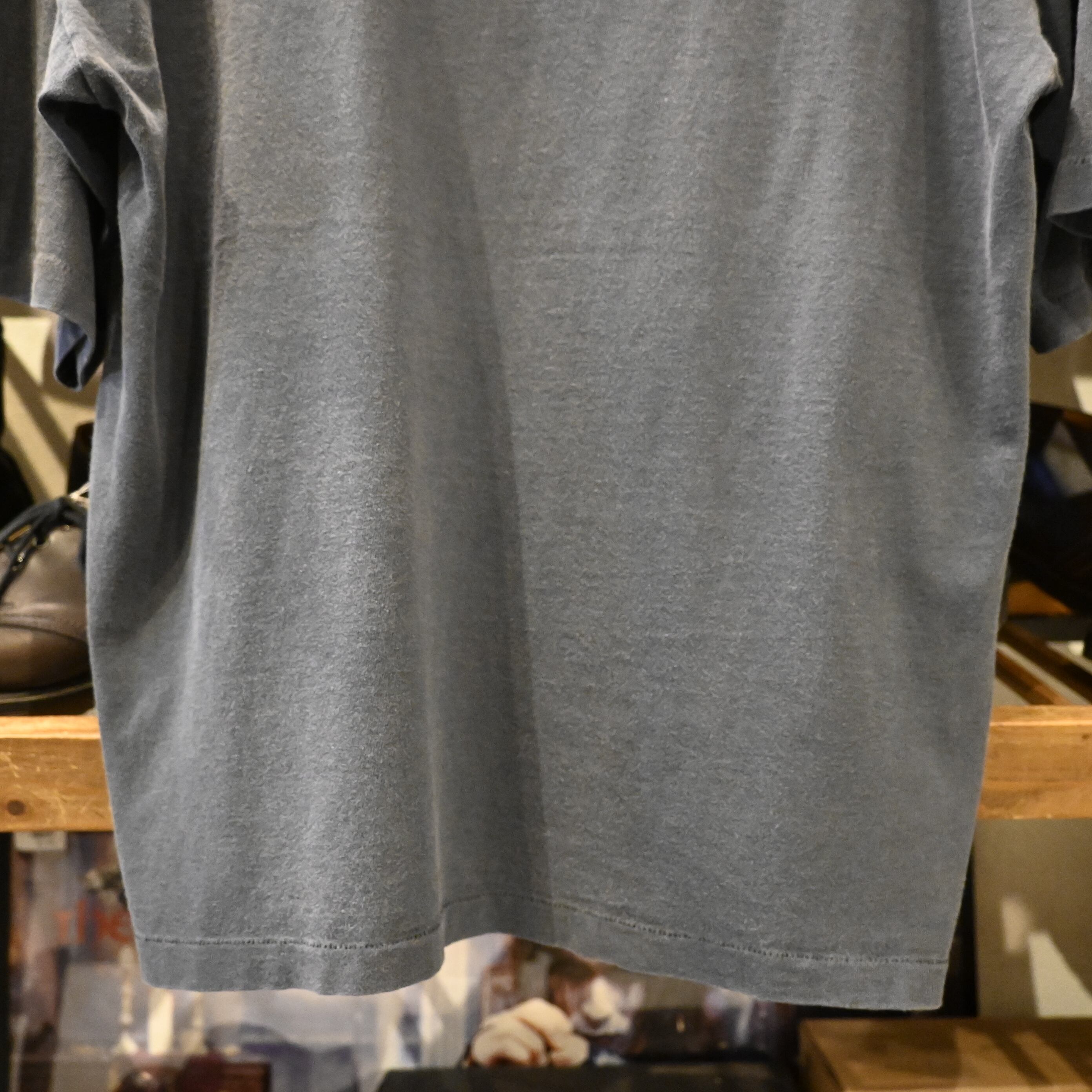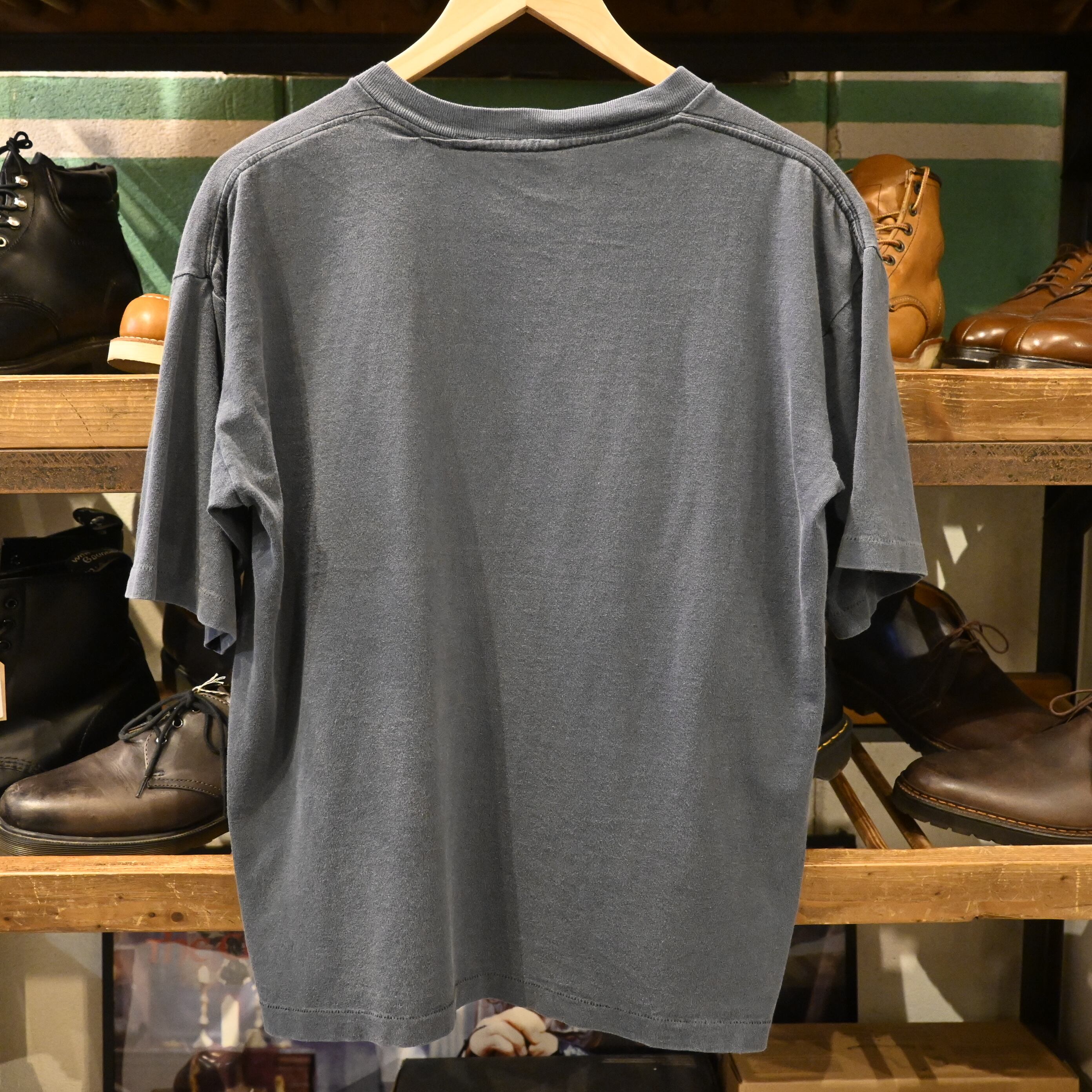 ネイビーのボディは経年によるフェード感があり、プリントにもクラックが入った雰囲気抜群の一枚。90年代特有のボックスシルエットで、アメカジ・ストリート・古着ミックスのコーディネートに活躍します。