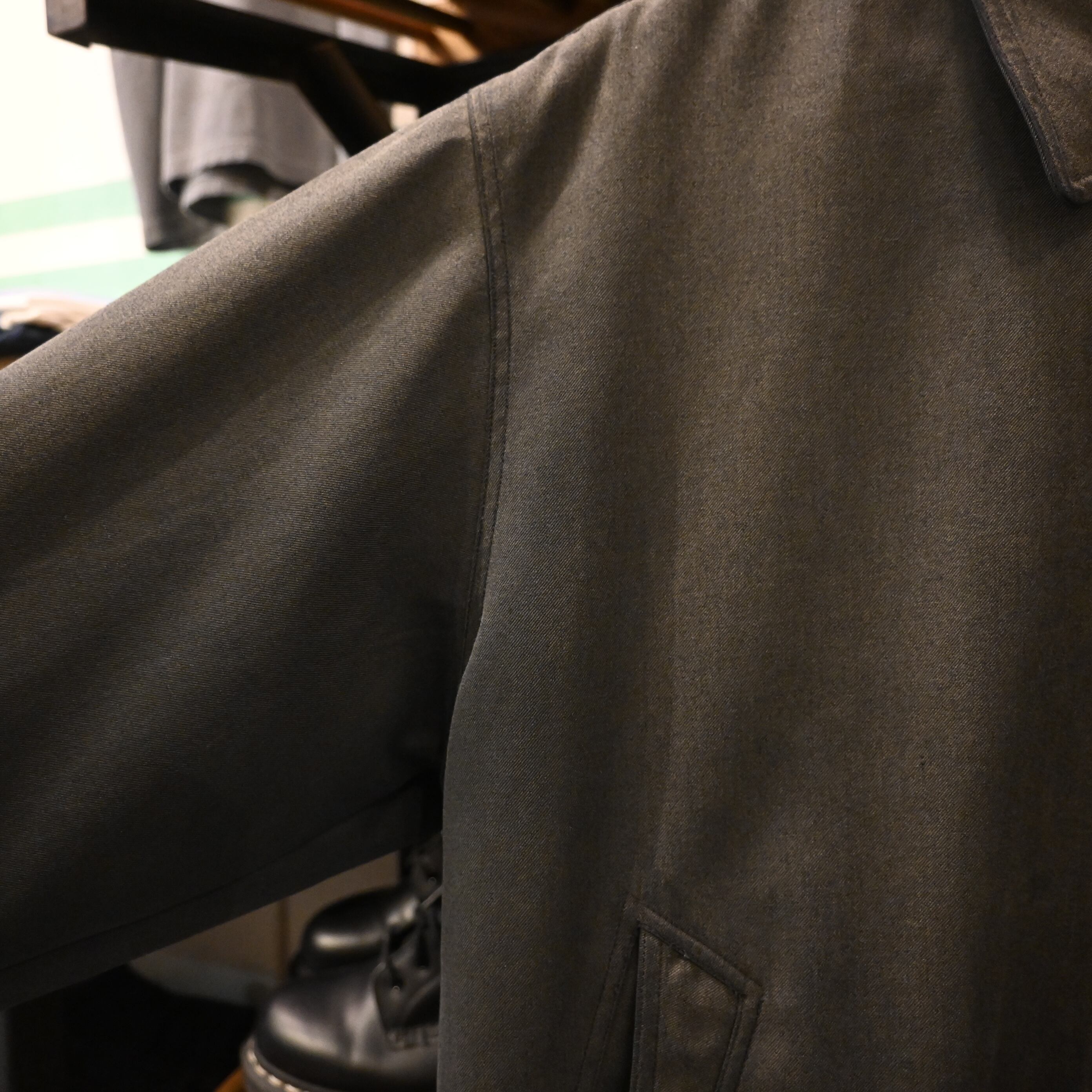 【コンディション】全体的に着用感はございます。薄っすらとしたシミ、若干のダメージ。目立つものではなく雰囲気のある古着としてお楽しみいただけるアイテムかと思います。