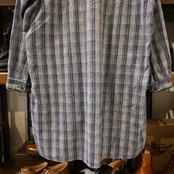 プルオーバー仕様に長いマチ付きのラウンドカットの裾、ブルー×グリーン系の落ち着いたチェック柄が印象的で配色のいい一枚です。
