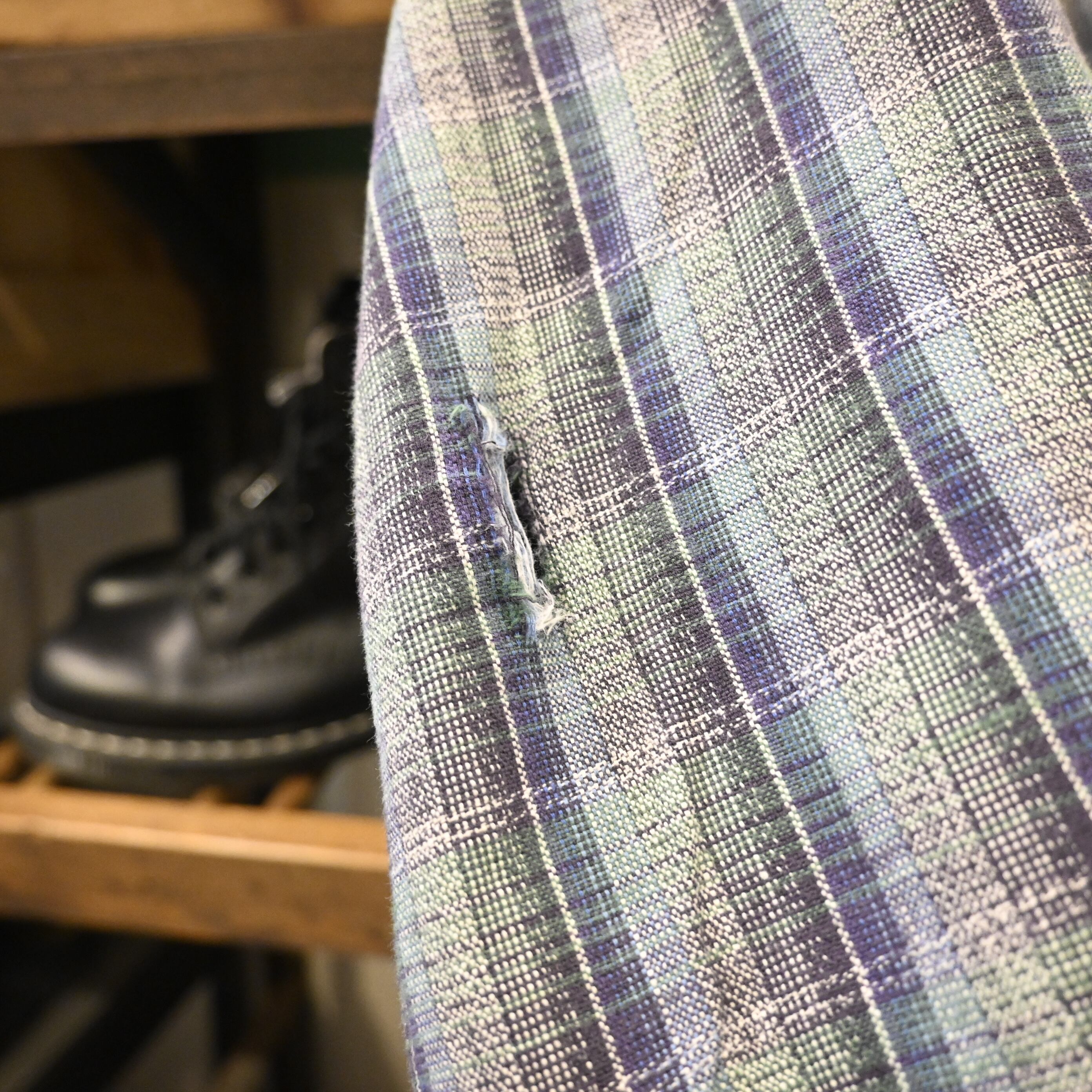 【コンディション】襟元・袖口に擦れあり、右袖肘部分に破れあり。左袖肘部分のステッチにほつれあり。着用に支障のあるダメージなどはございませんが、ヴィンテージ特有の使用感のあるアイテムです。