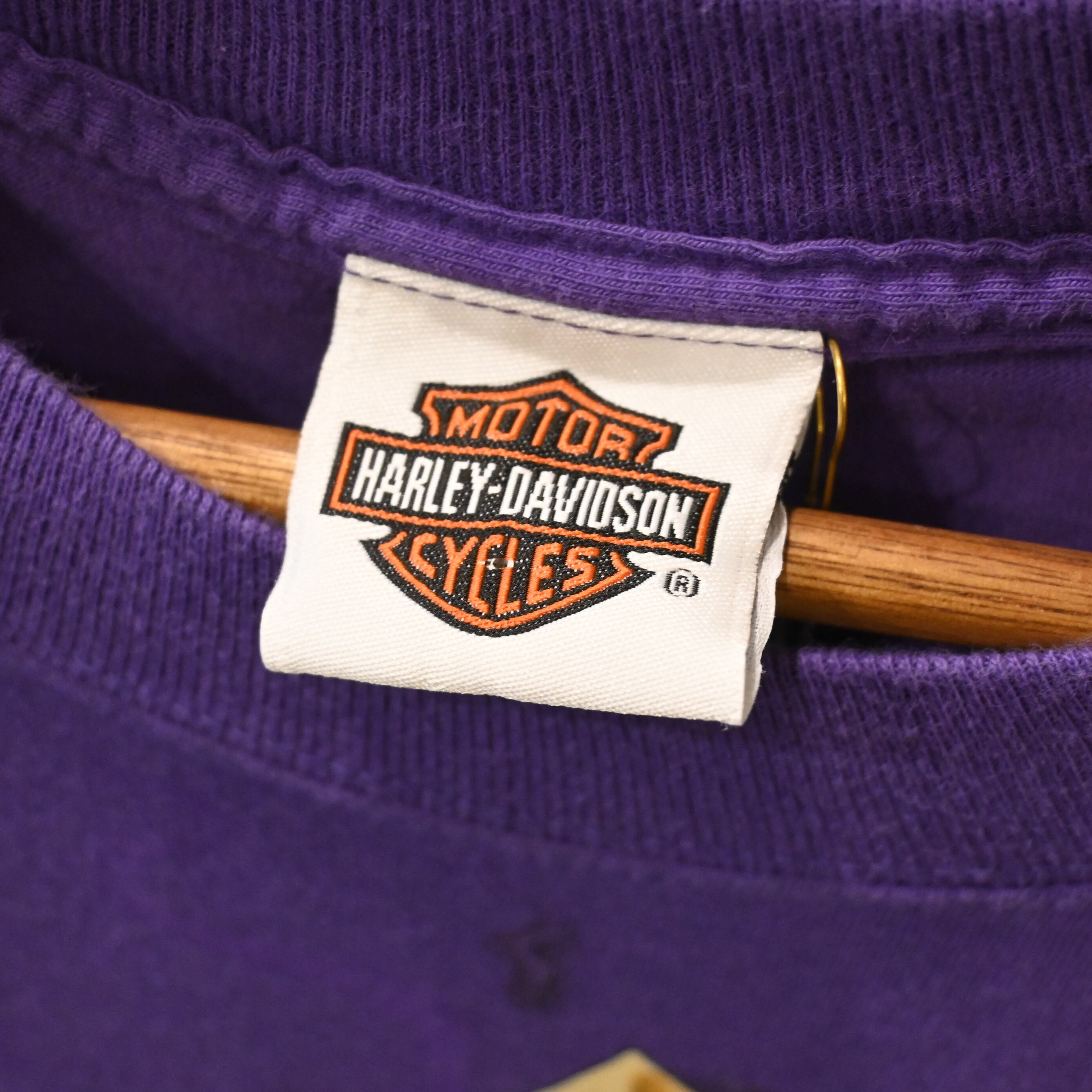 鮮やかなパープルボディにゴールドのアクセントが映えるデザインで、ヴィンテージハーレーTの中でも希少性の高いアイテムです。