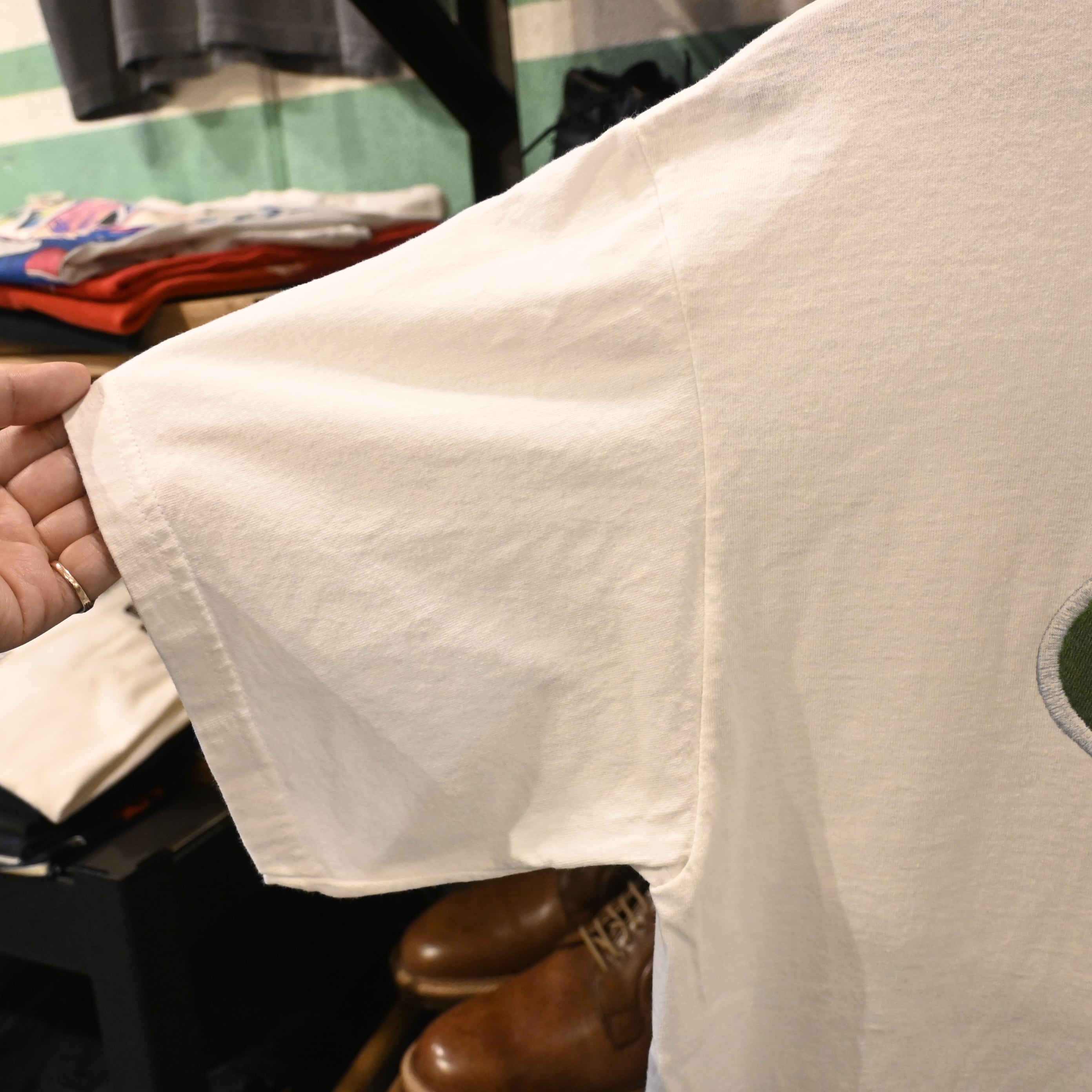 フロントにはグリーン×オレンジで構成された「U」ロゴ、袖にはスウッシュ刺繍が入り、90sナイキらしい存在感のある一枚。