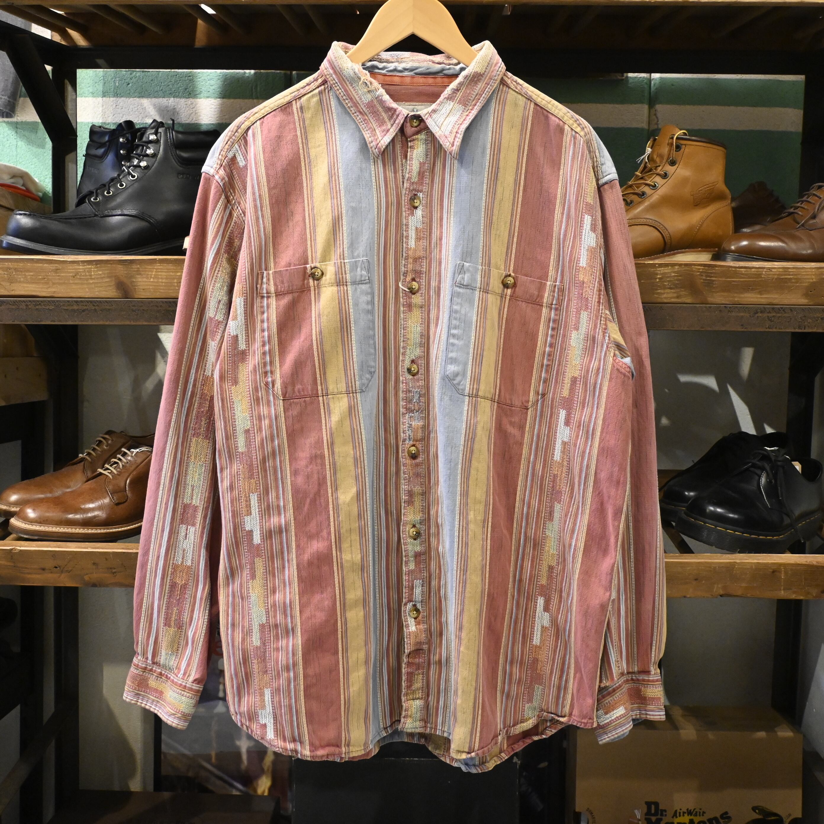 The Territory Ahead マルチストライプ ネイティブ調 コットンシャツ(XL)