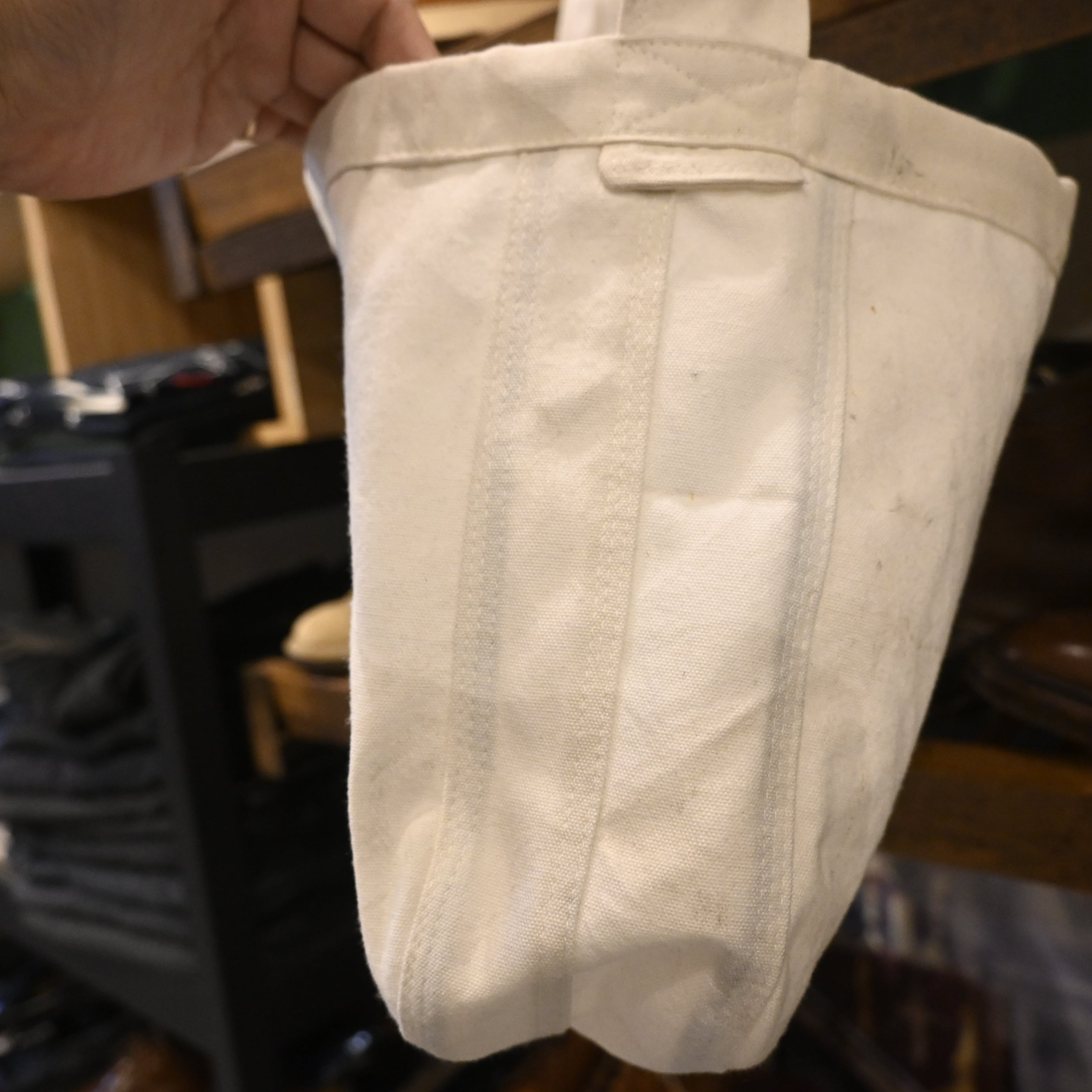 サイズ感はやや小ぶりで、ニュースペーパーバッグのように普段使いしやすい仕上がり。シンプルなスタイリングに合わせるだけで無骨な雰囲気をプラスしてくれるアイテムです。