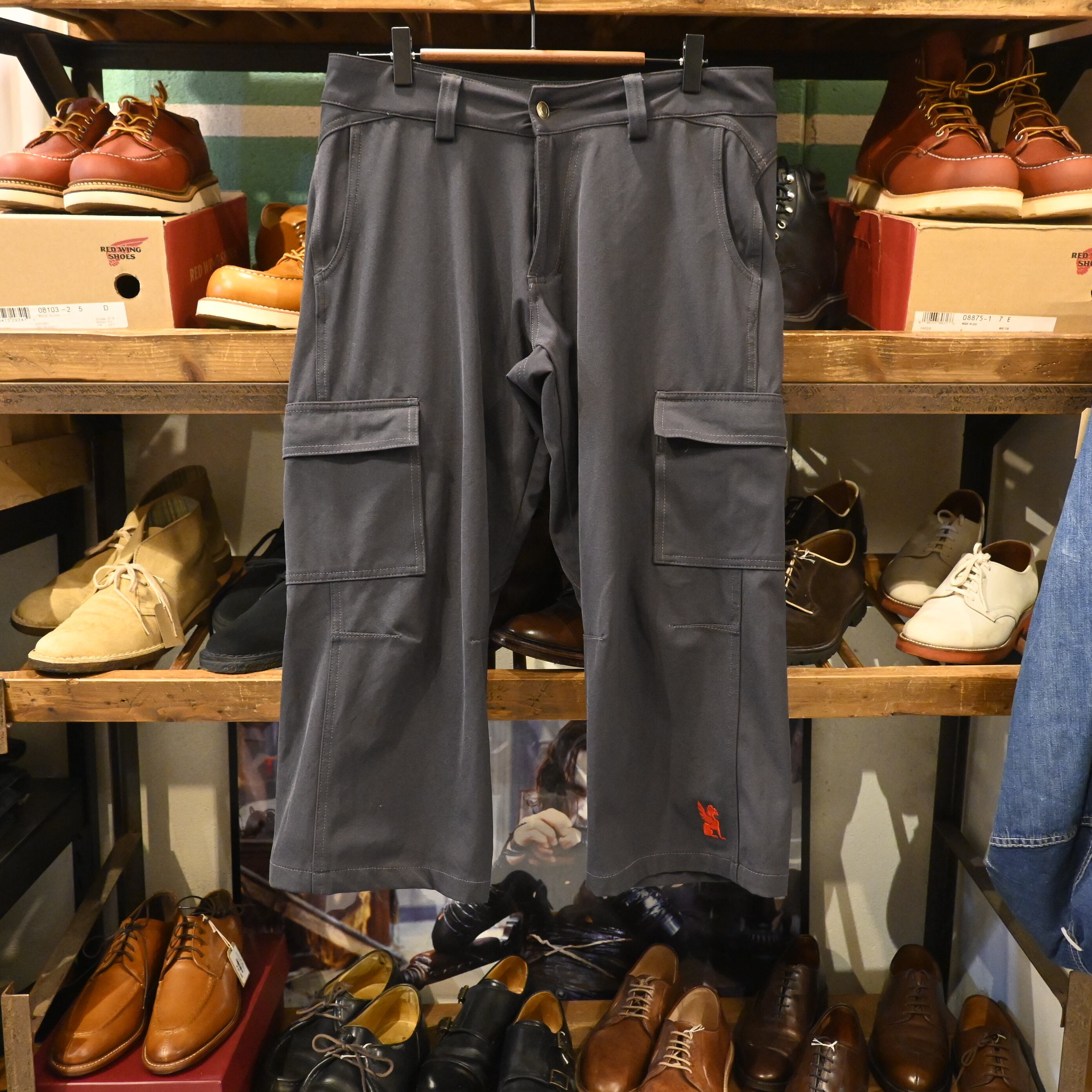 しっかりとしたナイロン混紡素材に、ブランドアイコンである赤いグリフィン刺繍がワンポイントで入ったデザイン。カーゴポケット付きで機能性も高く、街着からアウトドア・サイクリングまで幅広く活躍してくれる一本です。