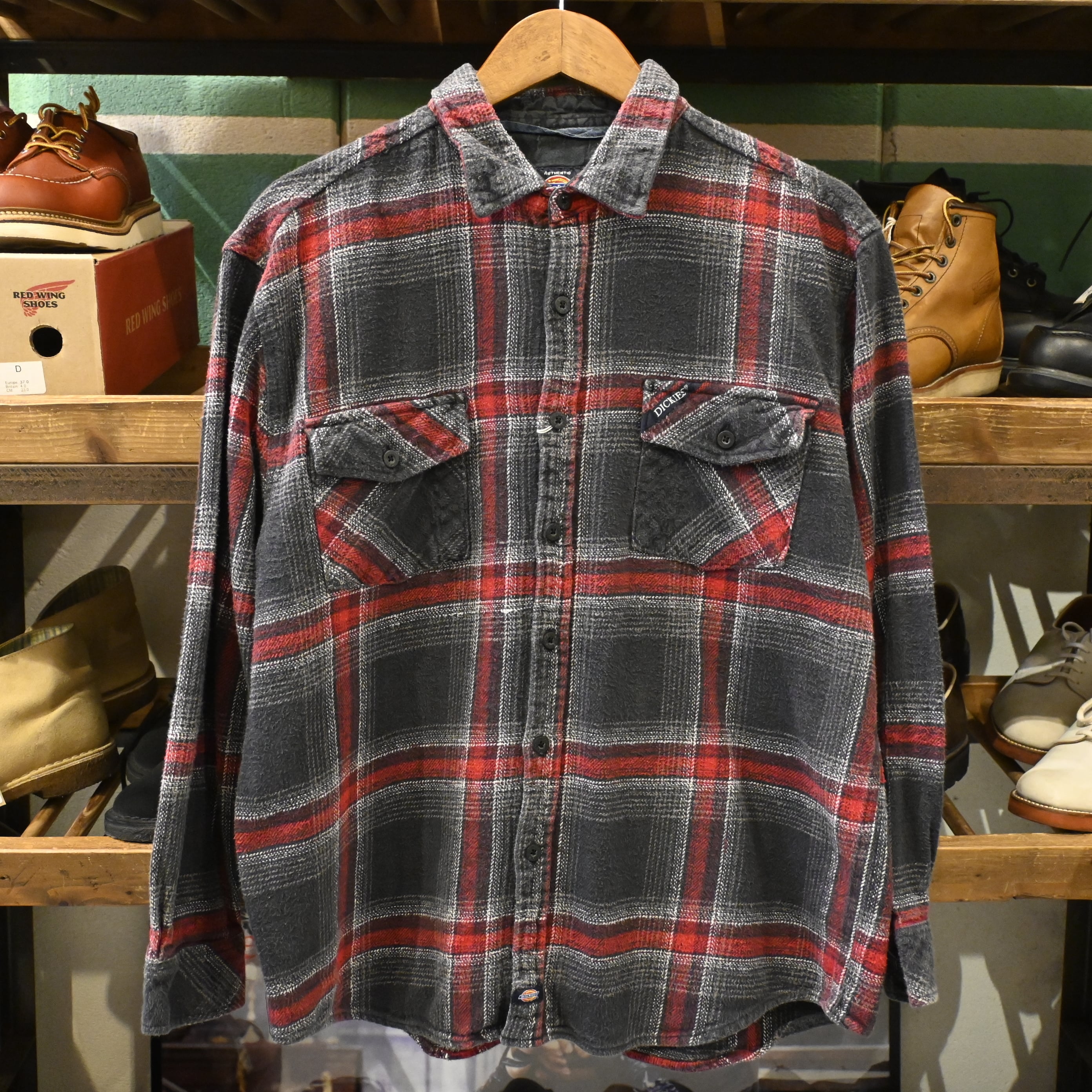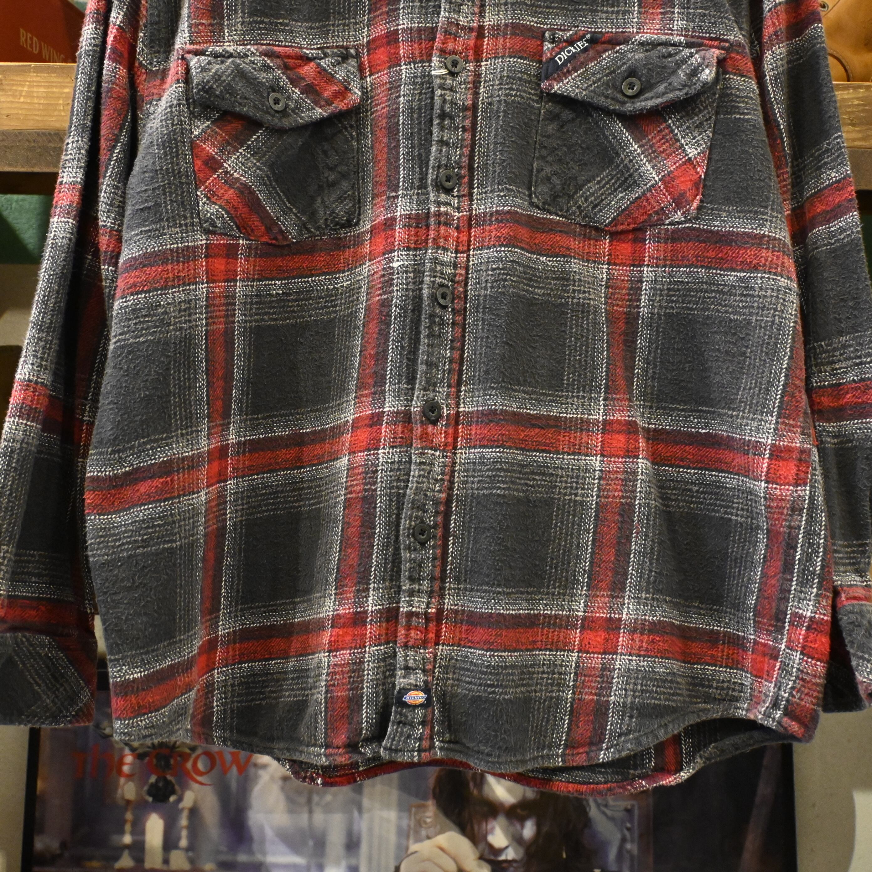Dickies ブラック×レッド チェック ヘビーフランネルシャツ