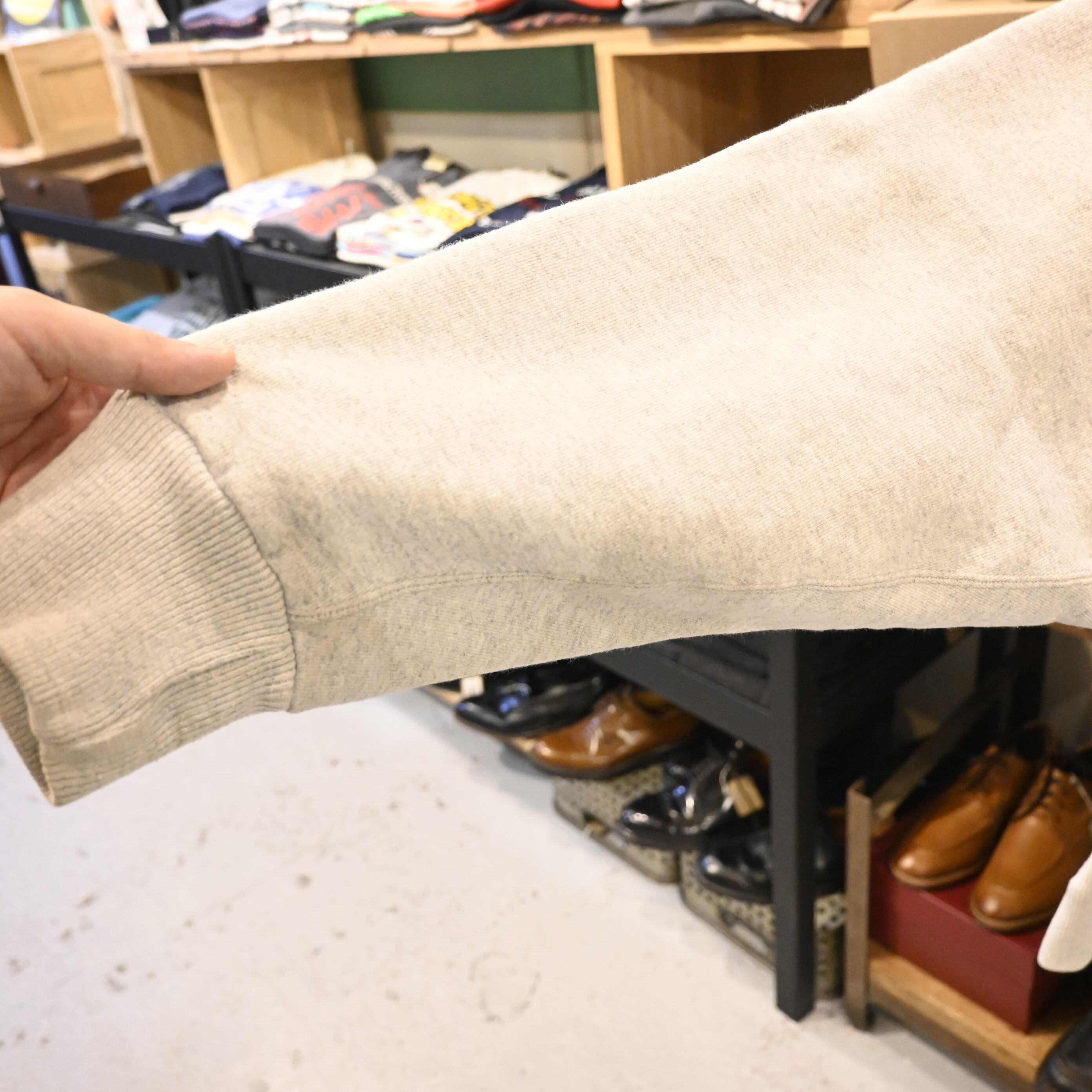 USA製ならではのタフな生地感とクラシックなシルエットが魅力。コットン×ポリエステルの柔らかい裏起毛仕様で、デイリーウェアとして快適に着用いただけます。デニムやワークパンツとの相性はもちろん、スラックスやレザーシューズに合わせた大人カジュアルにもおすすめです。