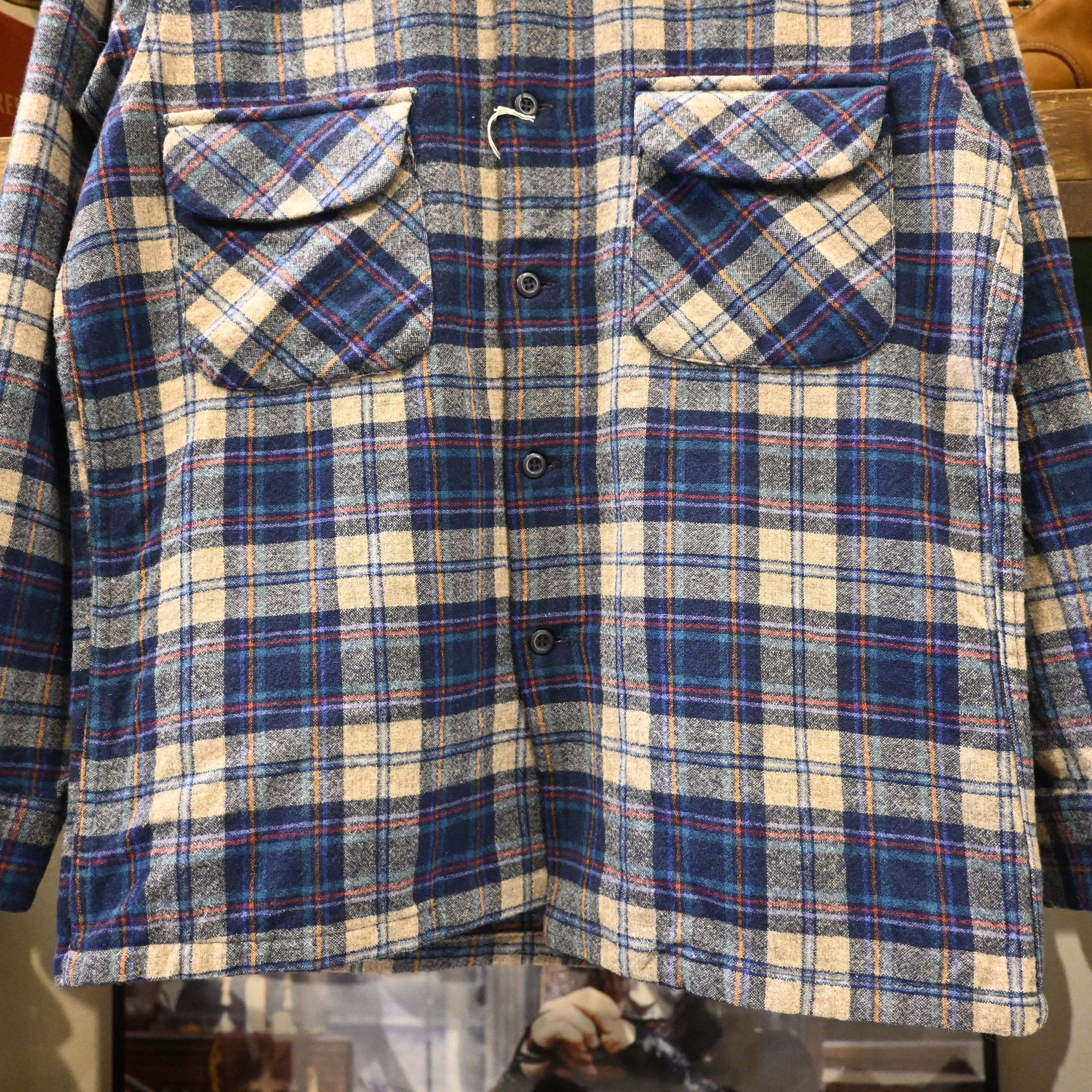 70’s PENDLETON ペンドルトン オープンカラー ウールシャツ USA製 ネイビーチェック Mサイズ相当