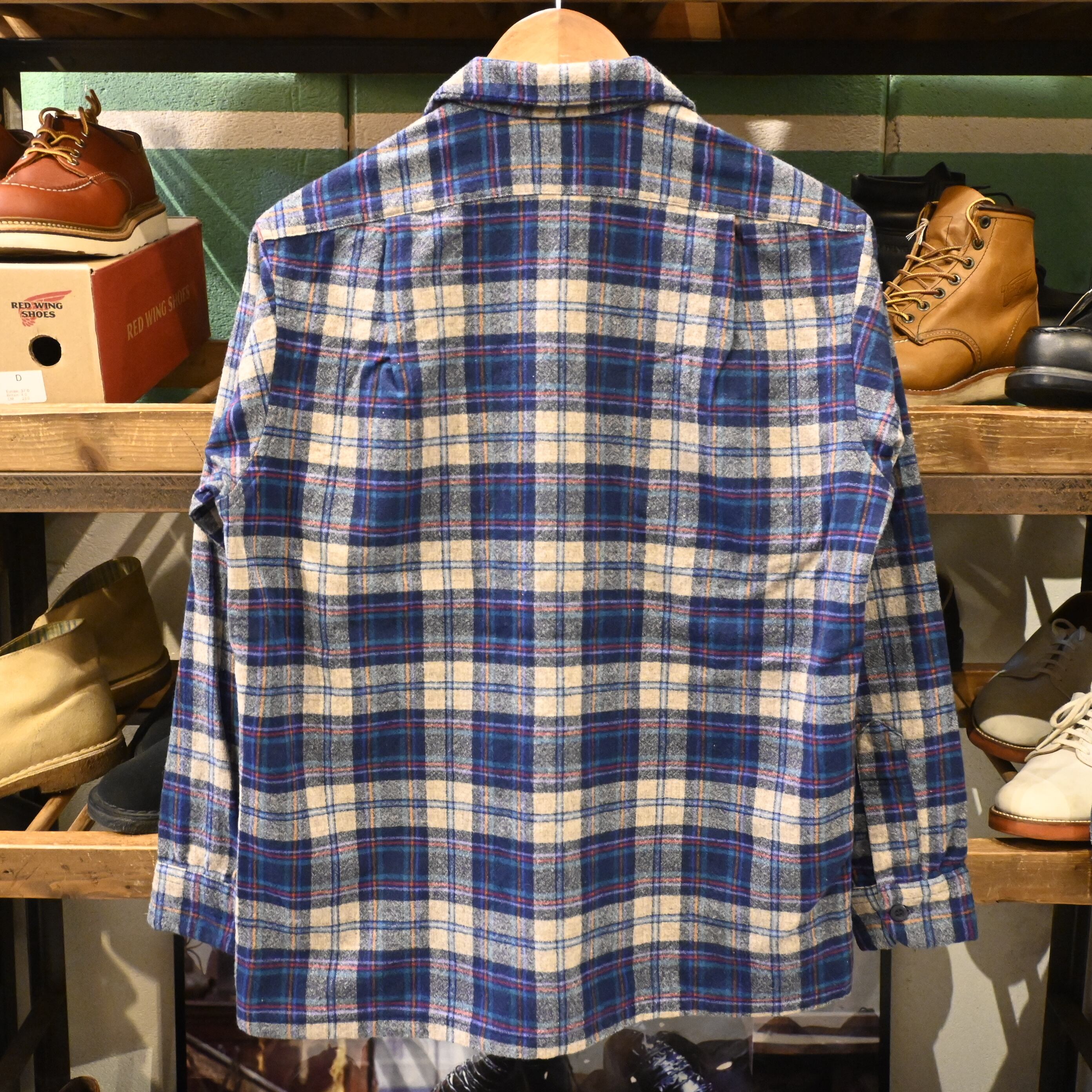 [ M ] PENDLETON 70‘s USA製 Wool Check Pattern Open Collar Shirt