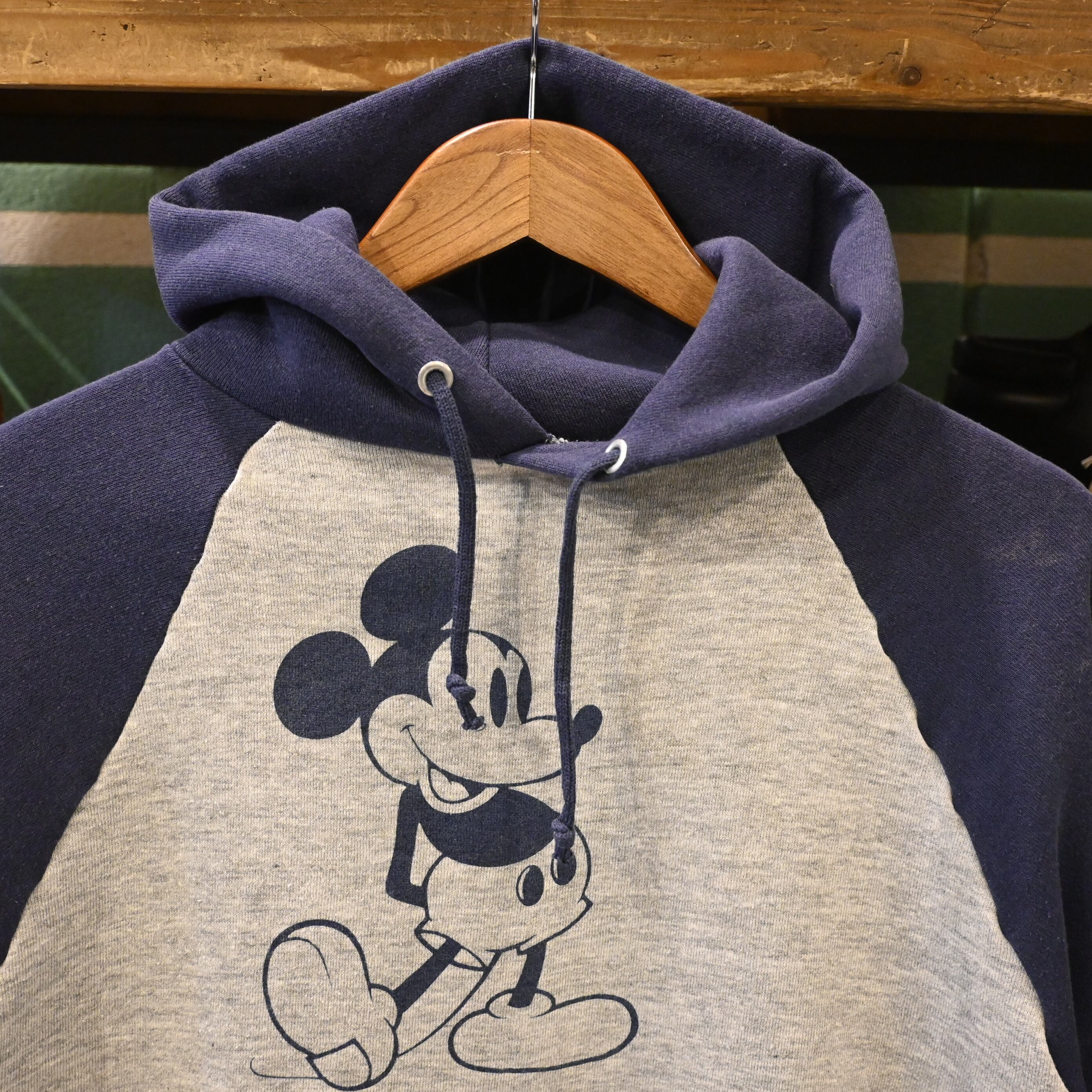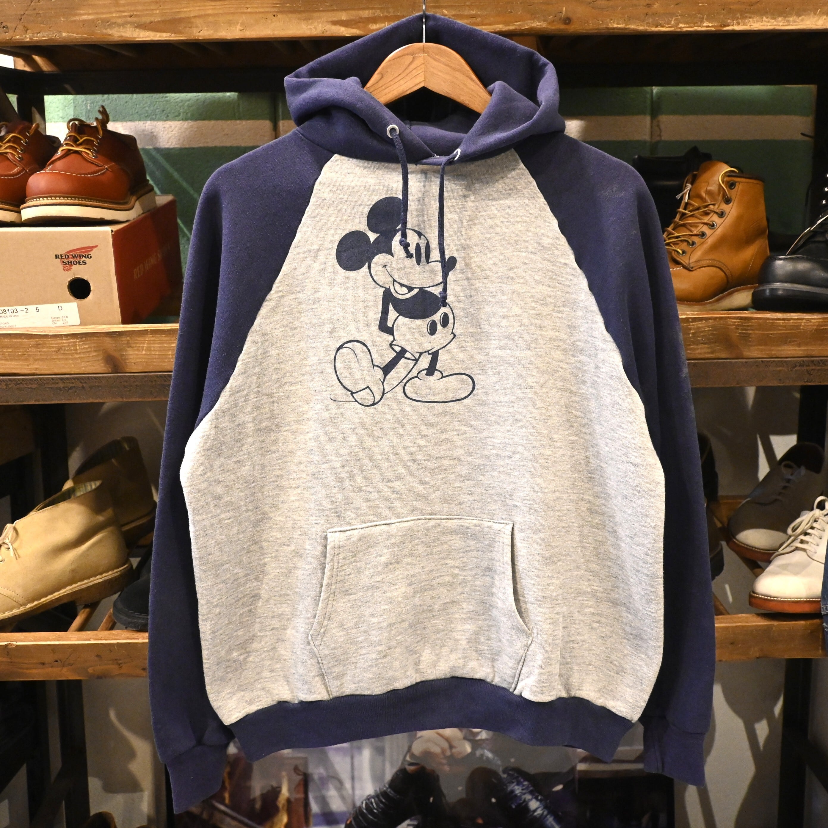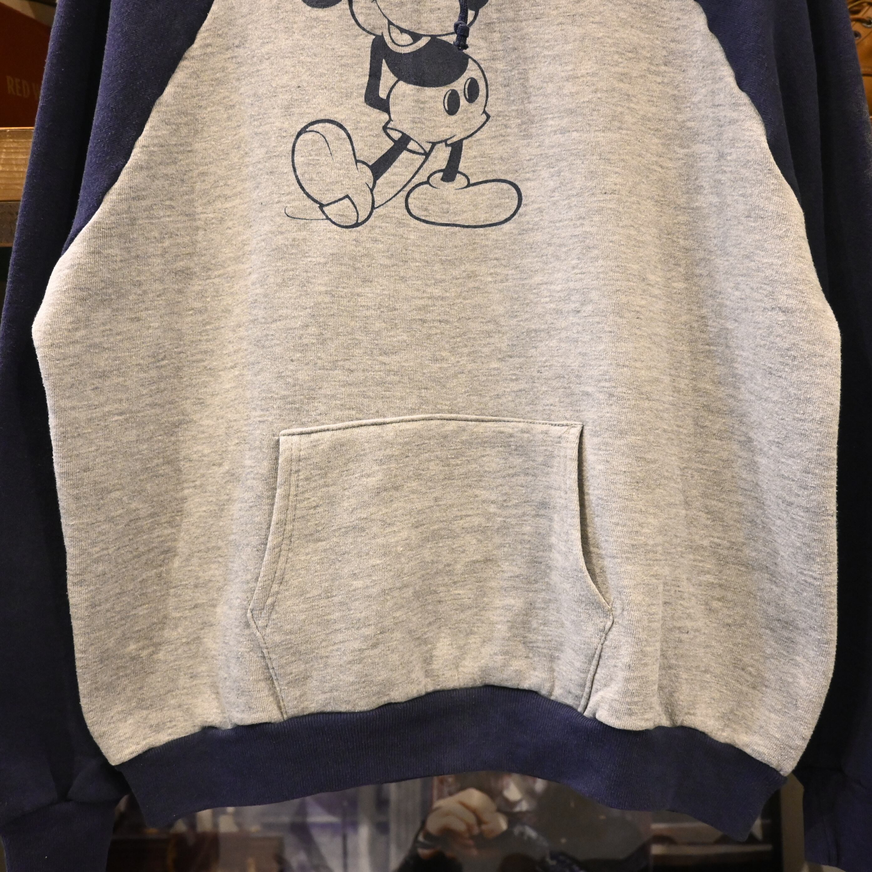 [ XL ] Disney 80‘s USA製 "MICKEY" Raglan Sweat Hoodie Gray Navy