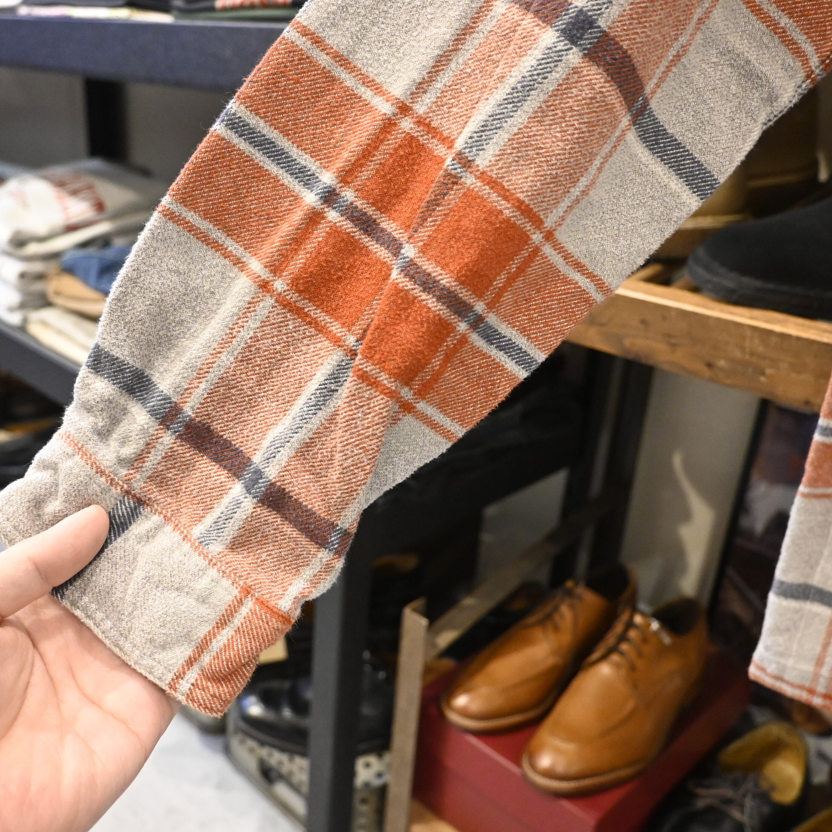 オレンジとグレーを基調としたチェック柄は存在感があり、アウトドアスタイルはもちろん、カジュアルなデイリーユースにもぴったり。
