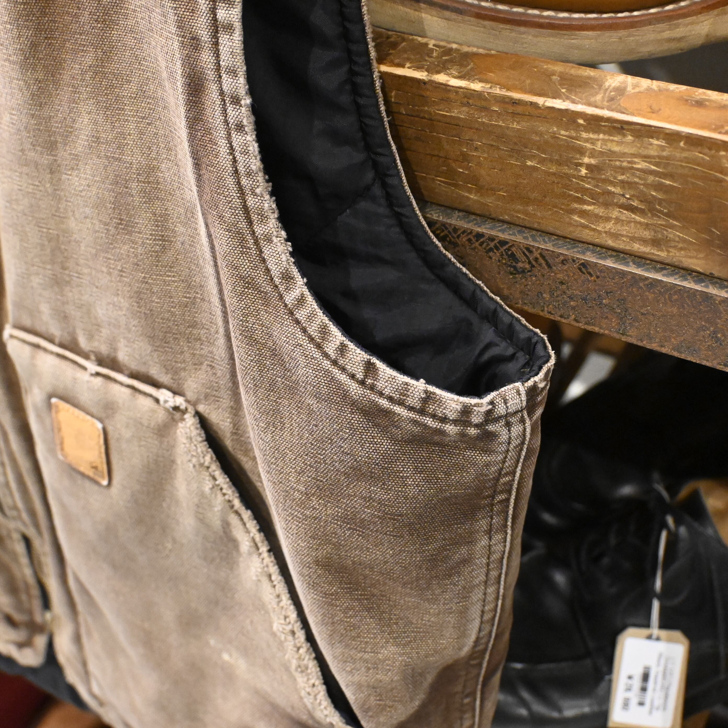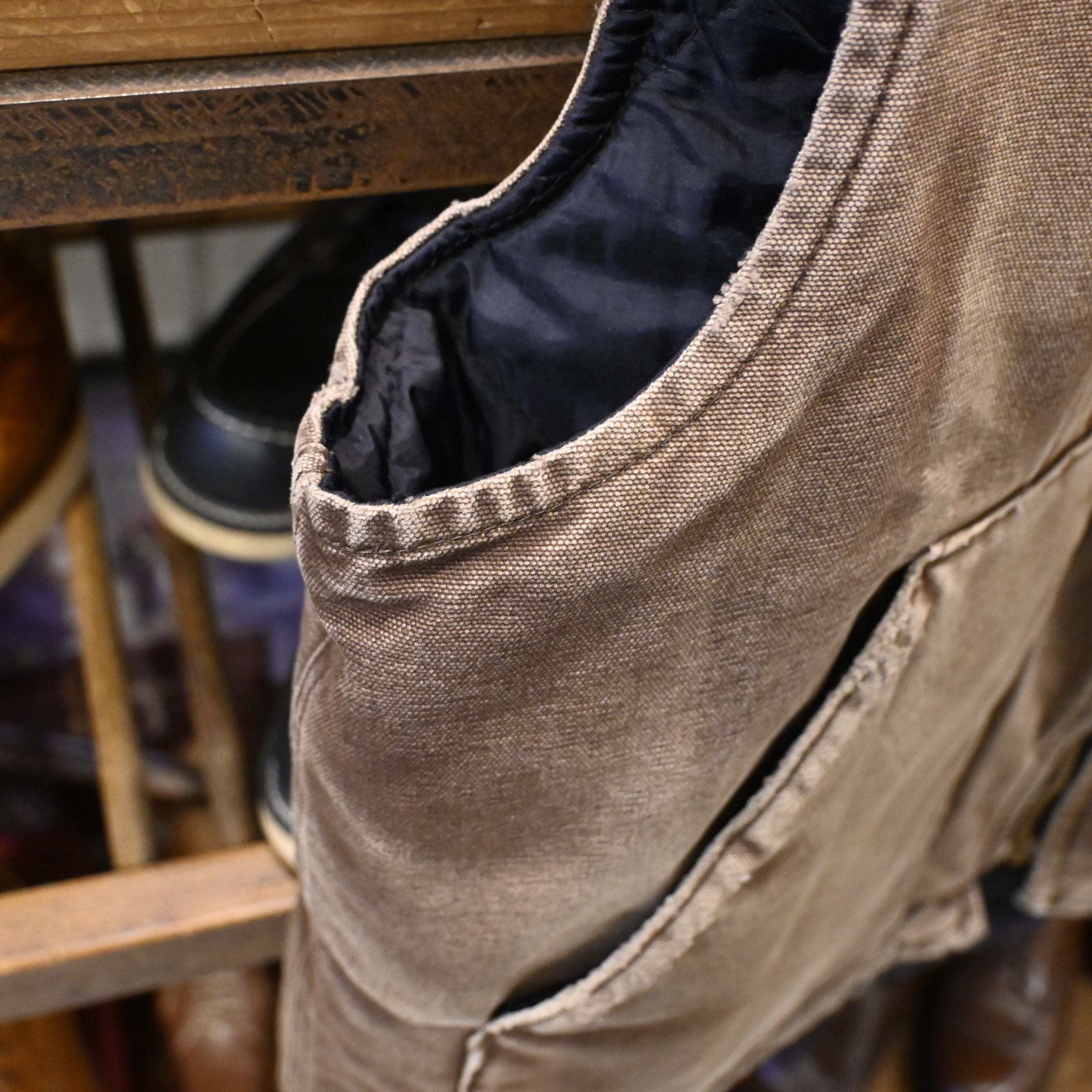 程よい色落ちやアタリが出ており、ヴィンテージならではの風合いを楽しめます。シンプルなデザインでレイヤードスタイルにも取り入れやすく、季節を問わず活躍できる万能な一着。