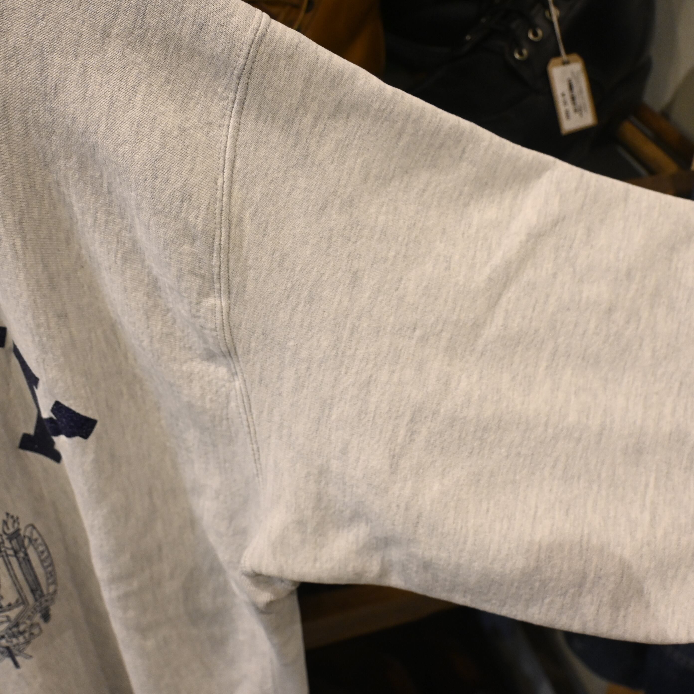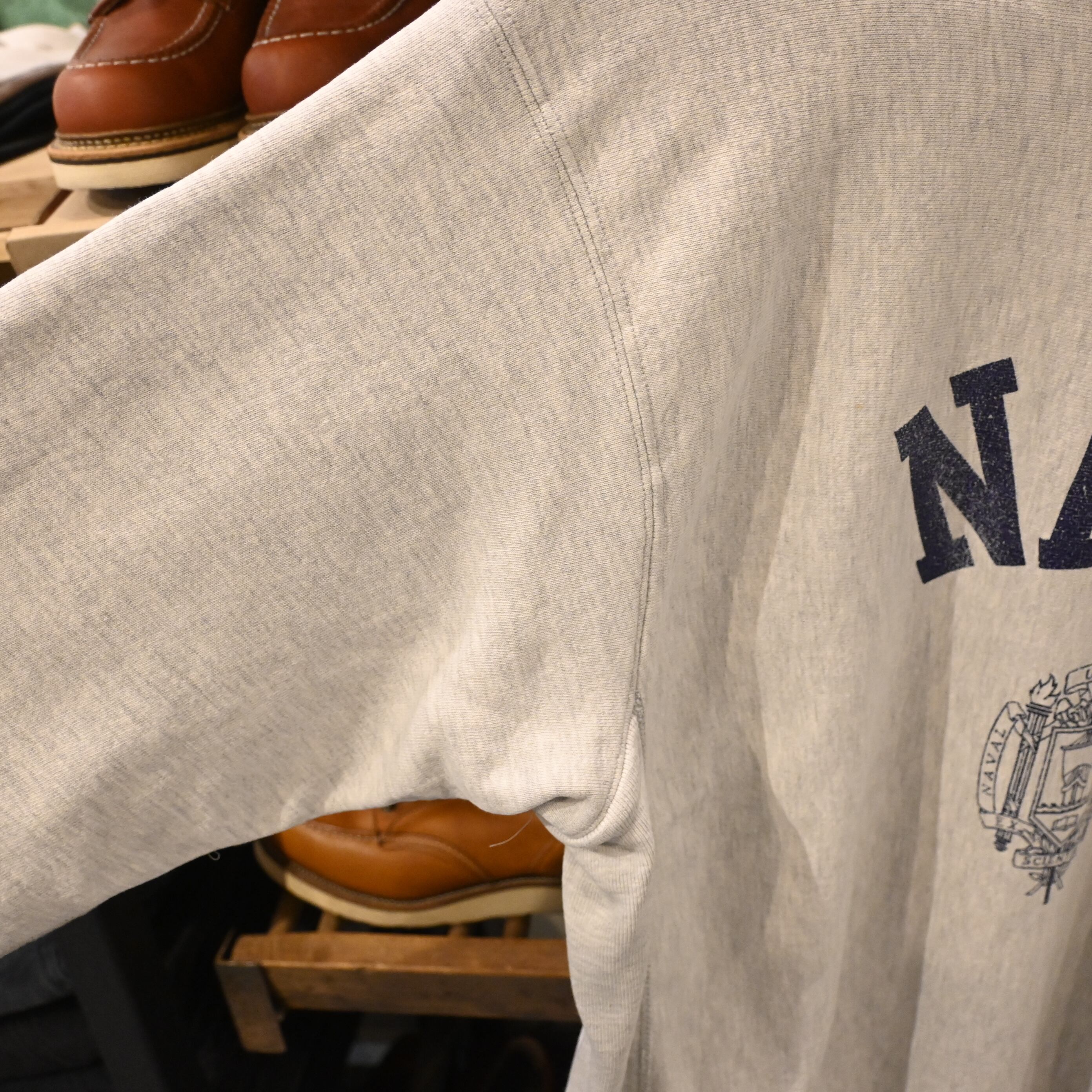 リバースウィーブタイプのサイドリブ仕様に、NAVYプリントとU.S. NAVYのエンブレムが施された存在感のある一枚です。