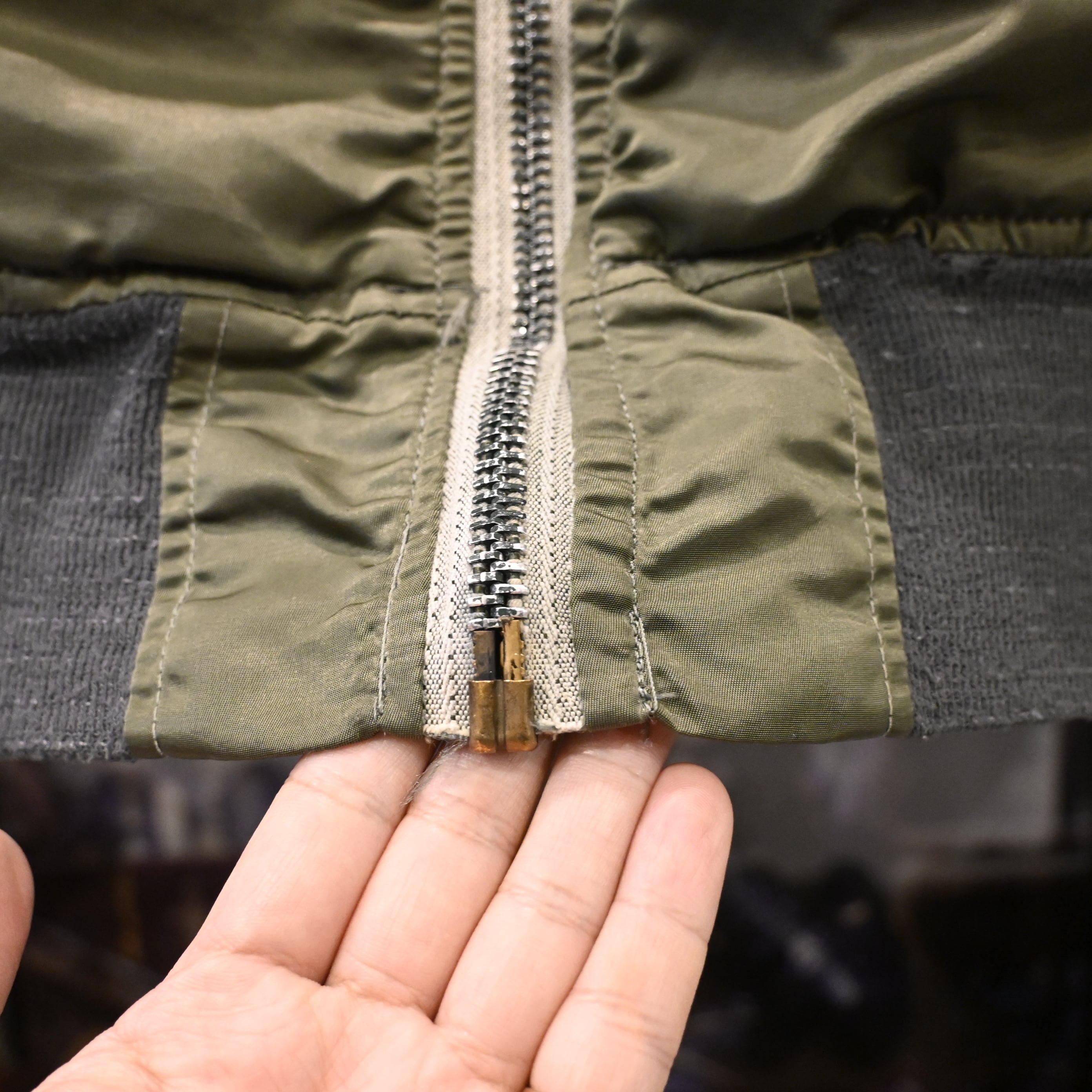 【コンディション】使用感あり。リブにダメージ、ジッパータブの塗装剥がれ、スナップに緩み等が見られますが、年代を考慮すると良好。ヴィンテージらしい経年の風合いを存分に楽しんでいただけます。