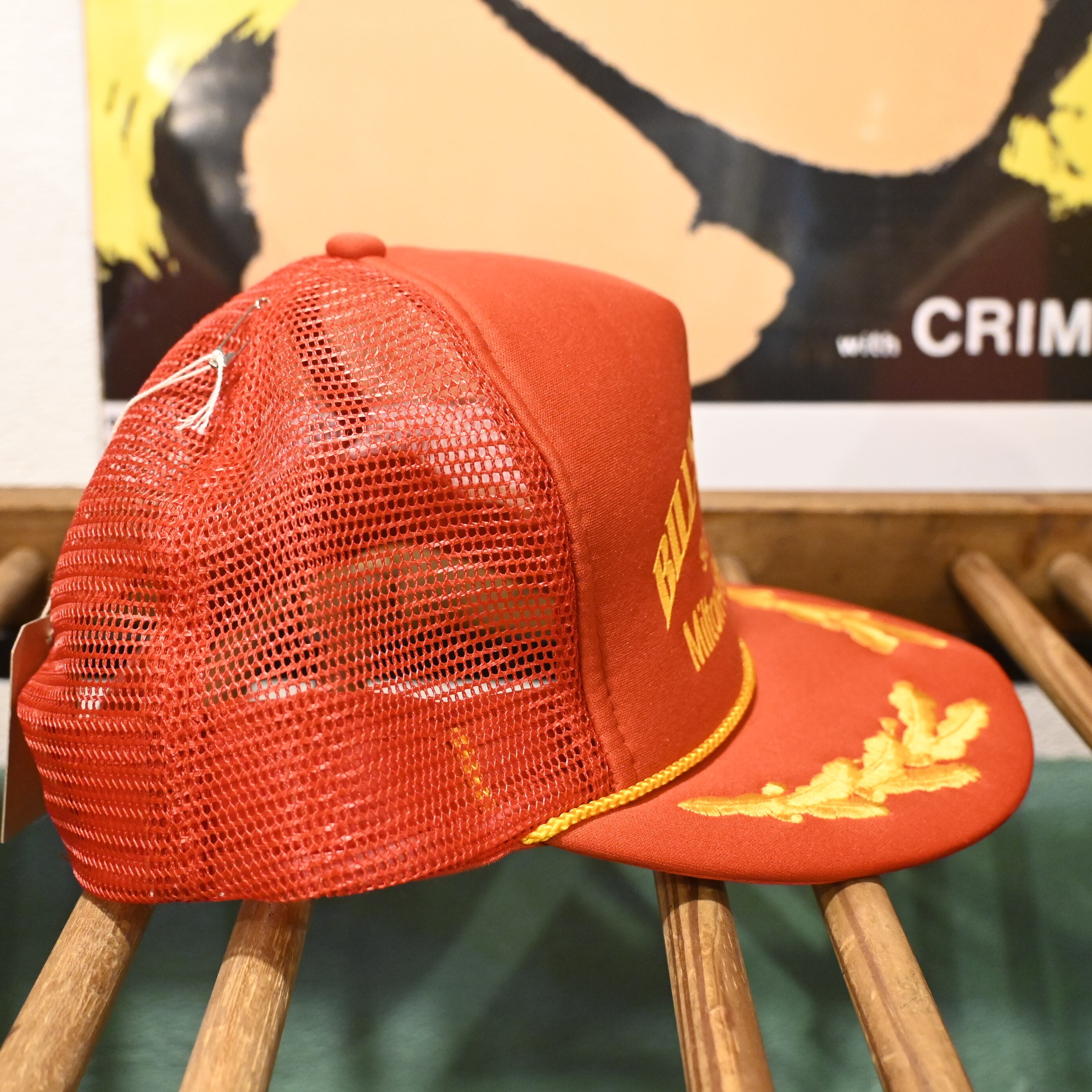 フロントにはオレゴン州・Milton-Freewaterの中古車販売店「BILL’S USED CARS」のプリント入り。ゴールドのリーフ刺繍と赤ボディのコントラストが際立つ存在感抜群の一点です。