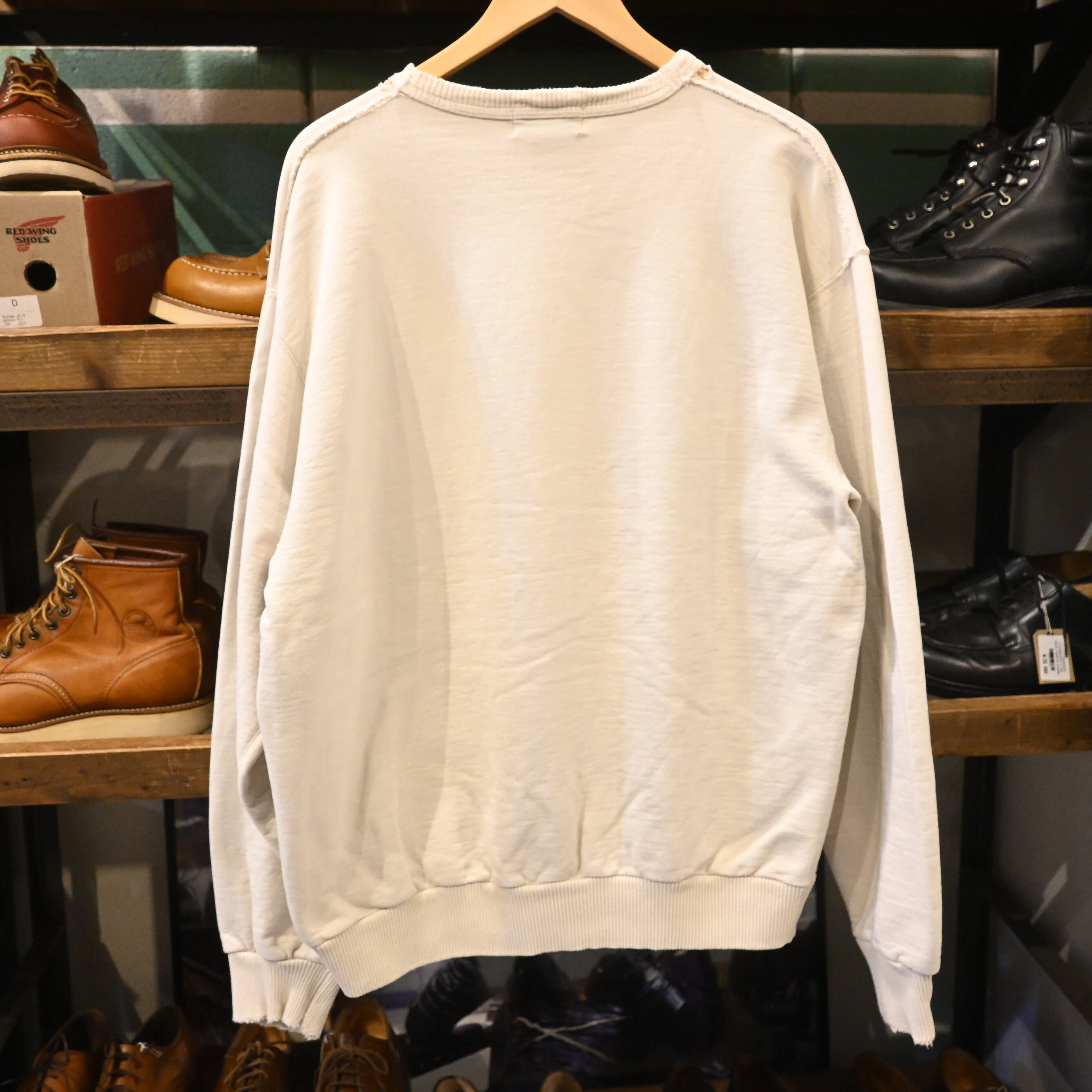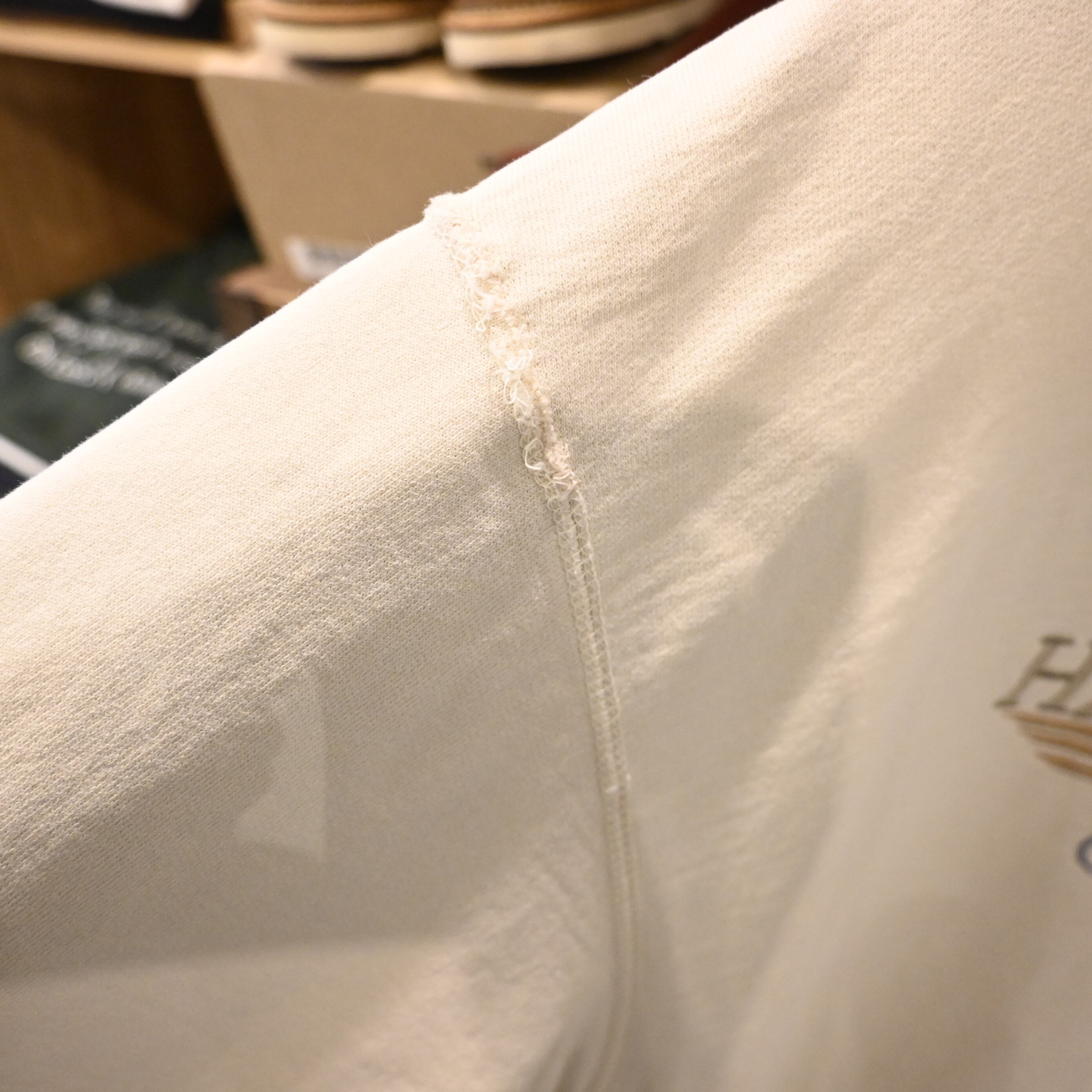 生成りカラーのボディに、ベージュとブルーのウィングロゴ刺繍が施された一枚。程よくゆとりのあるシルエットで、デニムやブーツと合わせやすいヴィンテージスウェットです。