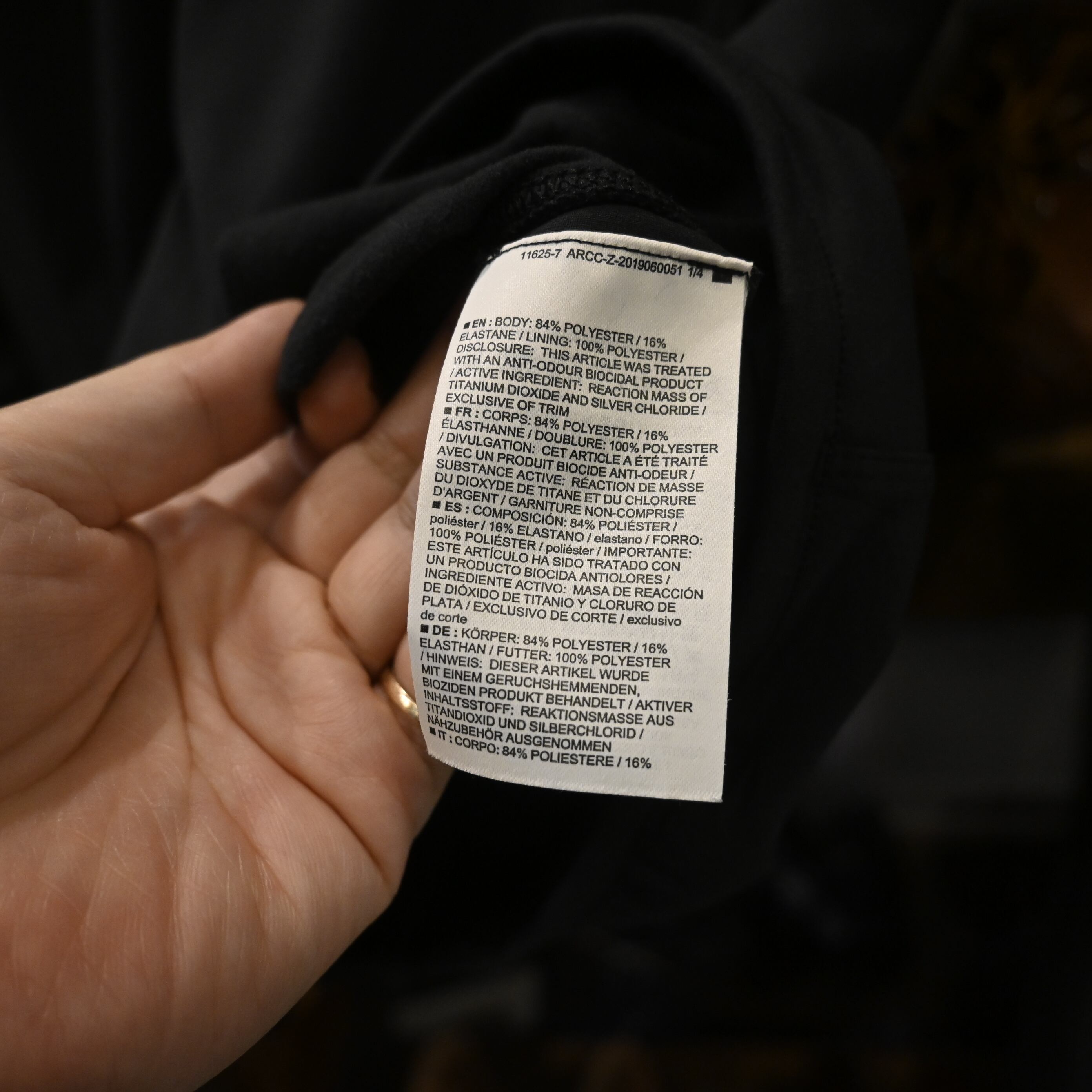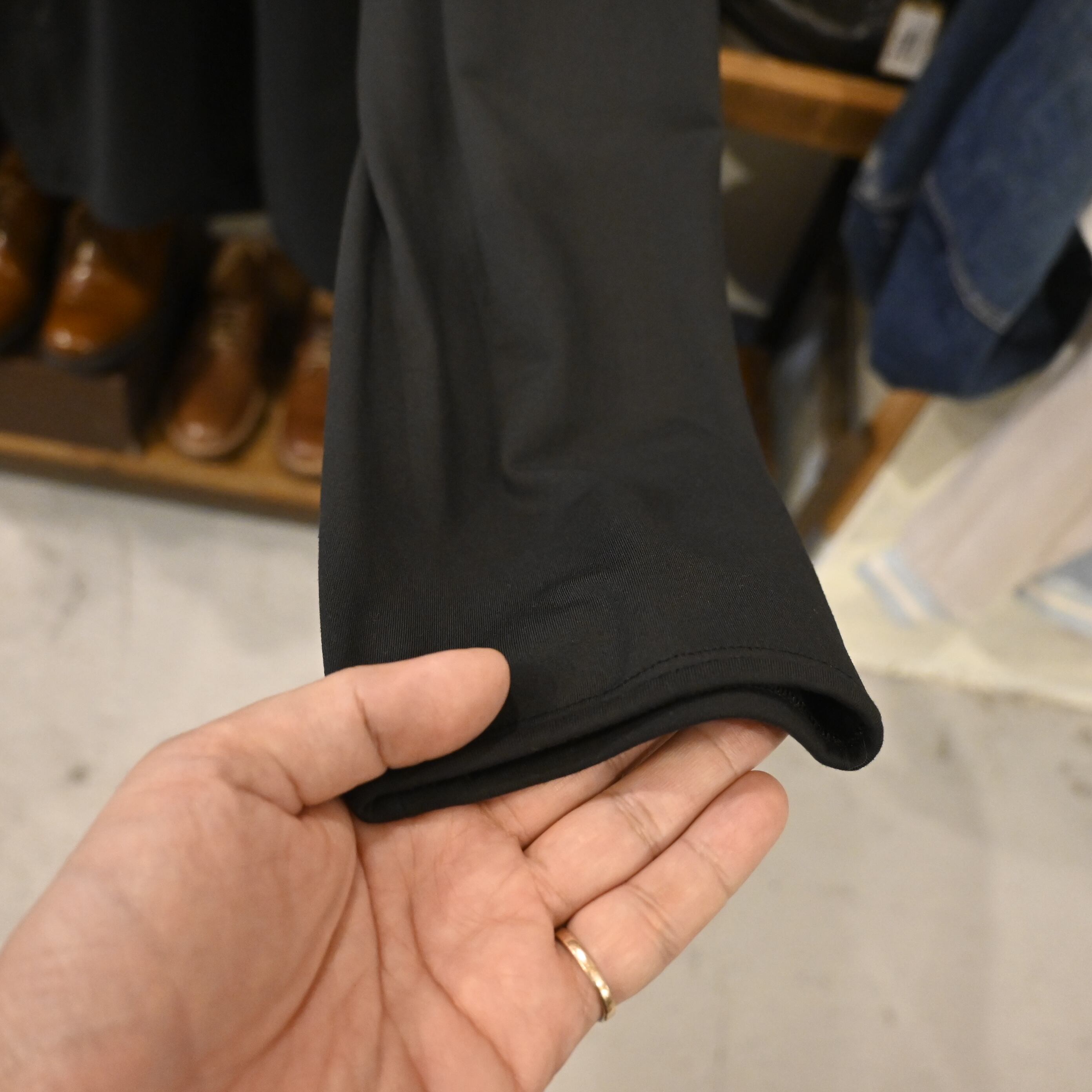 ブラックボディにシンプルなデザインで、タウンユースからアウトドア、ビジネスカジュアルまで幅広く活用可能。軽量でストレッチ性のあるポリエステル×エラスタン素材を使用し、快適な着心地を実現しています。現行モデルにはない企業別注デザインのため、希少性も高いアイテムです。