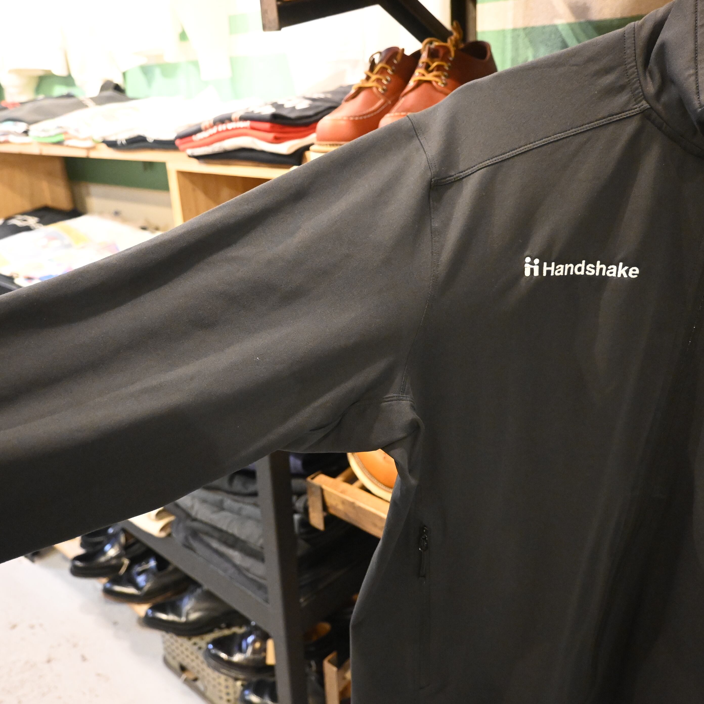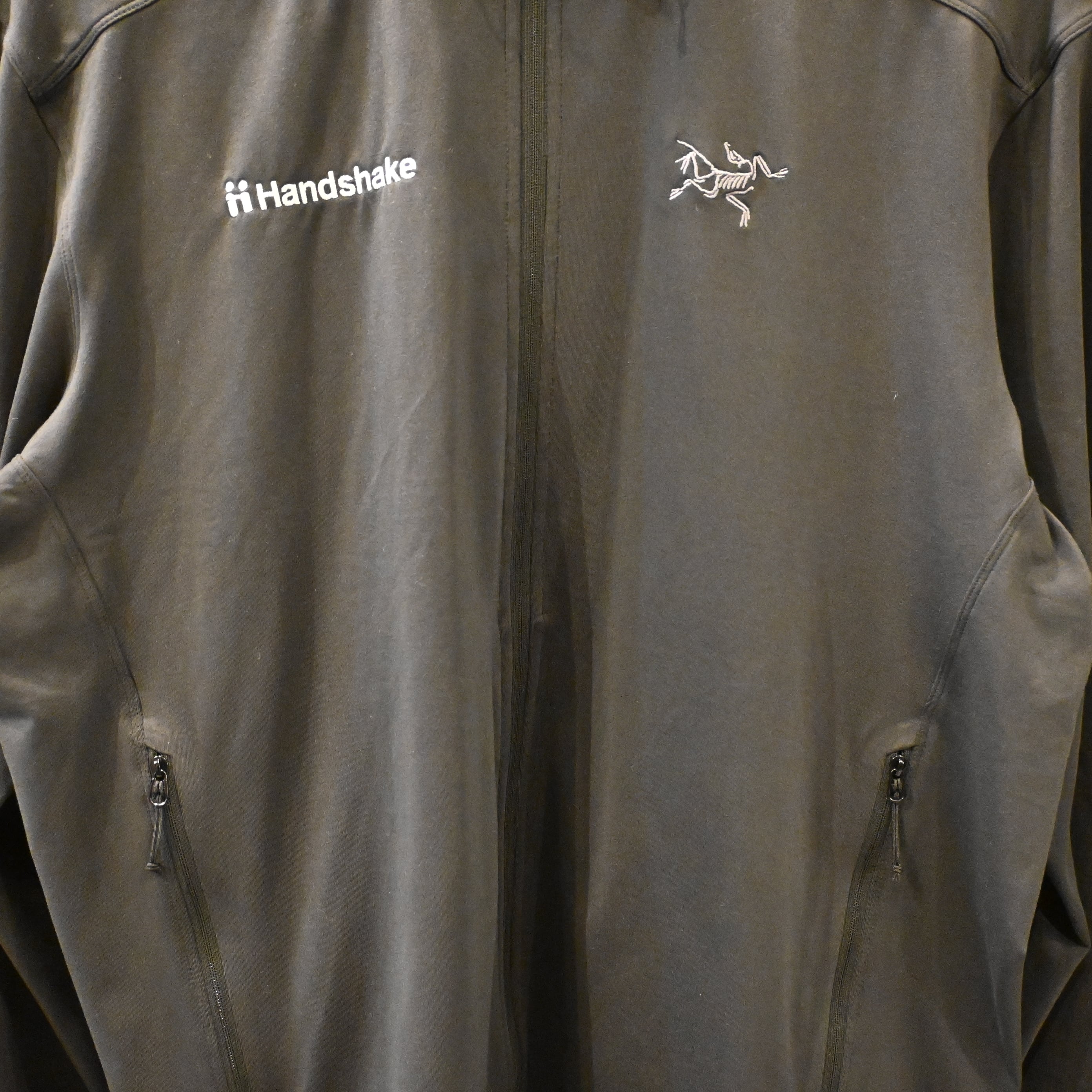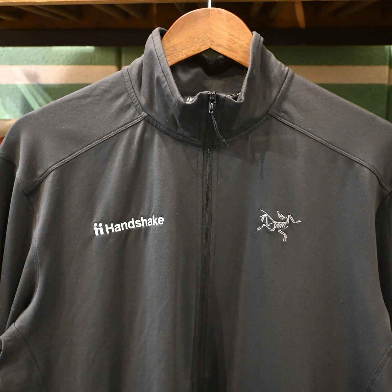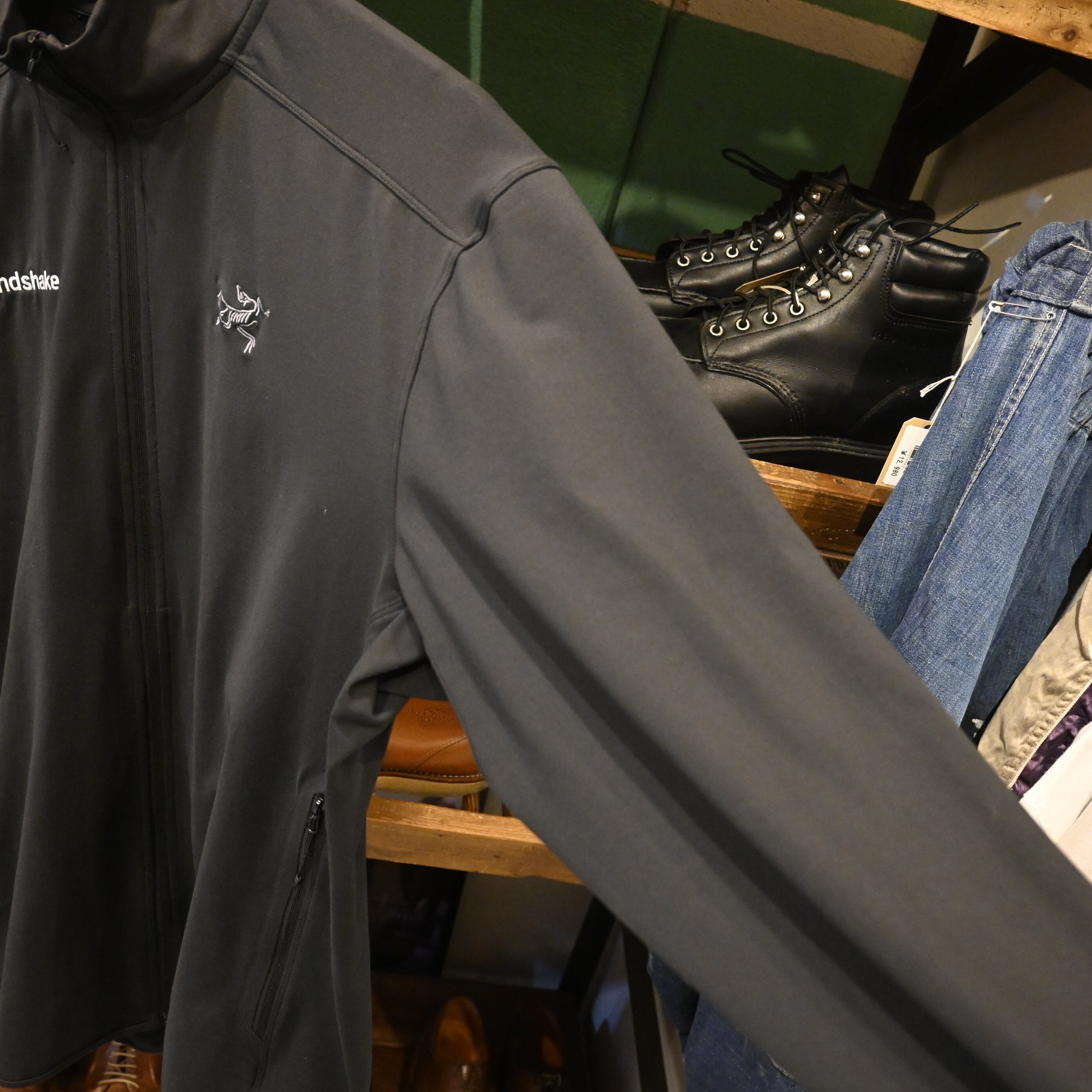 カナダ発の高機能アウトドアブランド「ARC’TERYX(アークテリクス)」のソフトシェルジャケット。フロントには始祖鳥ロゴに加え、企業ロゴ「Handshake」が刺繍された特別仕様の一着です。