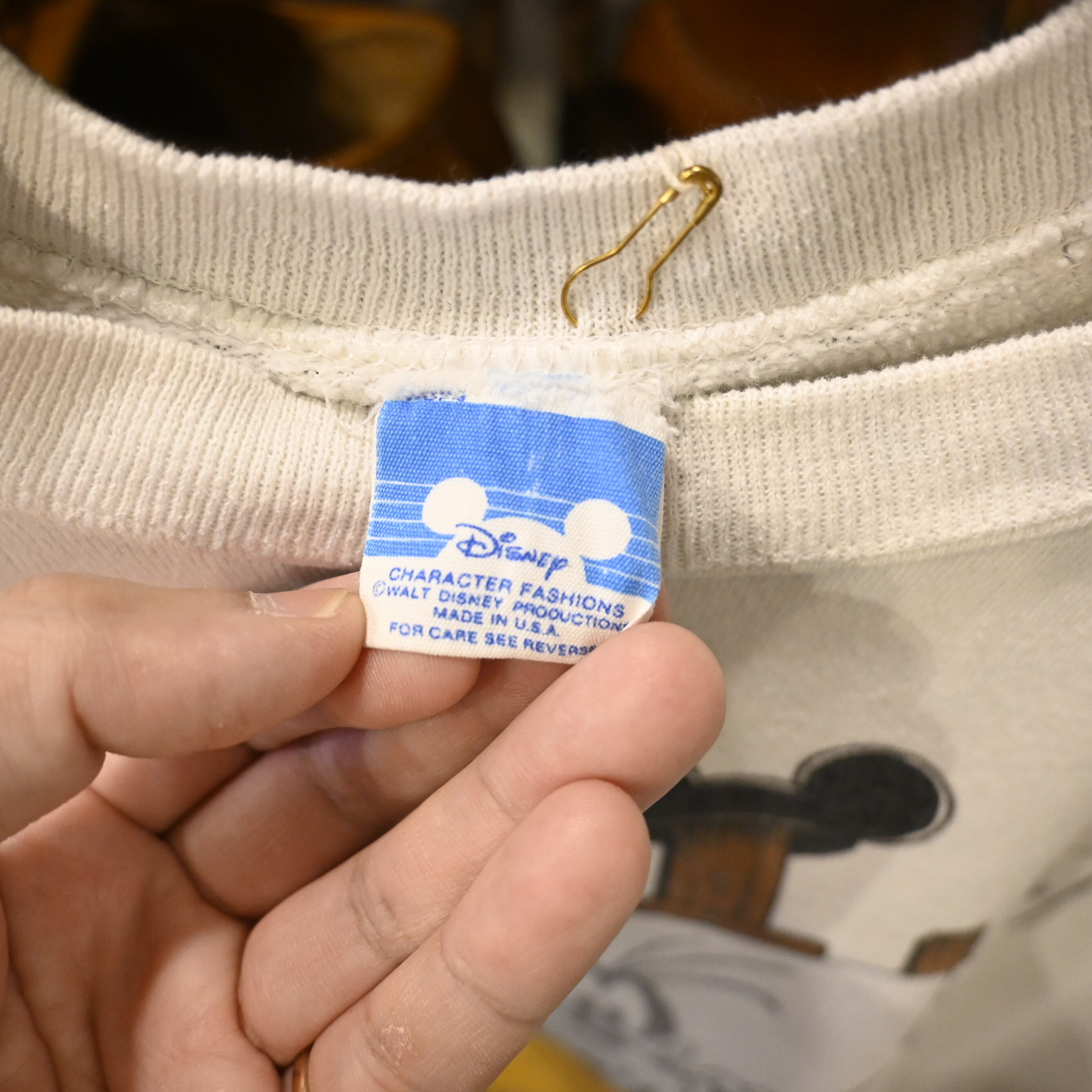 タグは「Disney CHARACTER FASHIONS / Walt Disney Productions」表記。ラグランスリーブ仕様で、ゆったりとした着用感も魅力。ヴィンテージの中でも状態は比較的良好で、希少性の高いディズニーオフィシャルアイテムです。