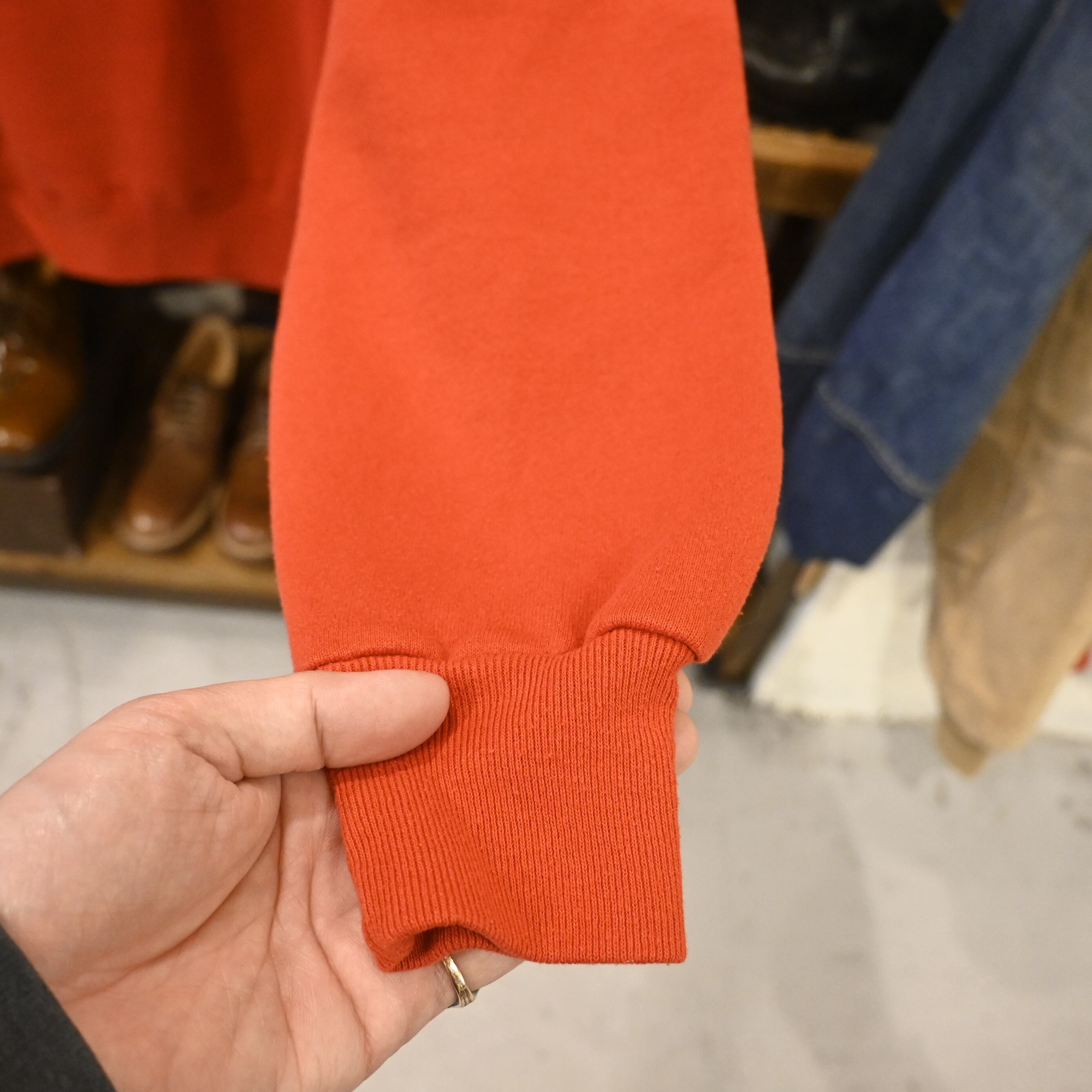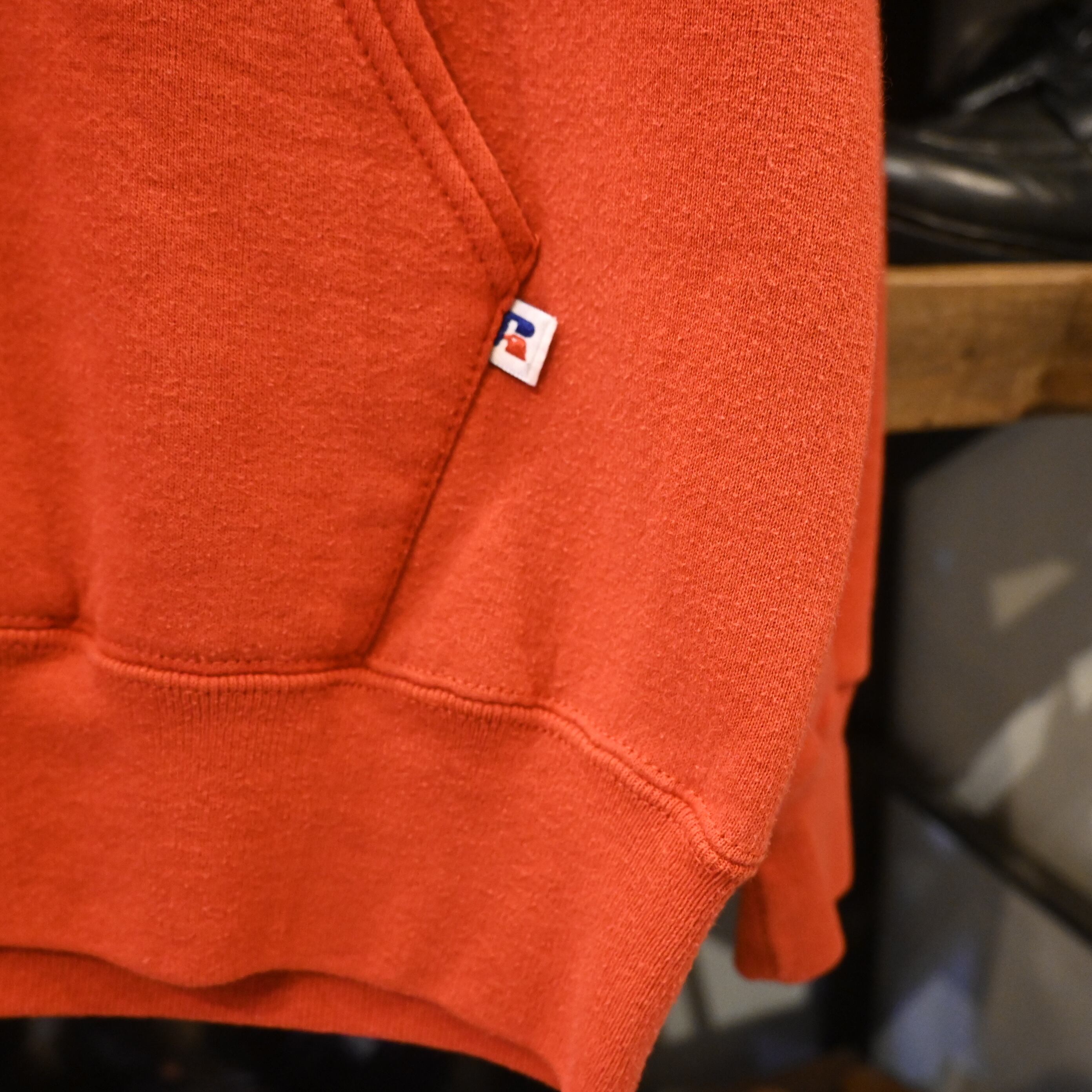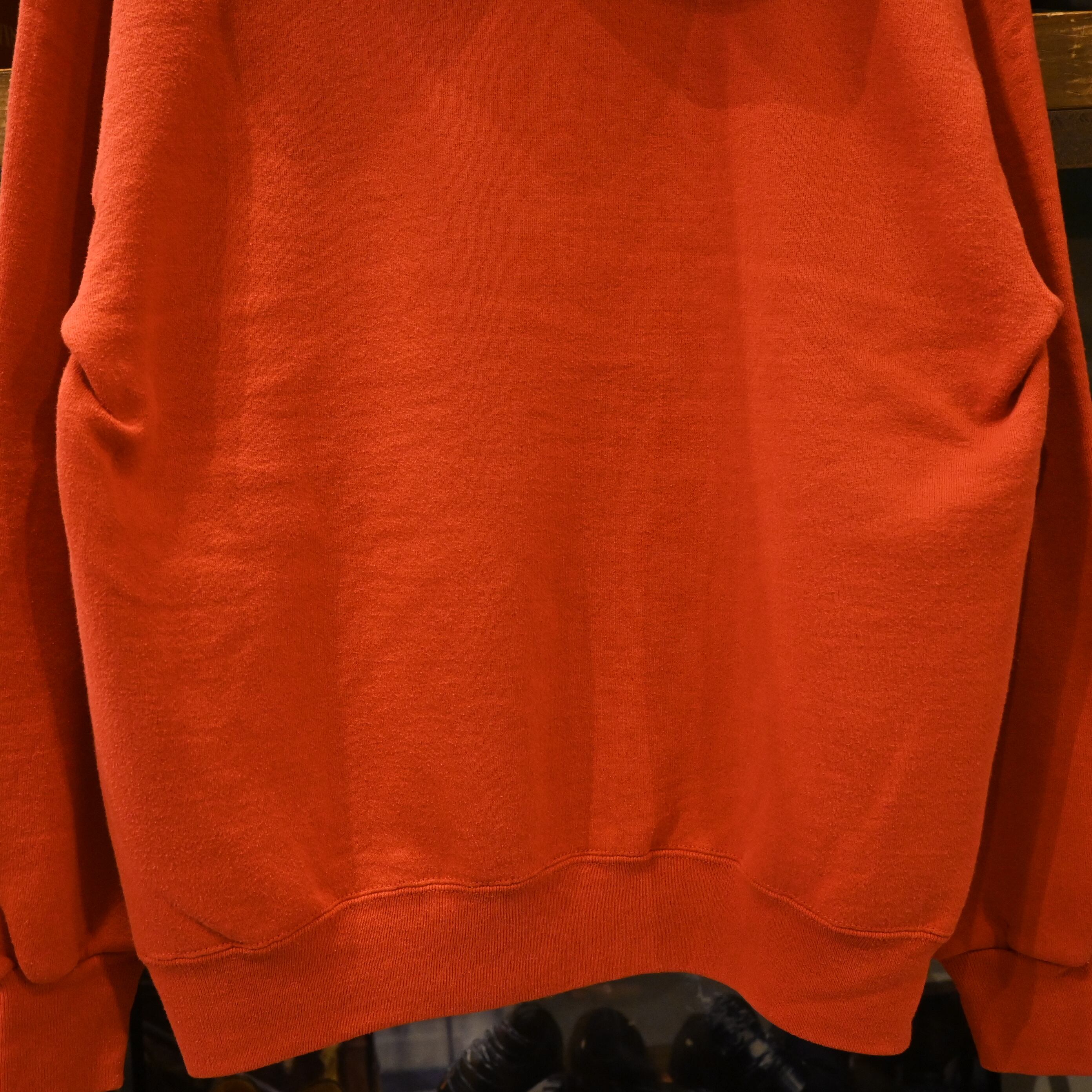 鮮やかなレッドボディに、肉厚なコットン×裏起毛の質感は、当時のRUSSELLならでは。シンプルながら存在感があり、デニムや軍パンとの相性も抜群です。