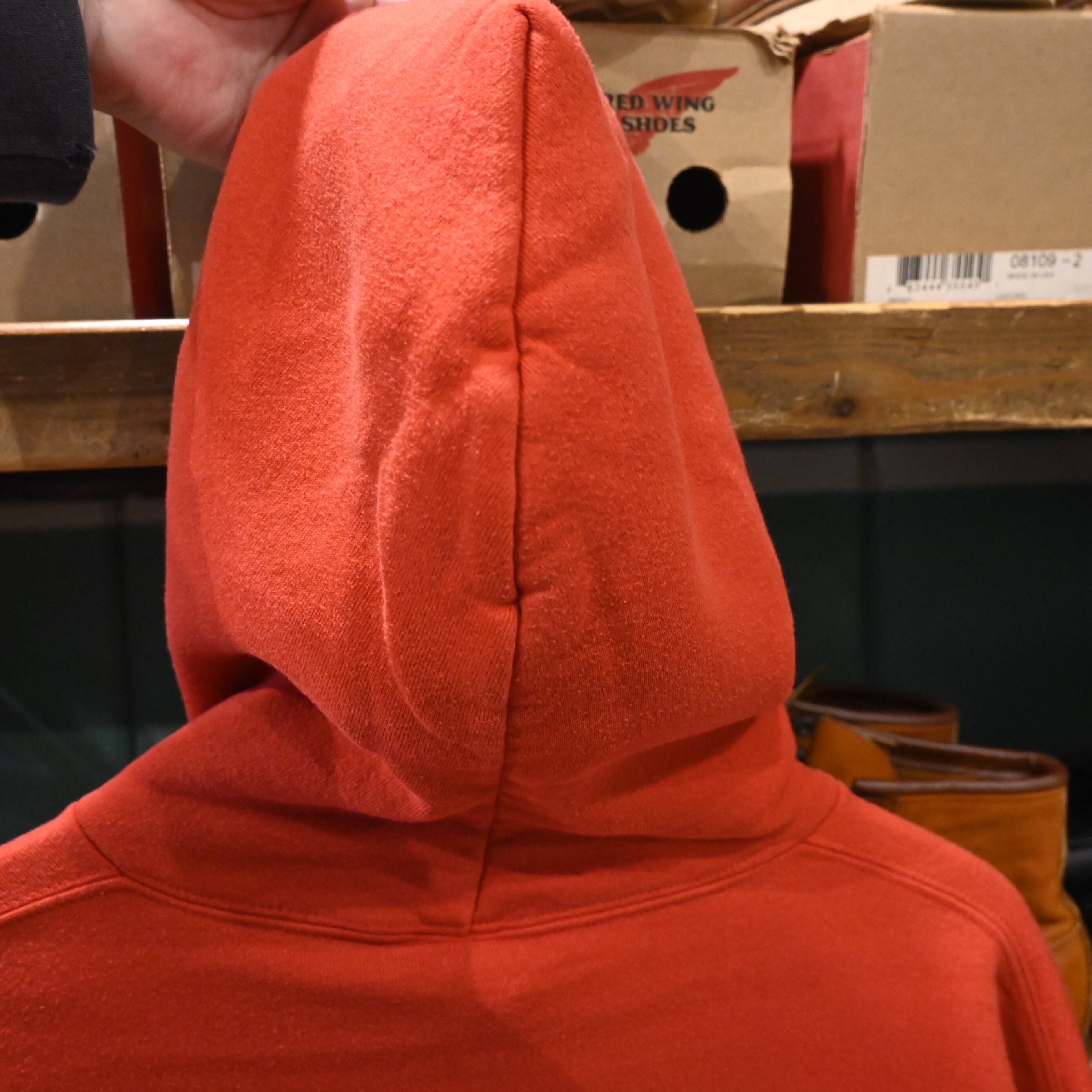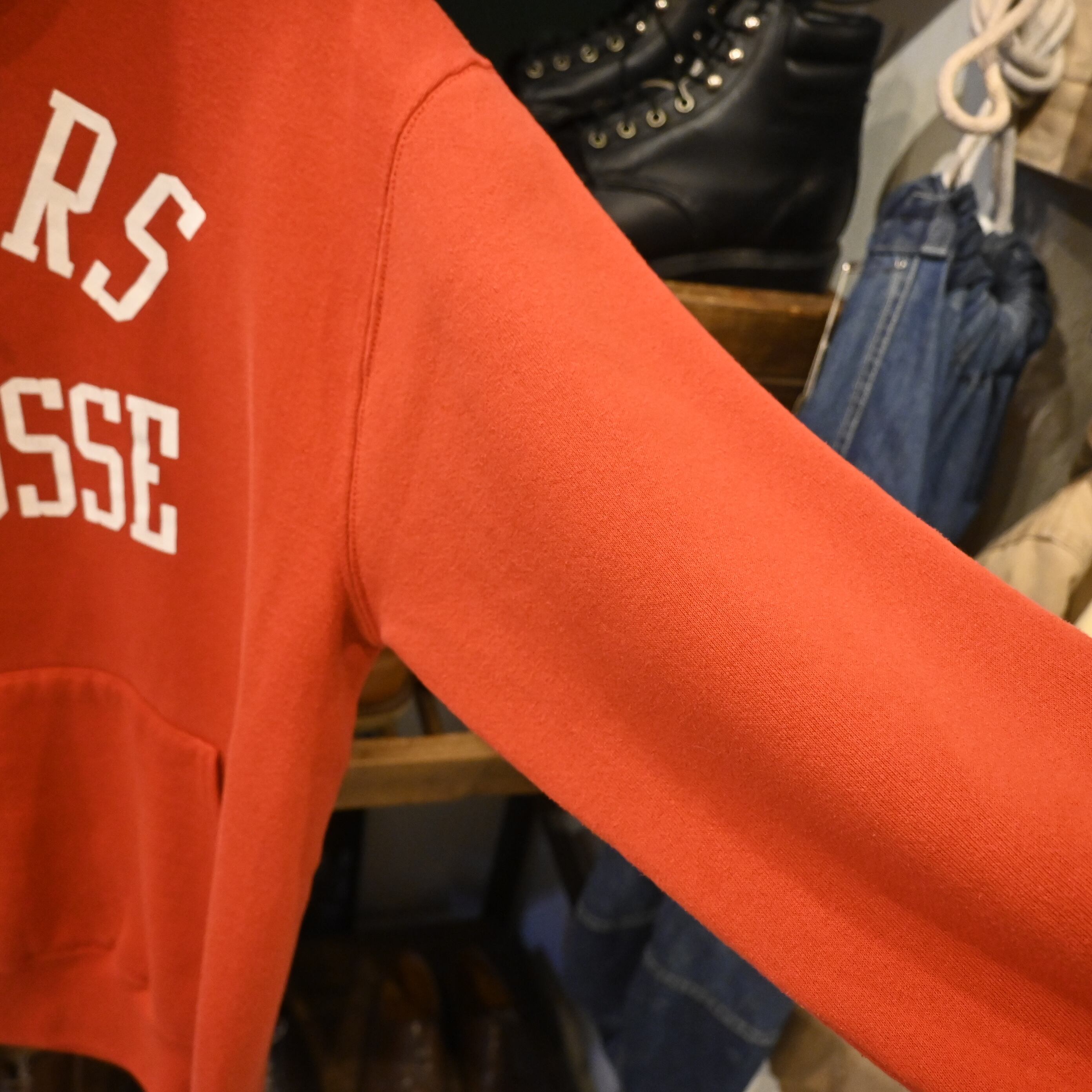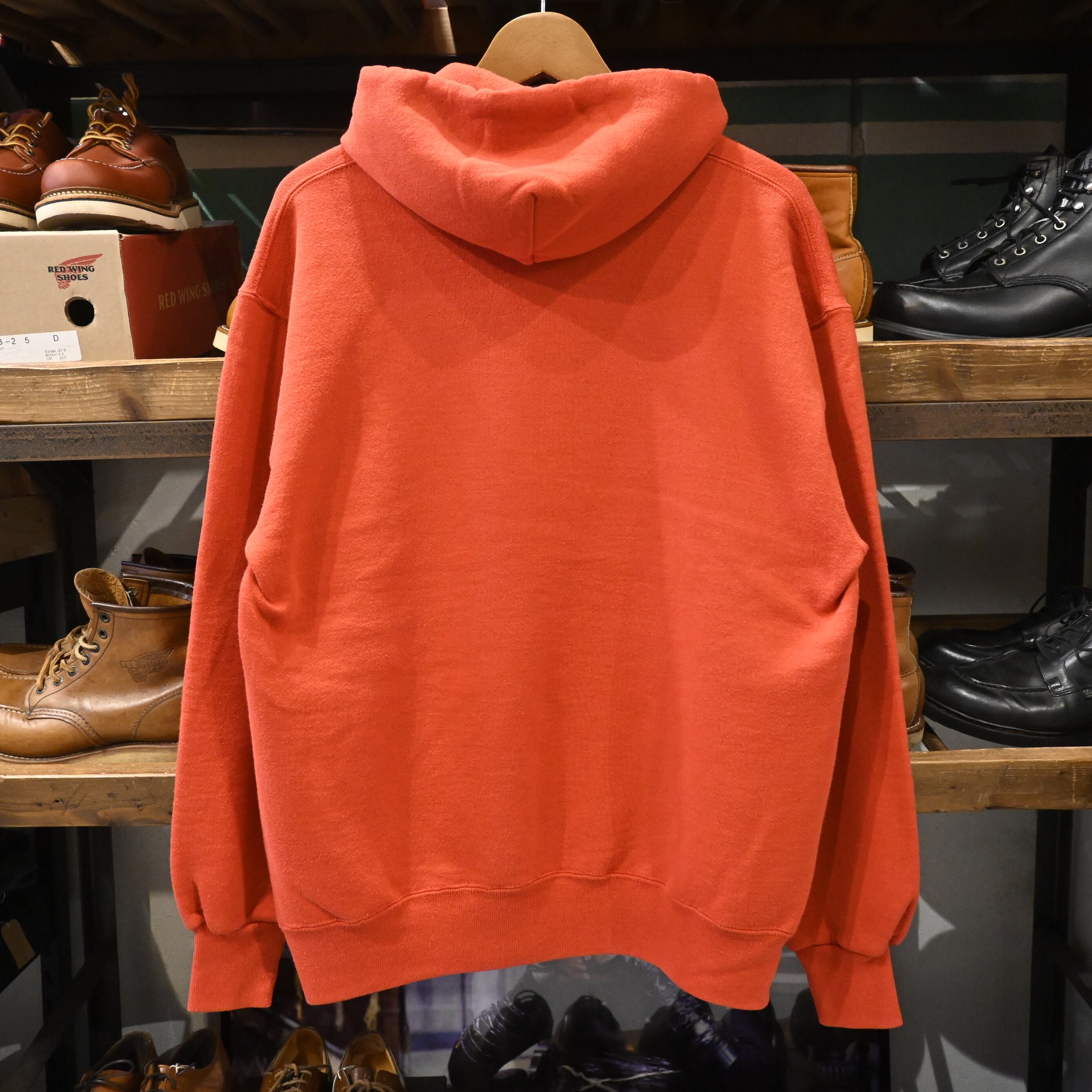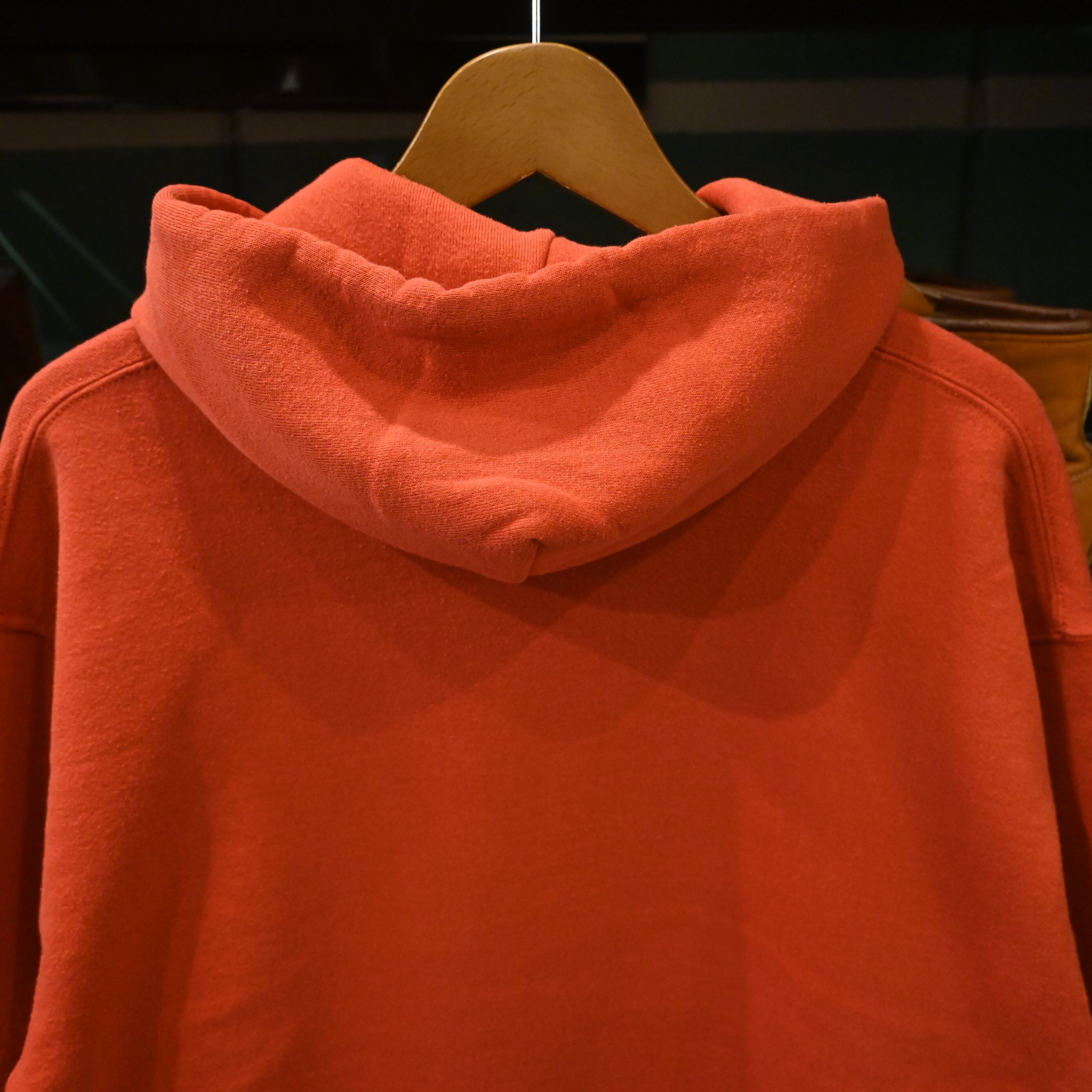 鮮やかなレッドボディに、肉厚なコットン×裏起毛の質感は、当時のRUSSELLならでは。シンプルながら存在感があり、デニムや軍パンとの相性も抜群です。
