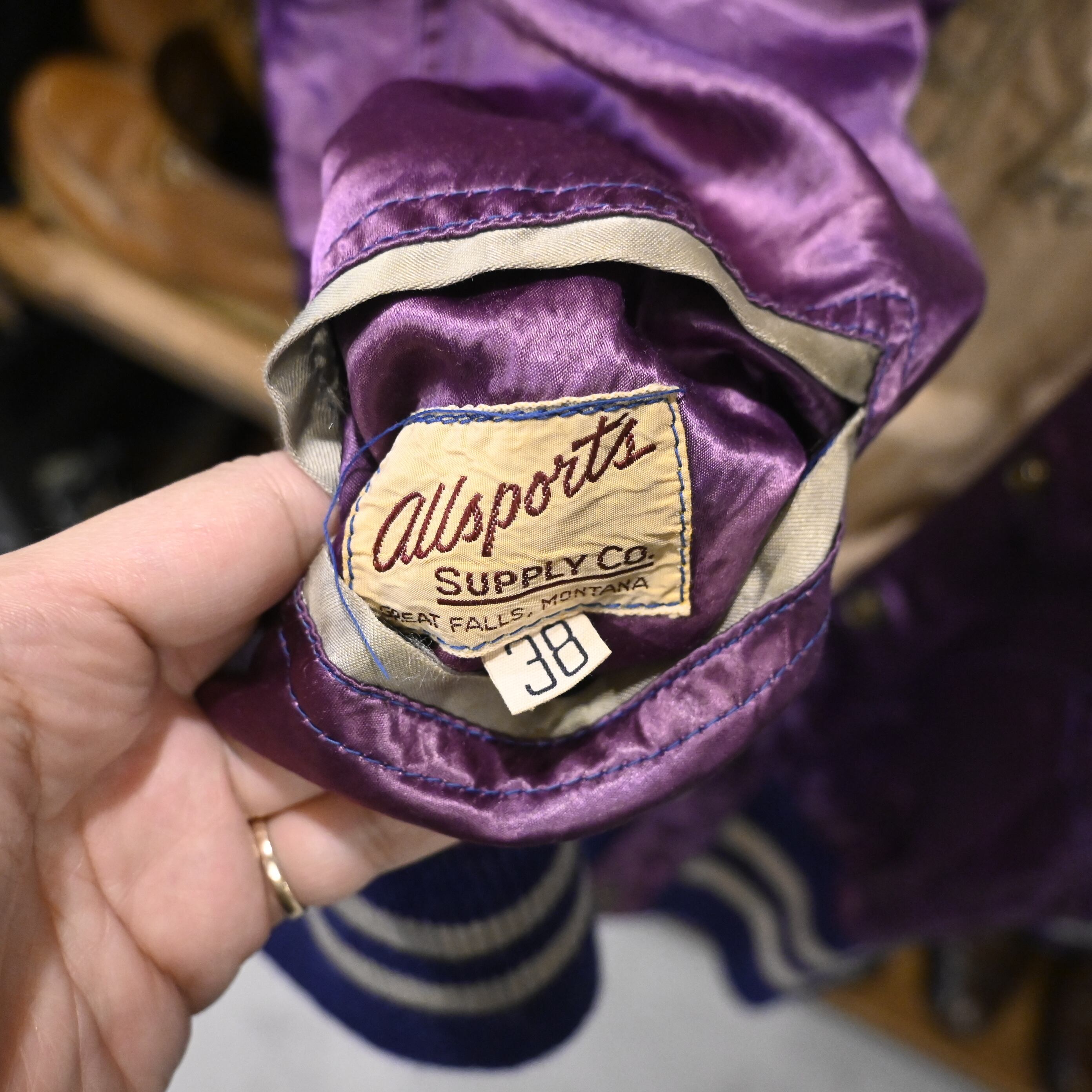 60〜70's "GFAFB" サテン切替 スタジアムジャケット パープル × ホワイト