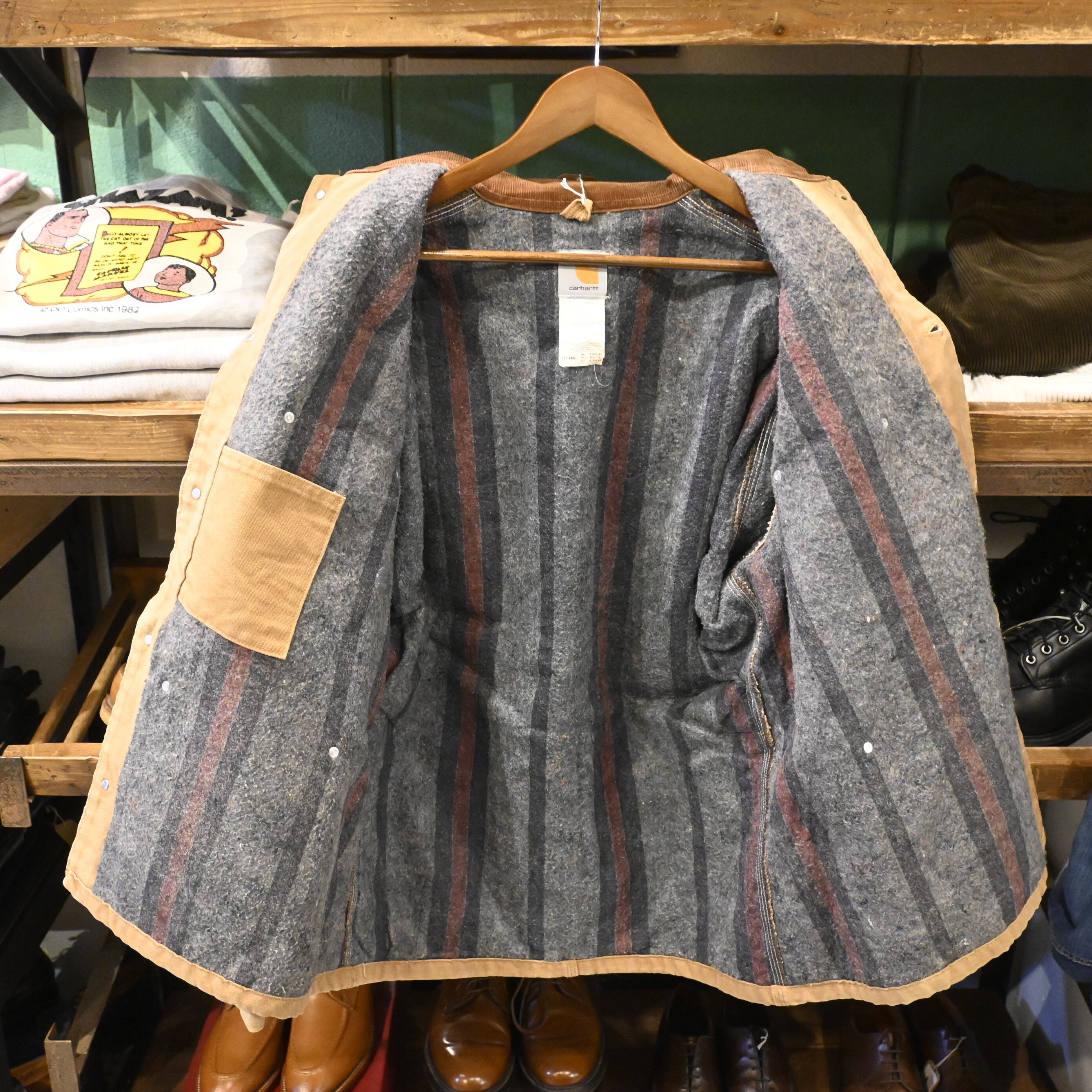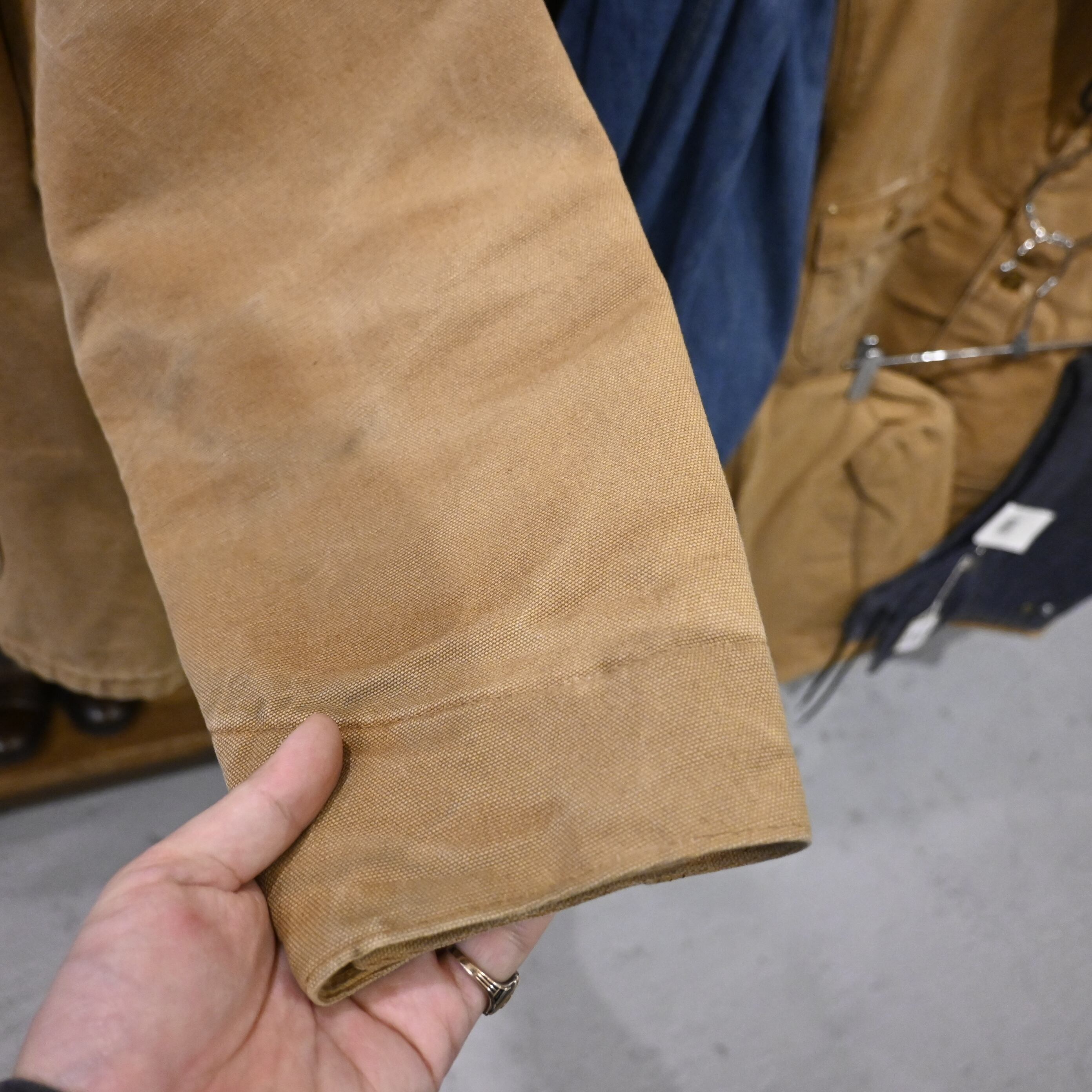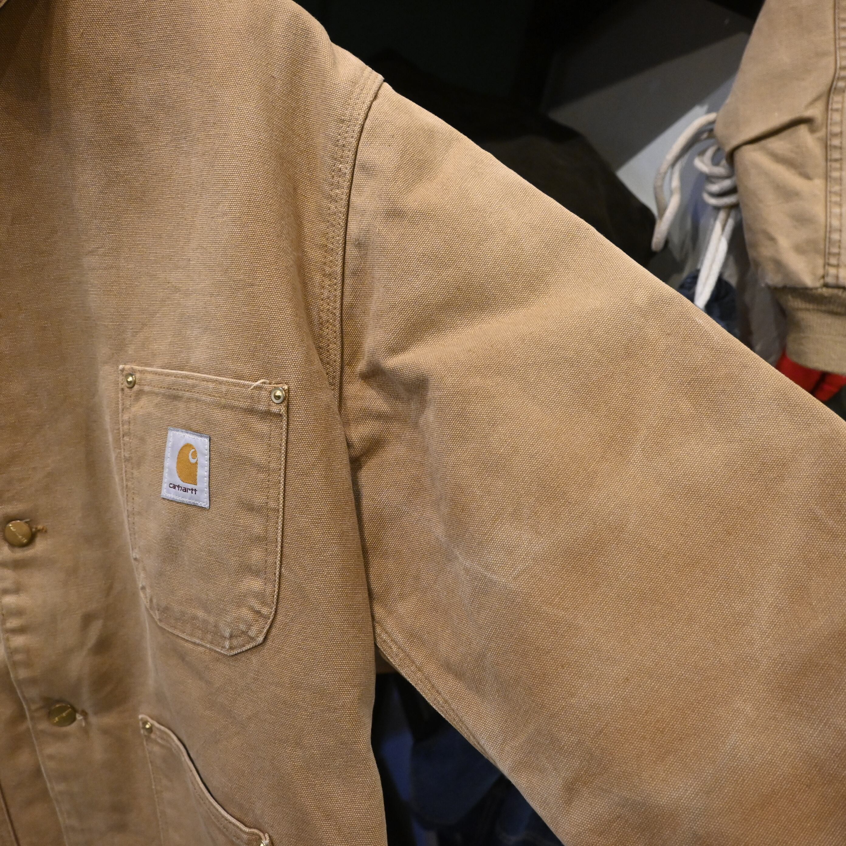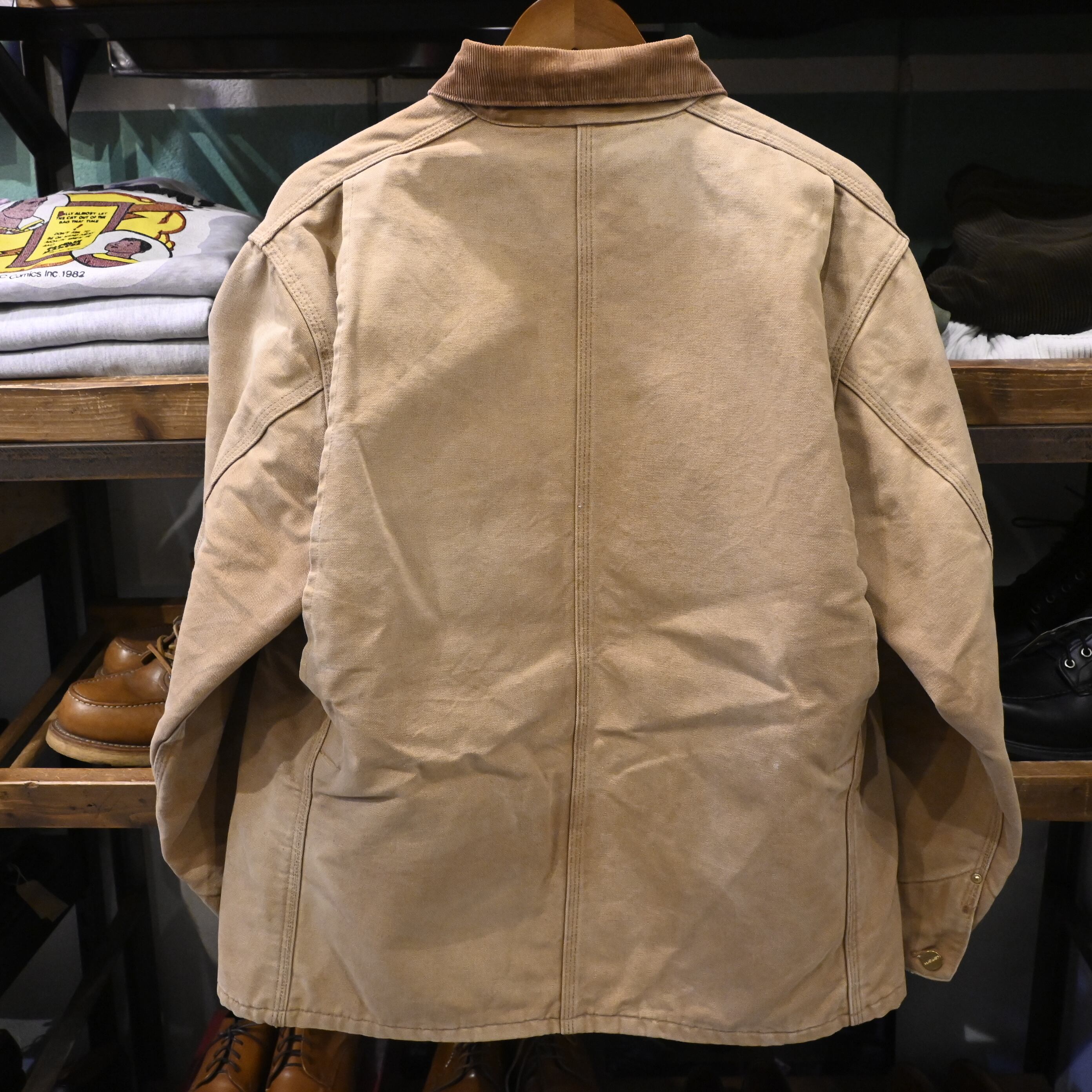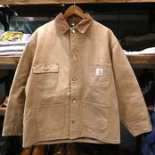 こちらは90年代USA製のオリジナルで、Carharttらしいタフなブラウンダック地にコーデュロイ襟を組み合わせた王道ディテールの一着です。