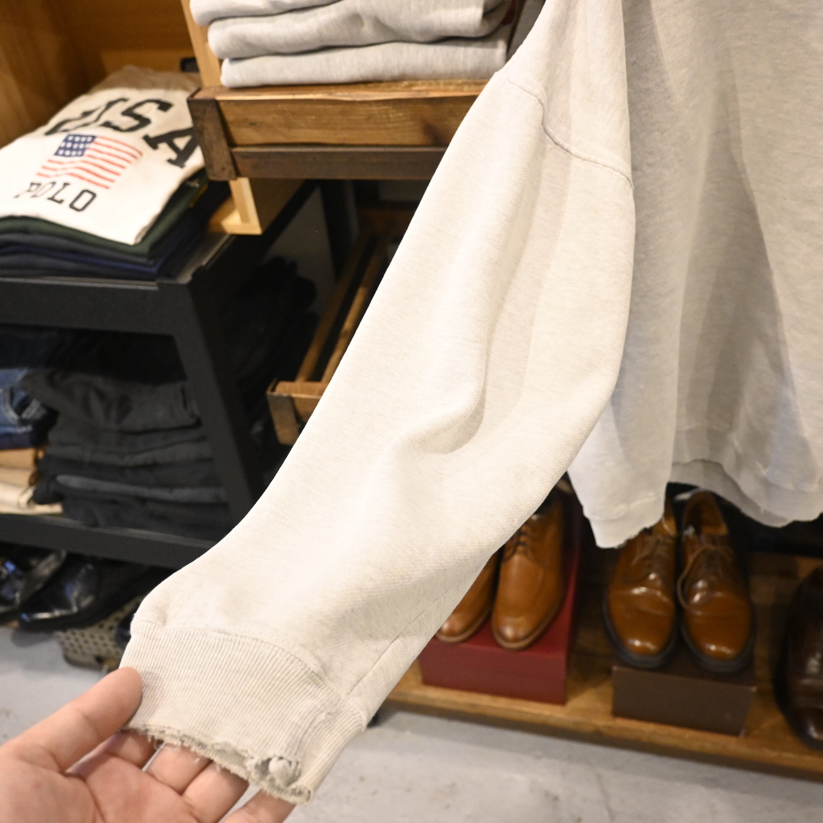 本アイテムはその中でも台湾製のスウェットで、袖の刺繍にリザードがデザインされた珍しい一枚。シンプルながら存在感があり、90sらしいゆったりとしたシルエットはデニムやカーゴパンツと相性抜群です。