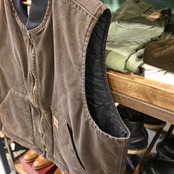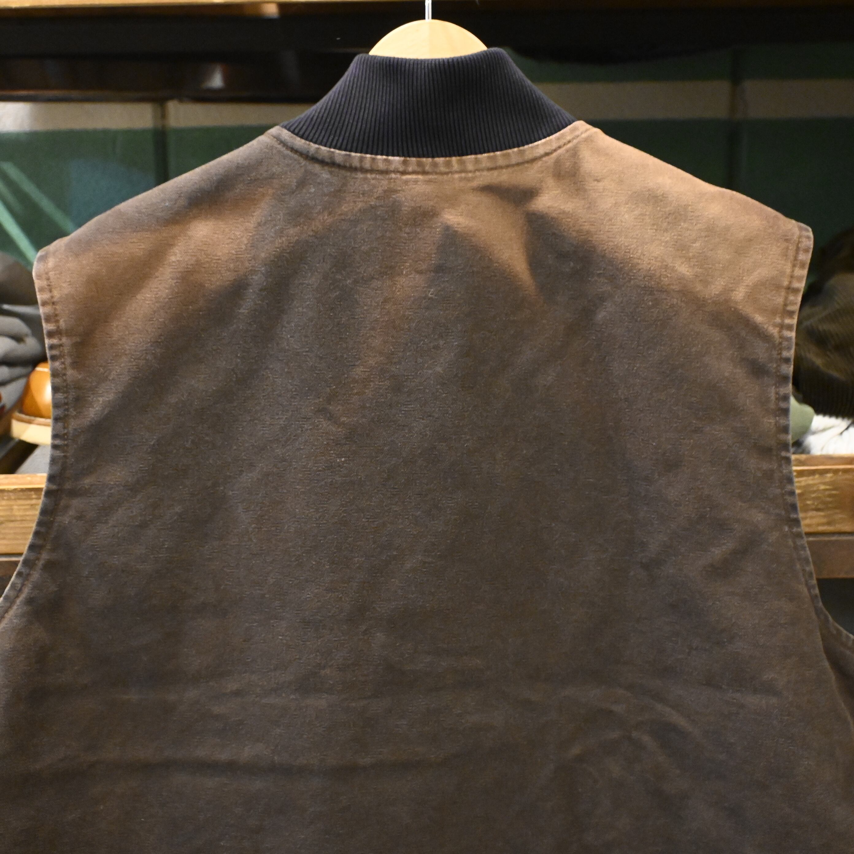 こちらは2000年代前半のメキシコ製で、ダークブラウン(DKB)カラー。タフなダック地のアウターシェルに、キルティングライナーを組み合わせた防寒性と耐久性を兼ね備えたベストです。