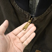 胸ポケットにはレザーパッチのCarharttロゴ、フロントは真鍮製ジッパー仕様。ワークウェアらしい無骨なデザインと、長年着込むことで生まれるフェード感が魅力です。シャツやスウェット、フーディとのレイヤードに最適なアイテム。