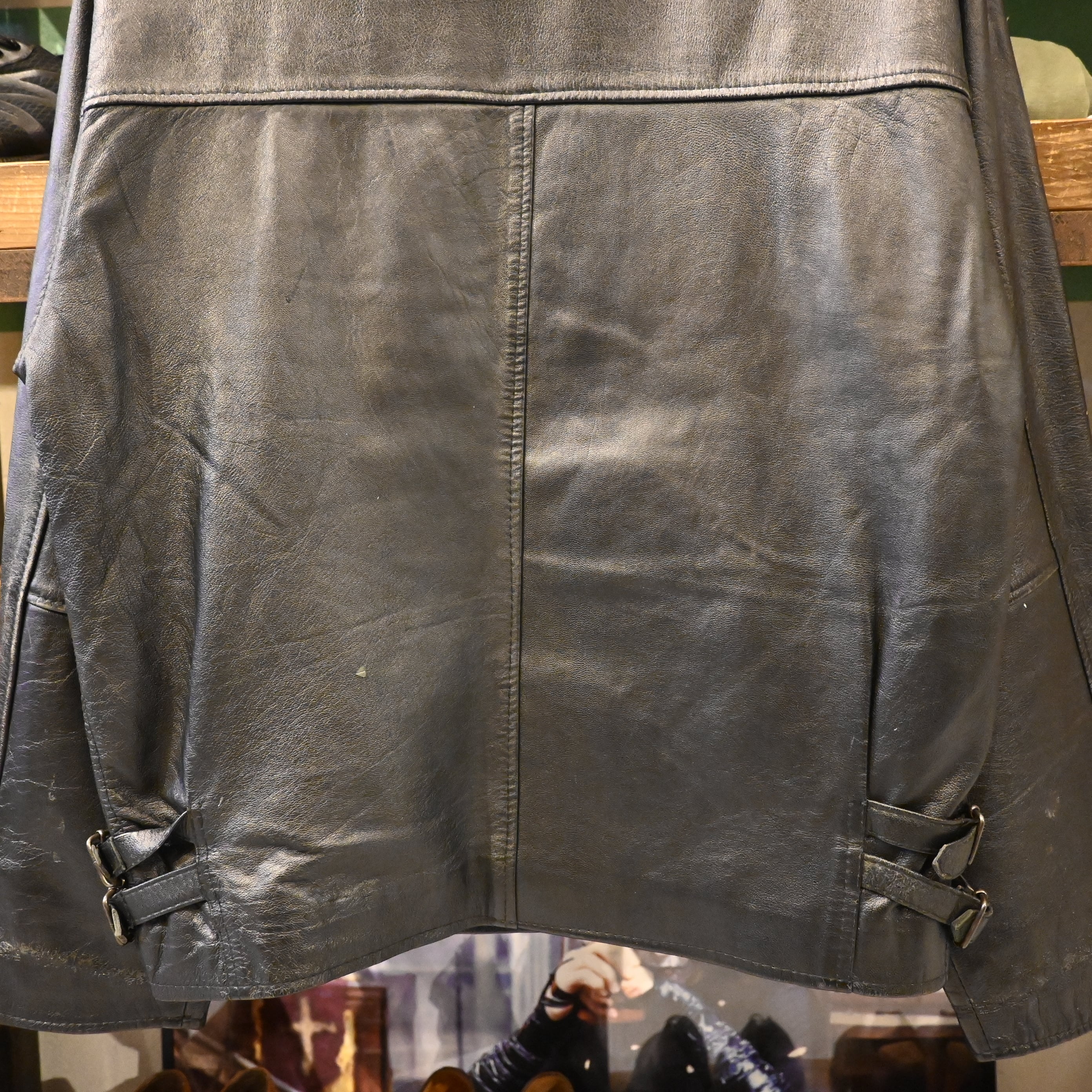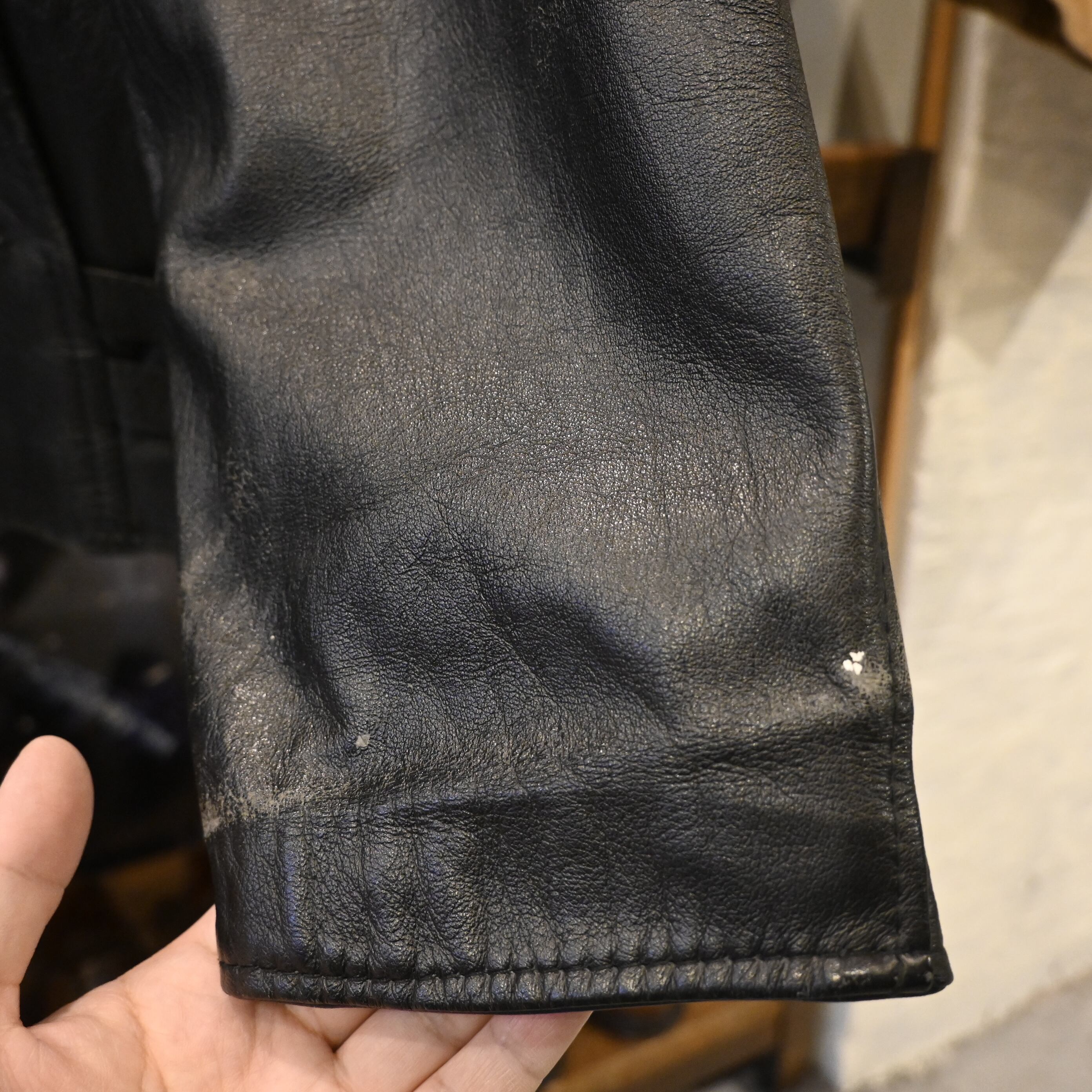 【コンディション】全体的にレザー特有のスレやシワあり。背面左腰付近にレザーの捲れあり。袖にペンキ汚れあり。着用に支障のあるダメージなし。