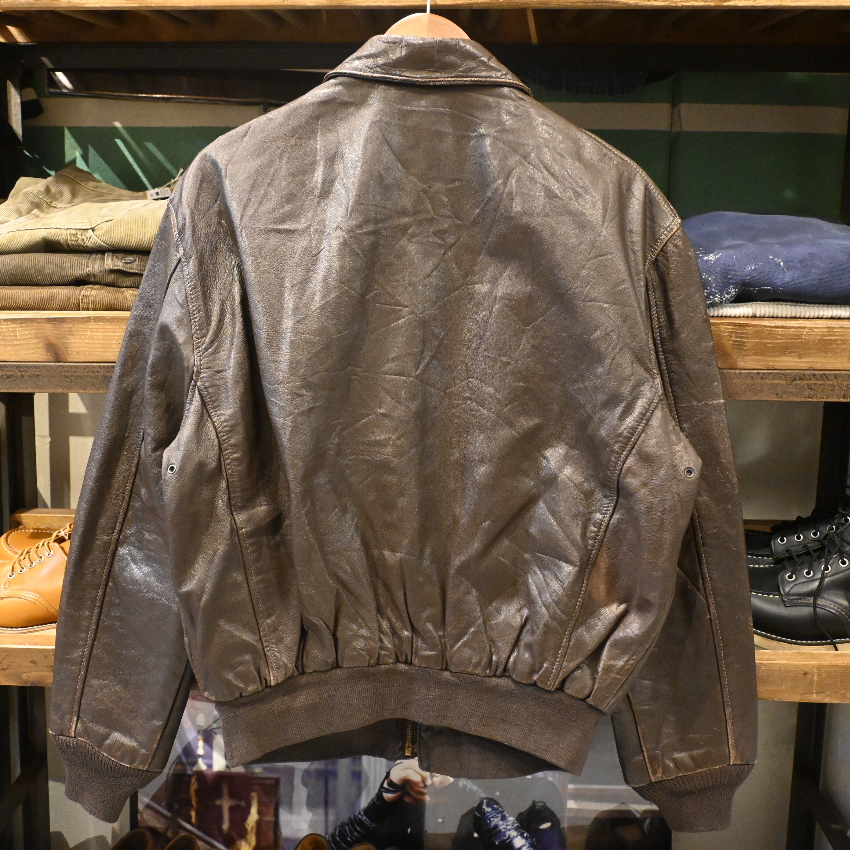 こちらは90年代の民間モデルで、当時のアメリカ製レザーアイテムらしいしなやかなホースハイド(馬革)を使用。程よいシボ感とヴィンテージ特有の艶があり、リアルな経年変化が楽しめる一着です。